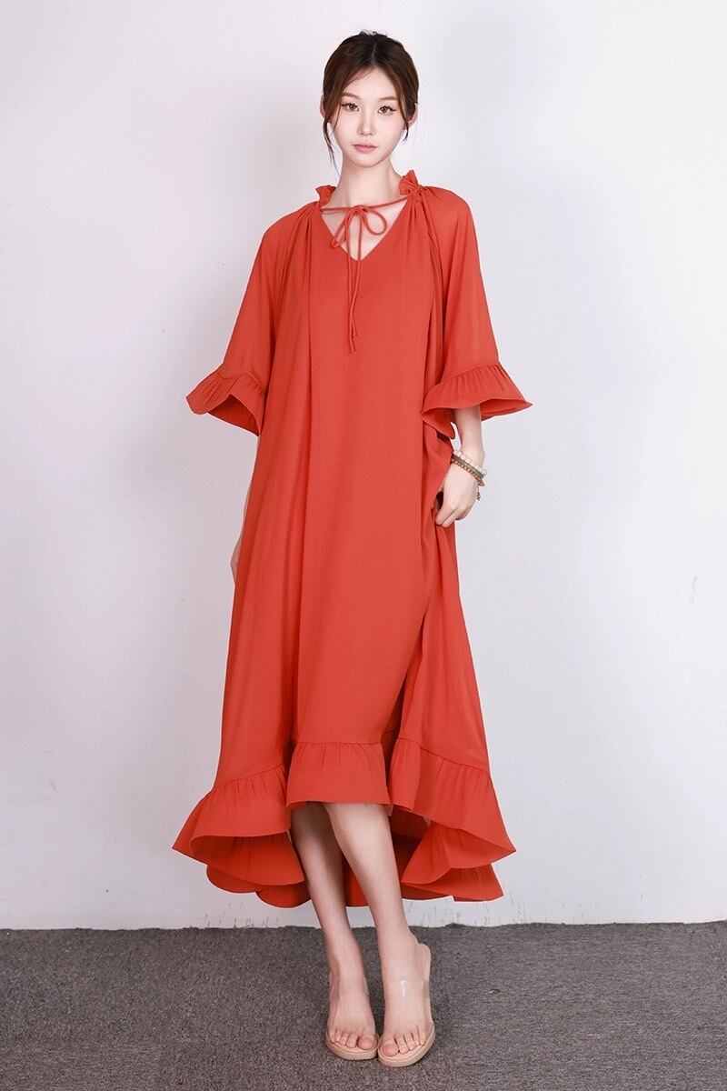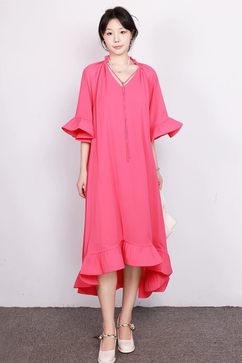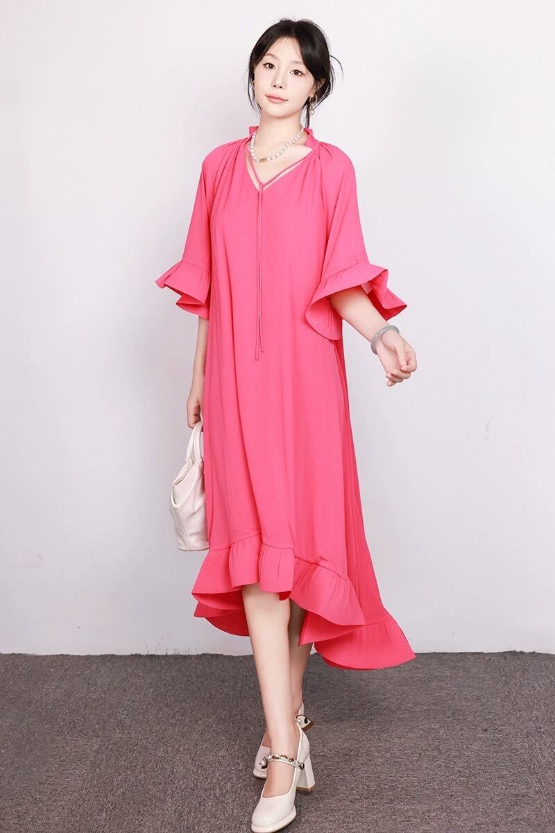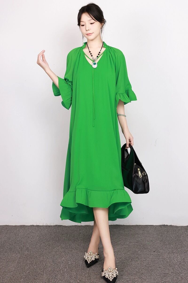 ゆったり ワンピース ブラウス Tシャツ 緑 ピンク オレンジ カジュアル