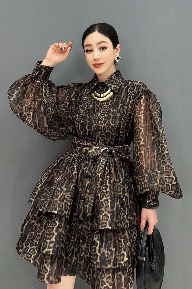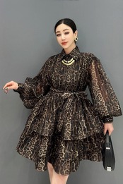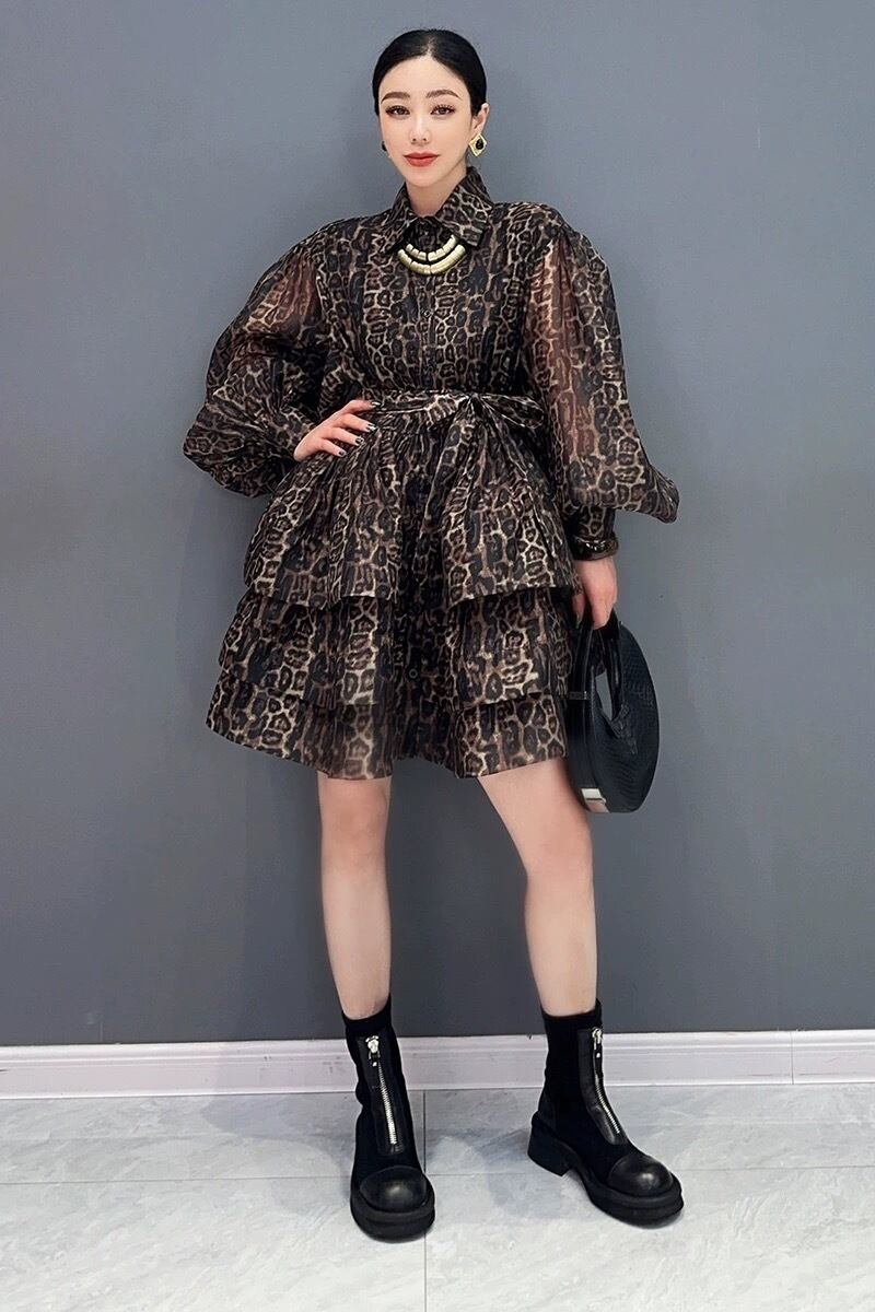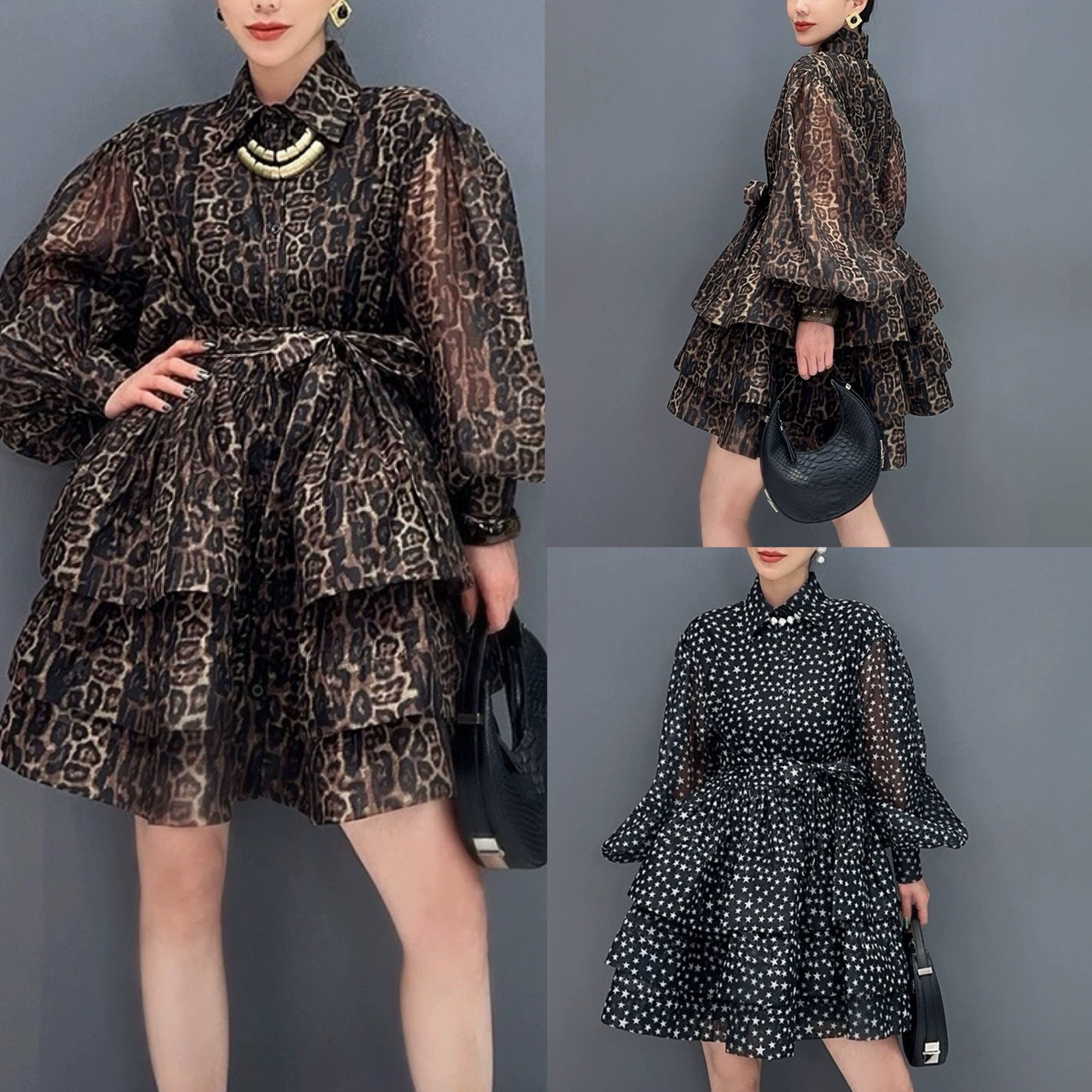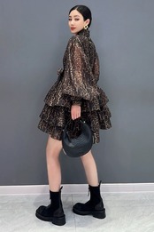 黒 レオパード 茶色 ガーリー ブラウス リボン スカート