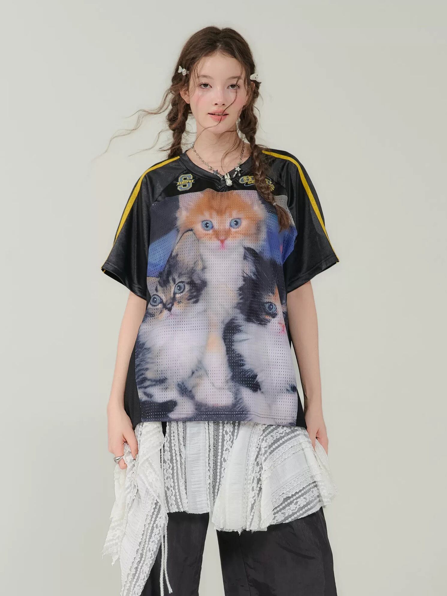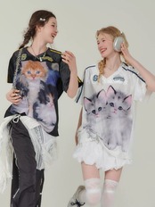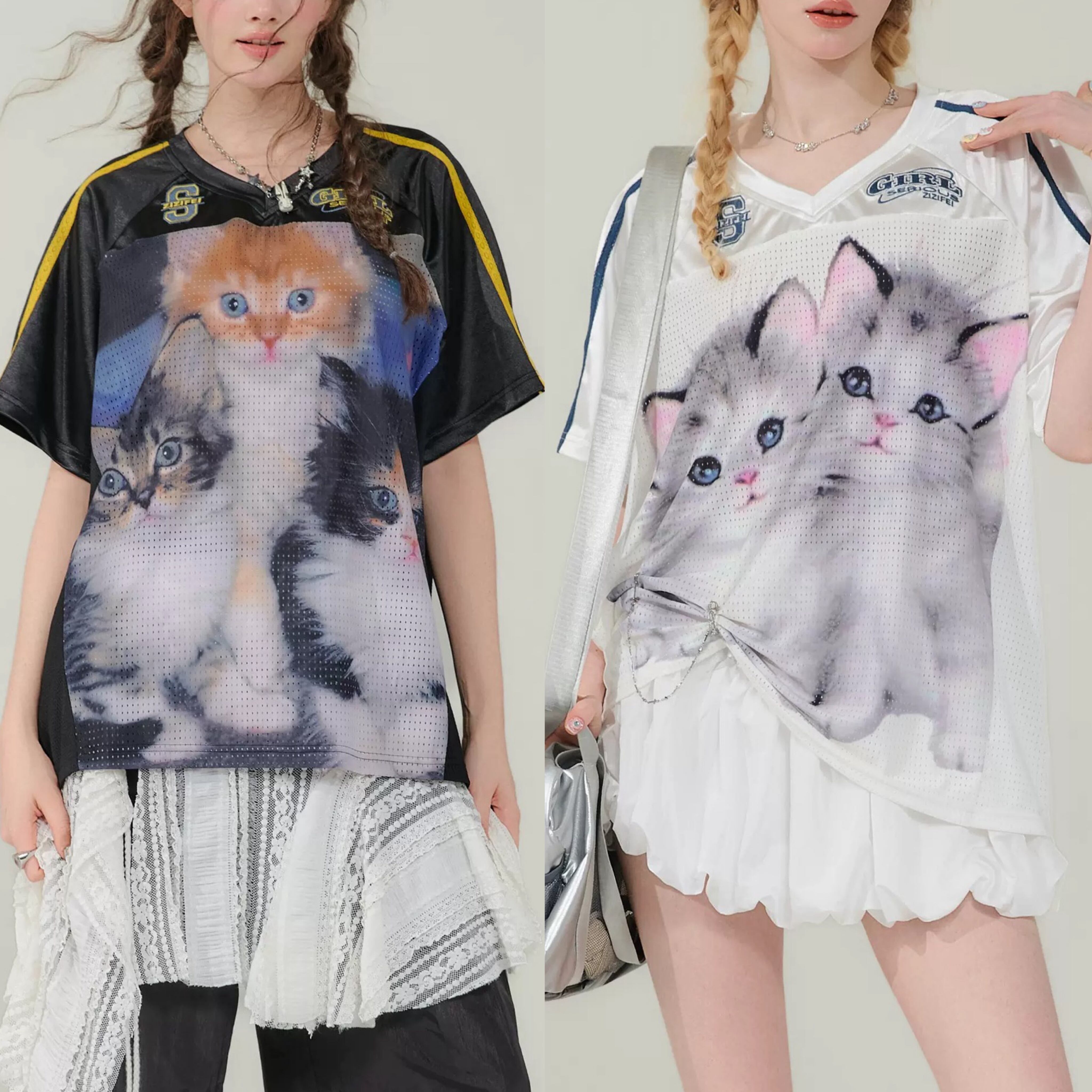 猫ちゃん 可愛い カジュアル スウェット Tシャツ 白 黒