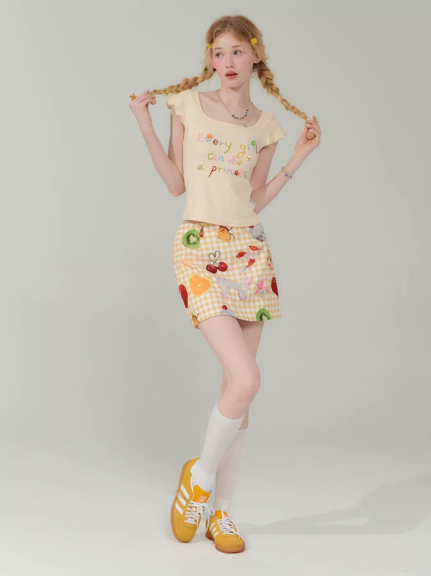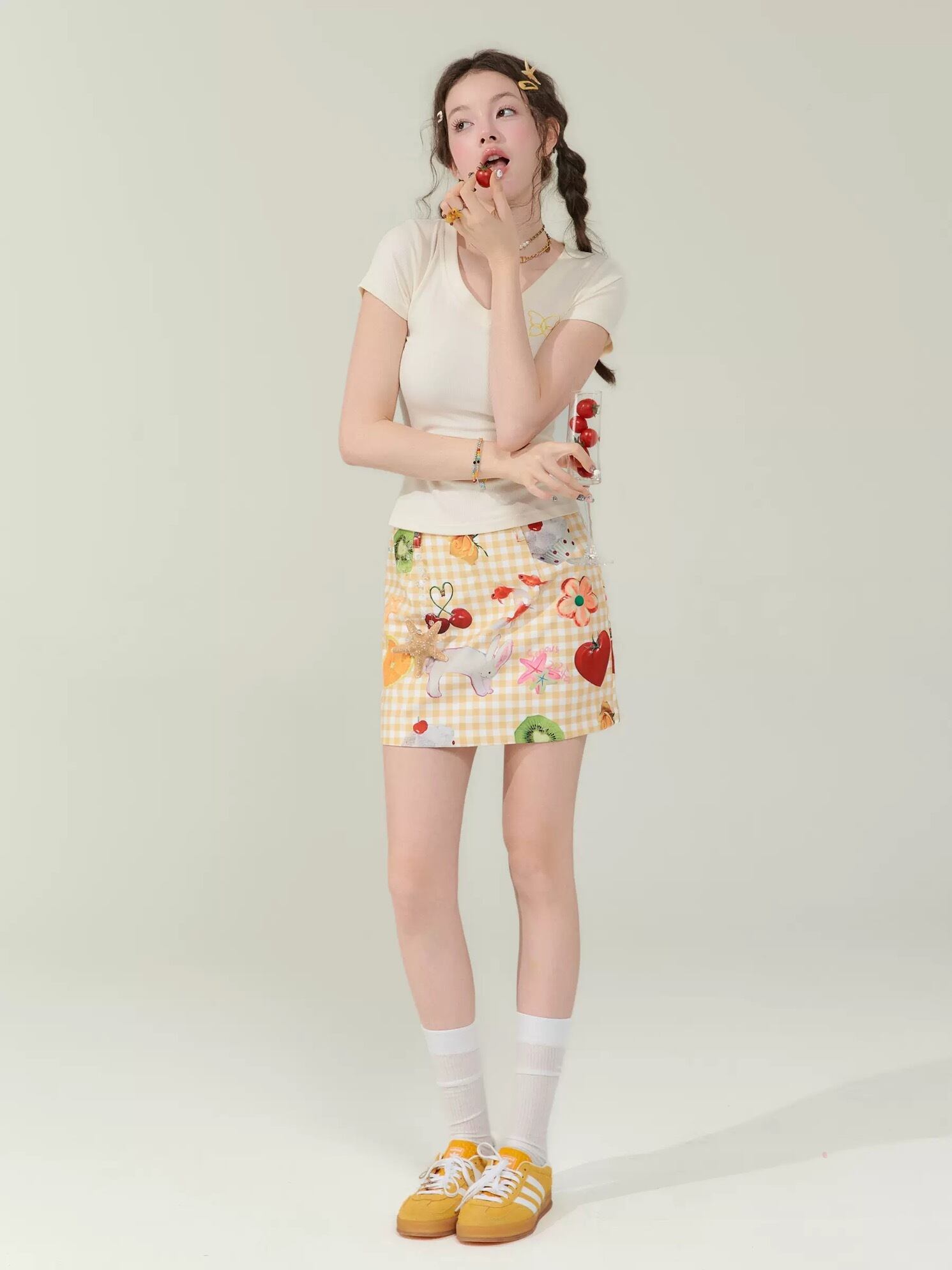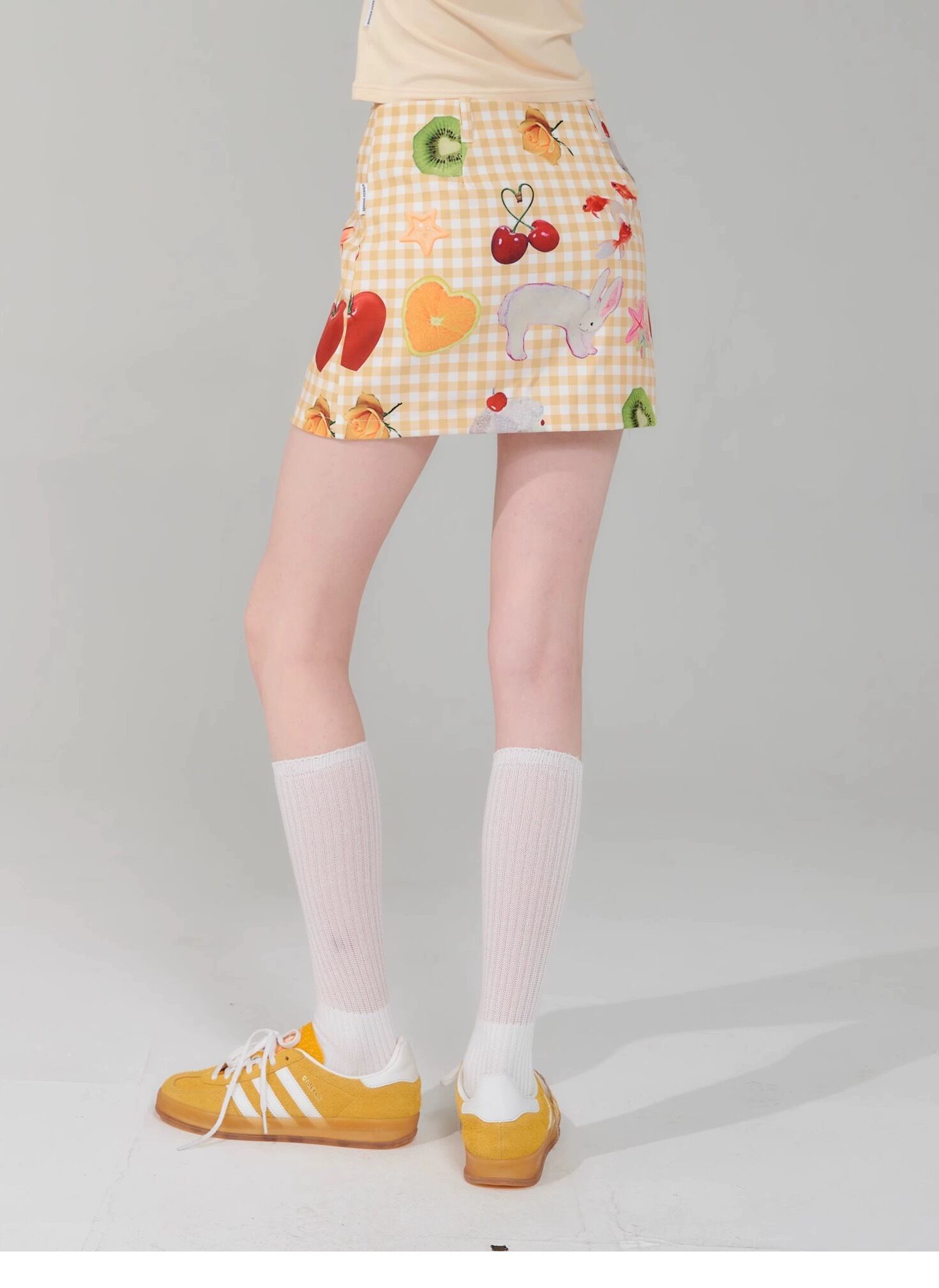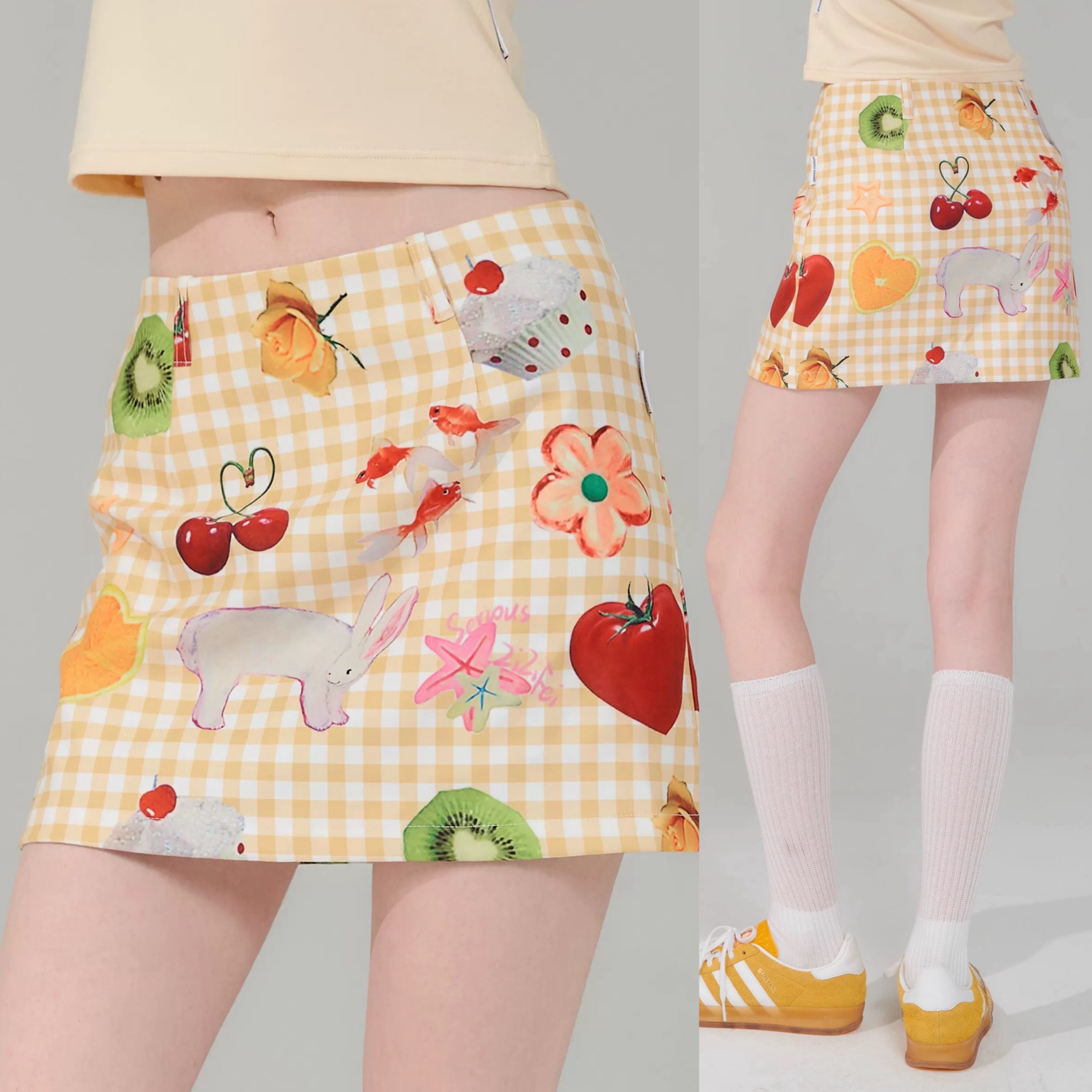 黄色 チェック 可愛い ガーリー ミニスカート ボトムス 原宿