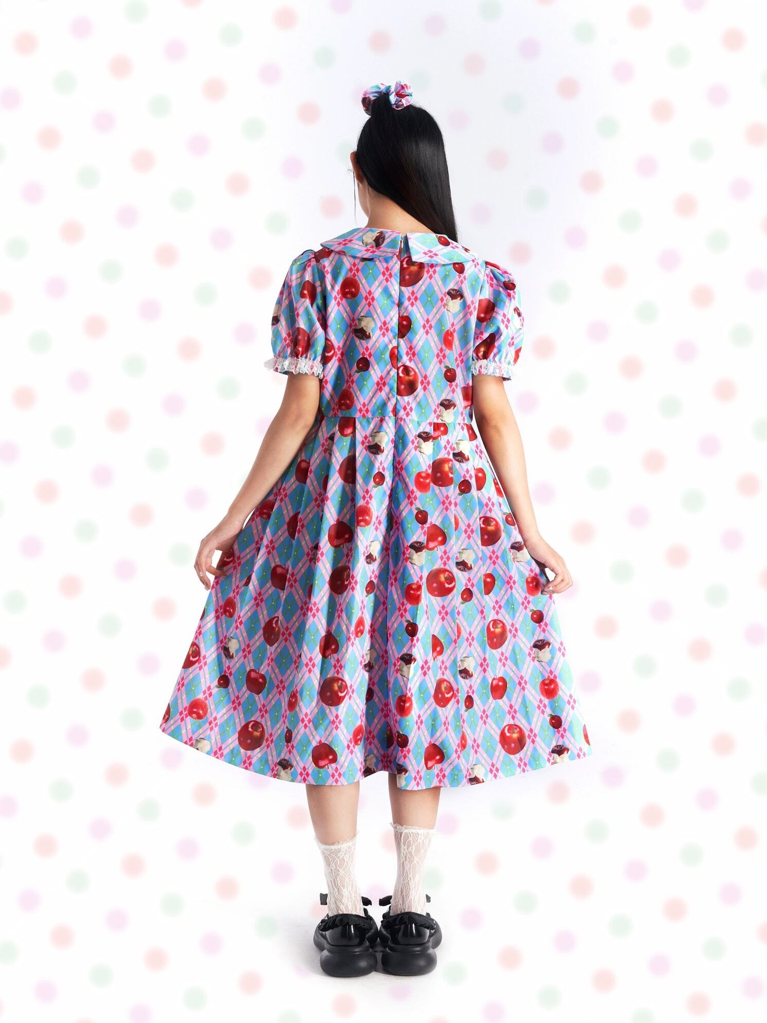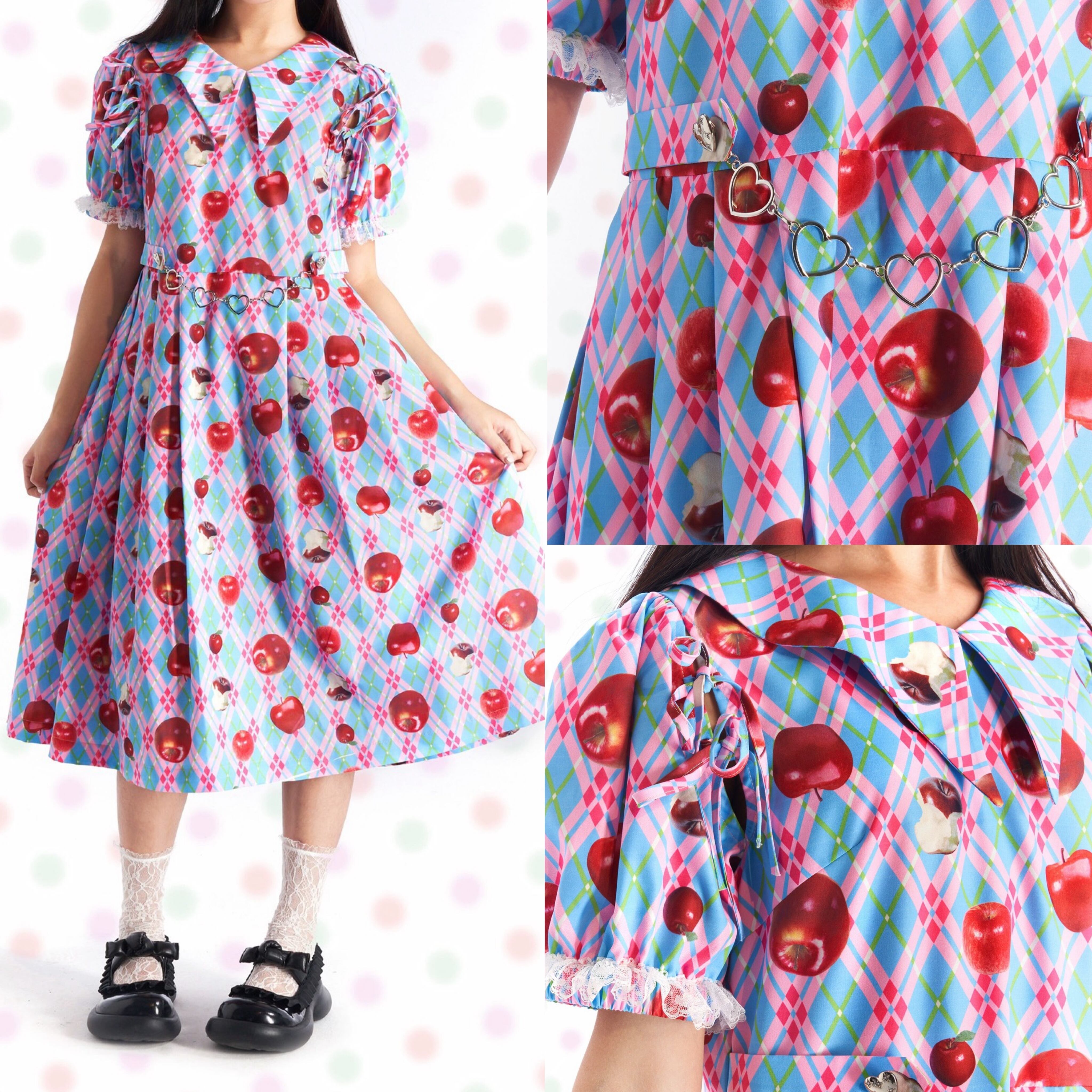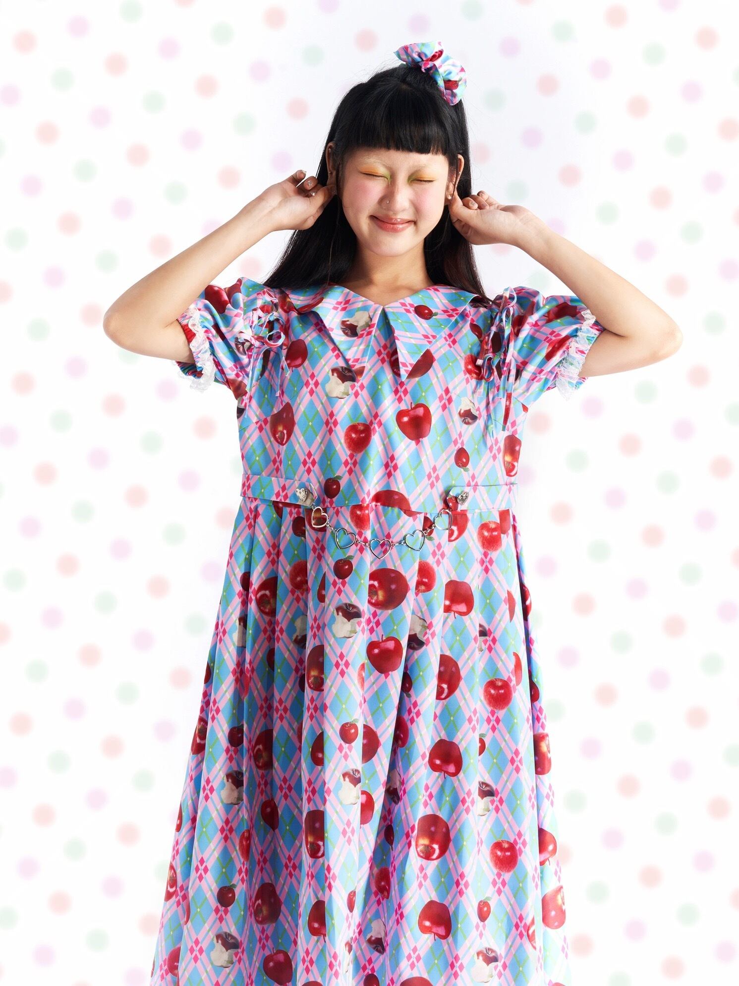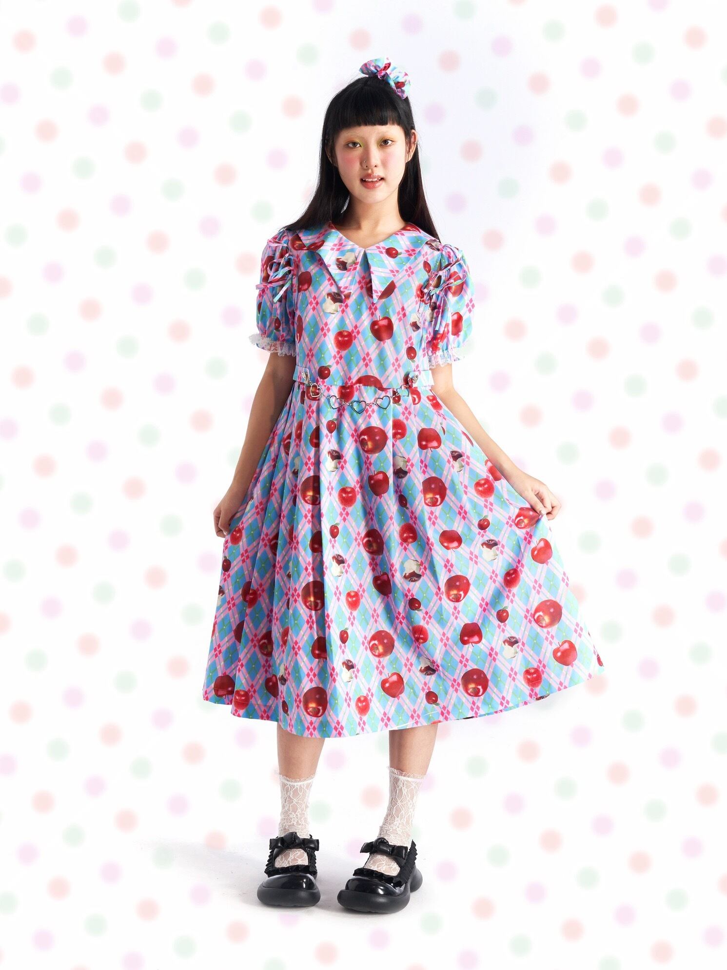 水色 可愛い ガーリー チェック ブラウス 原宿 ワンピース