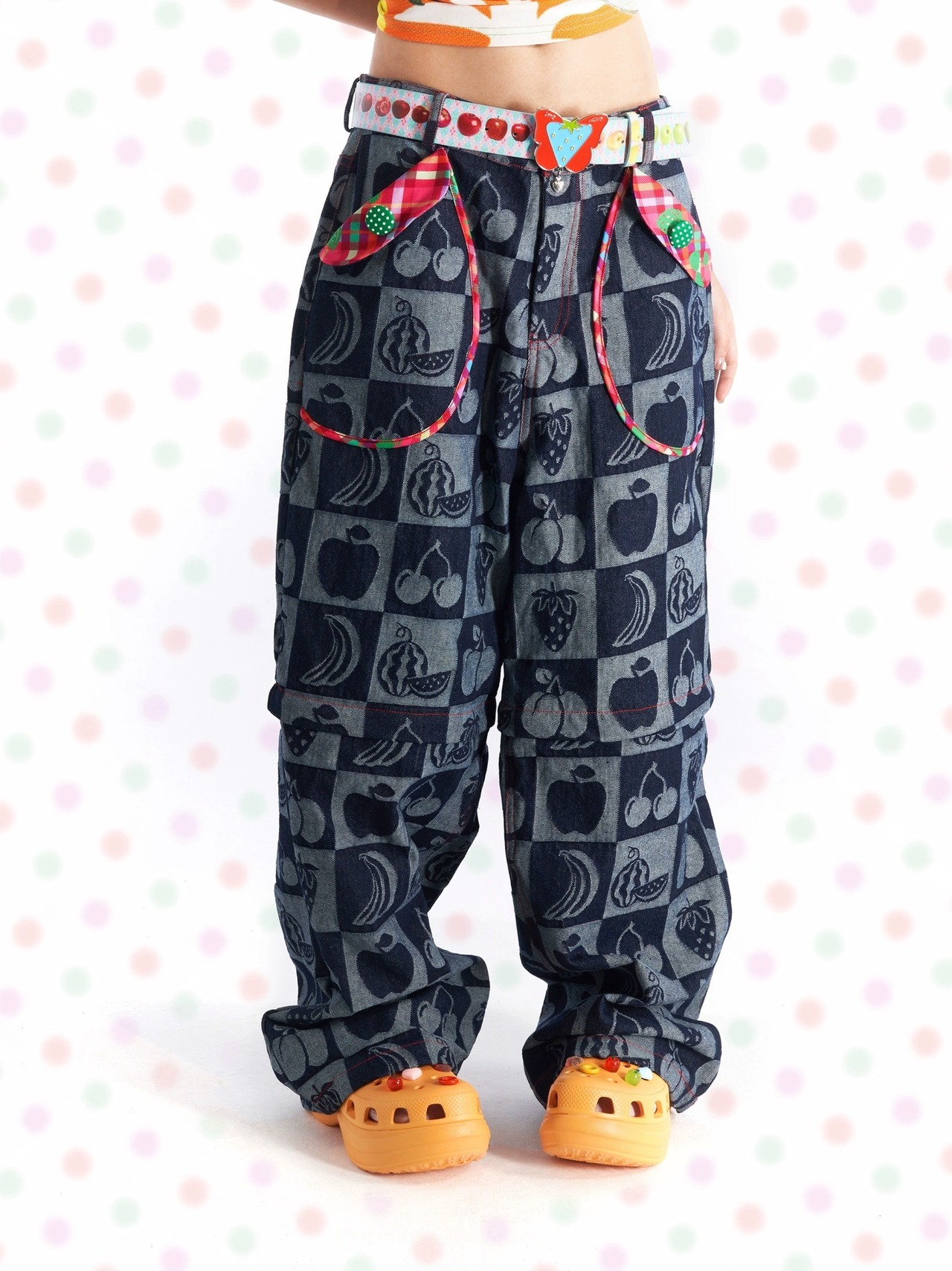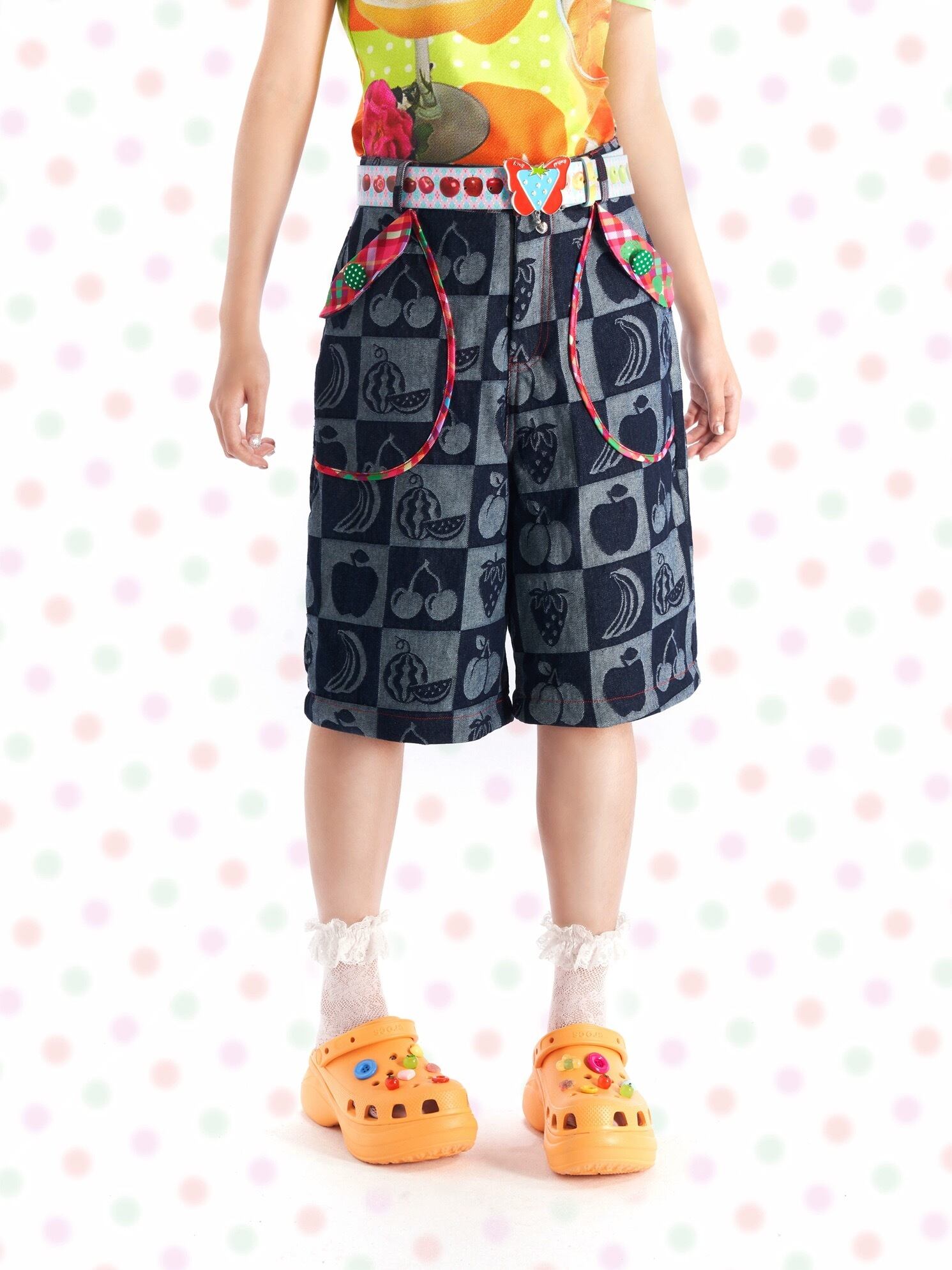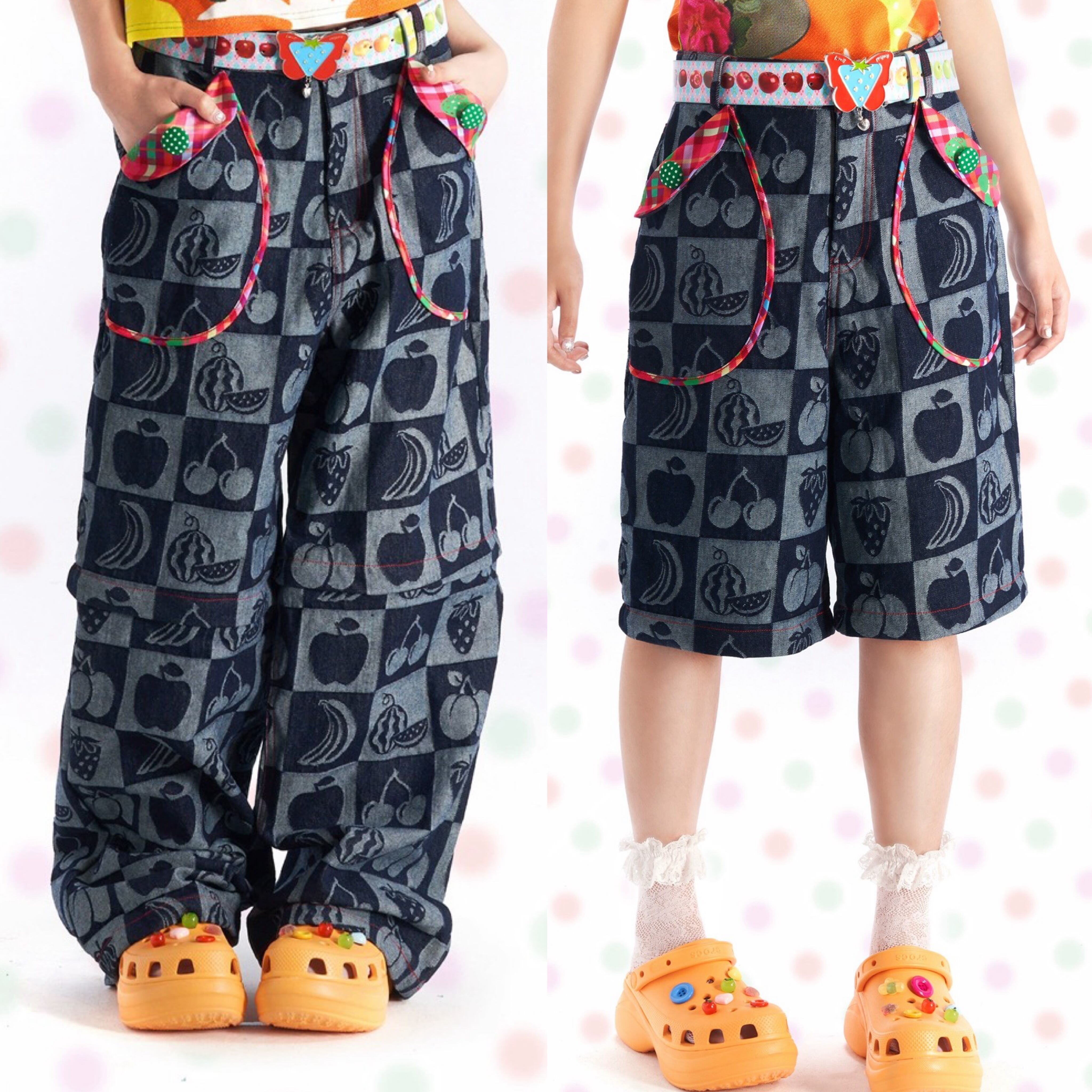 【2way】ハーフパンツ デニム ズボン パンツ フルーツ 原宿