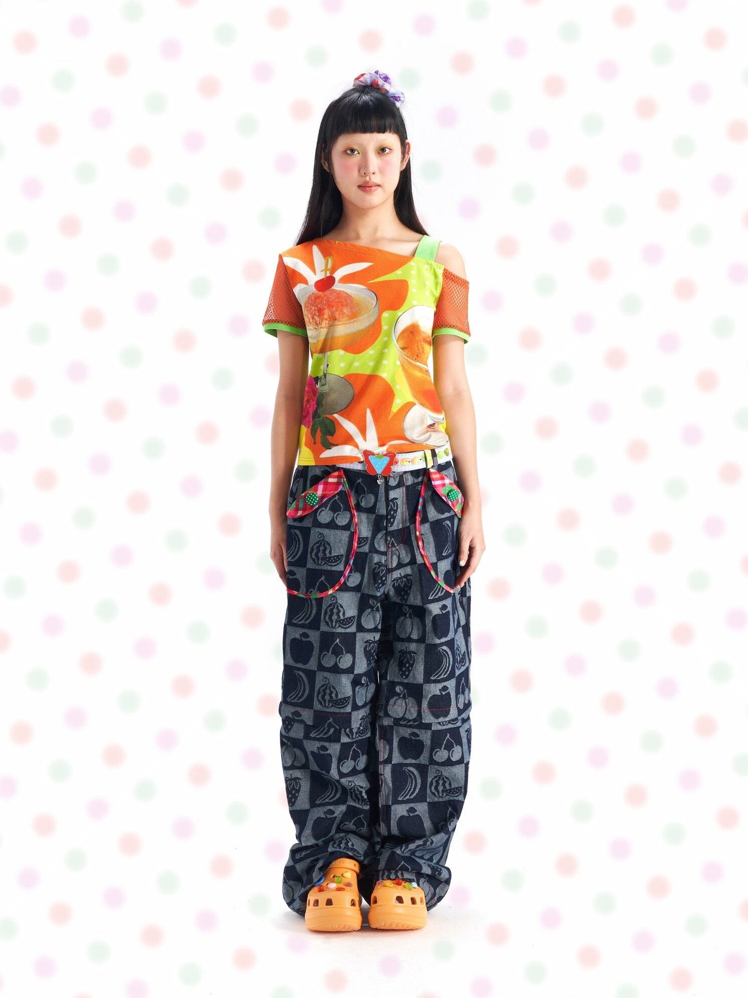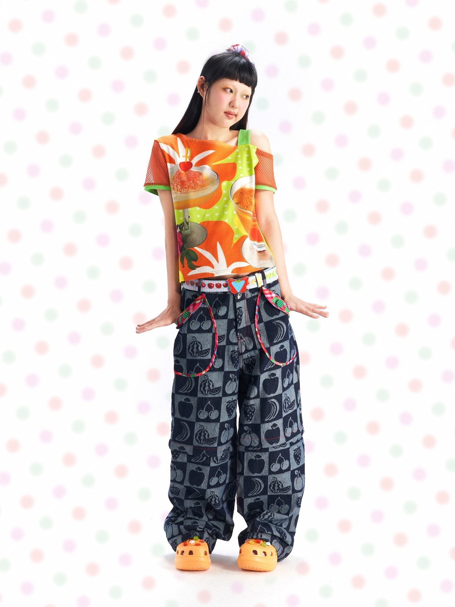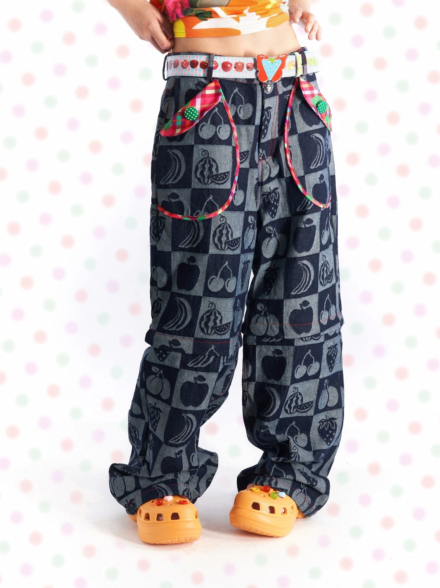 【2way】ハーフパンツ デニム ズボン パンツ フルーツ 原宿