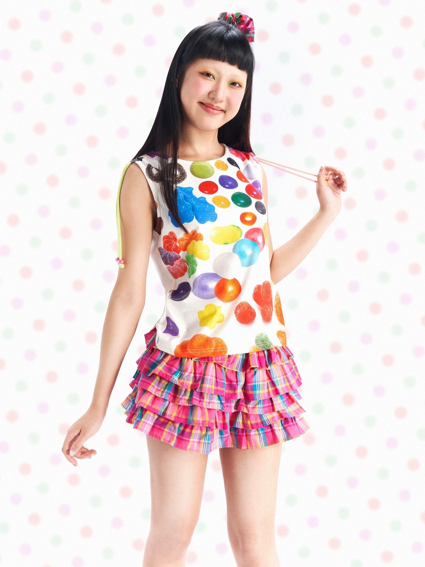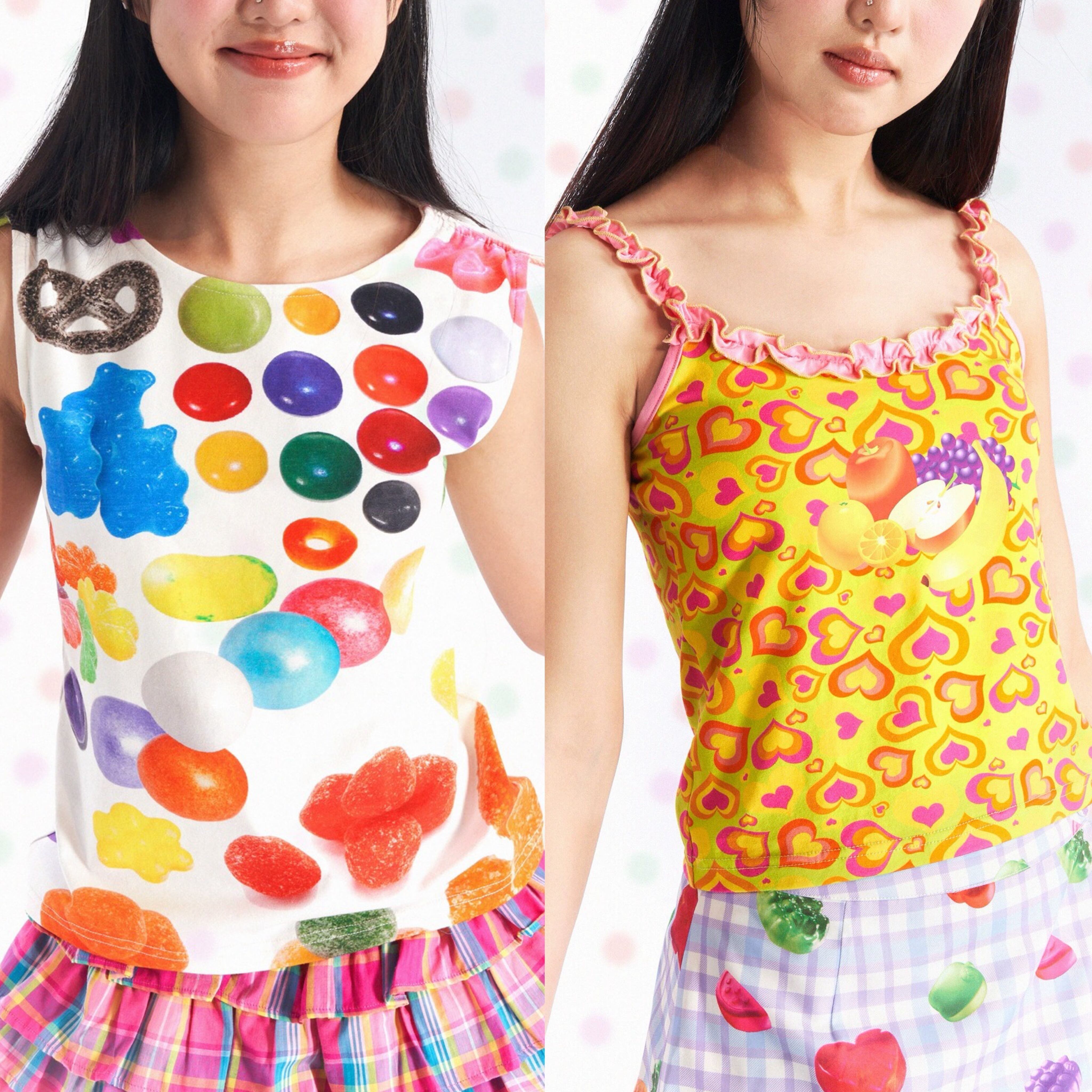 カラフル タンクトップ ガーリー オレンジ ブラウス