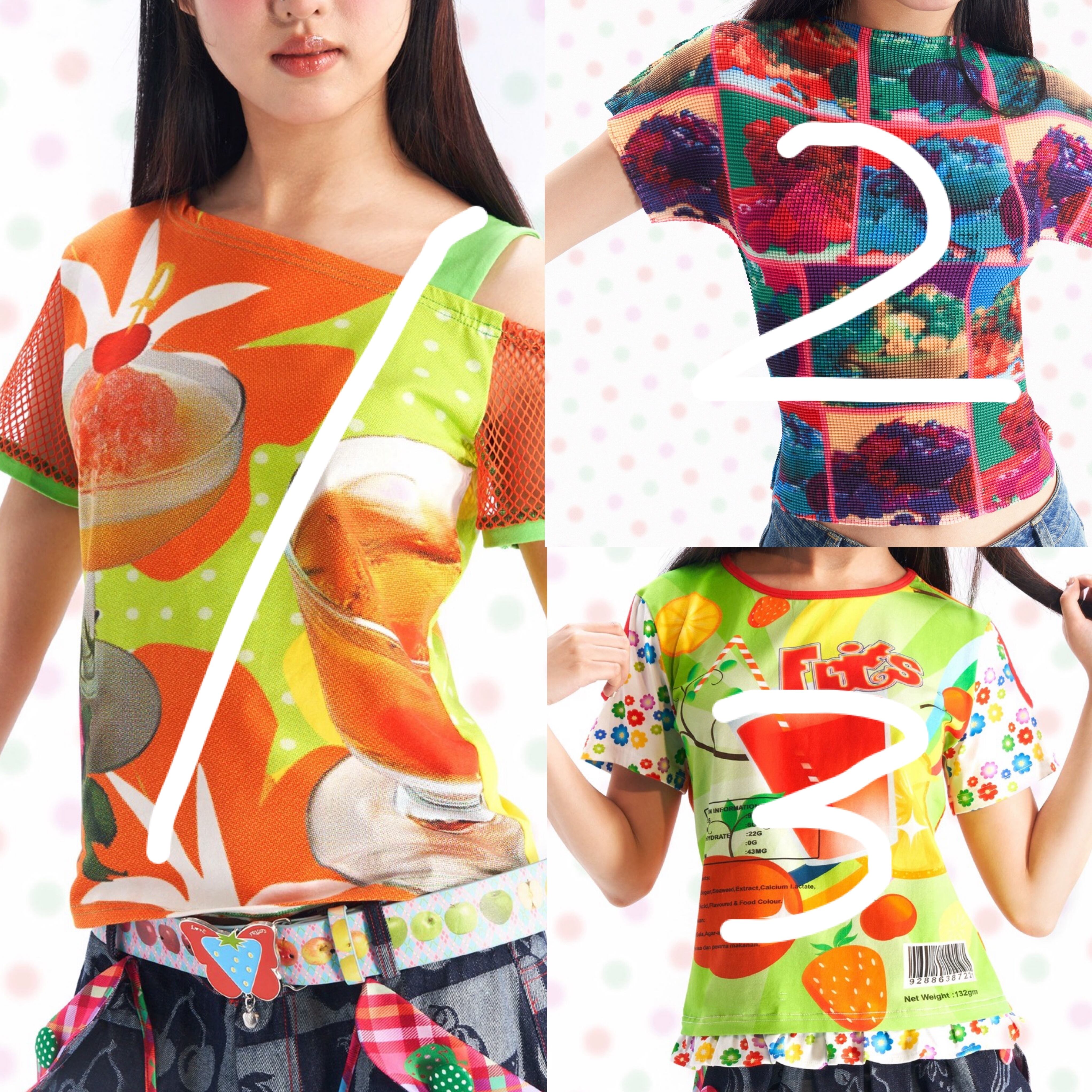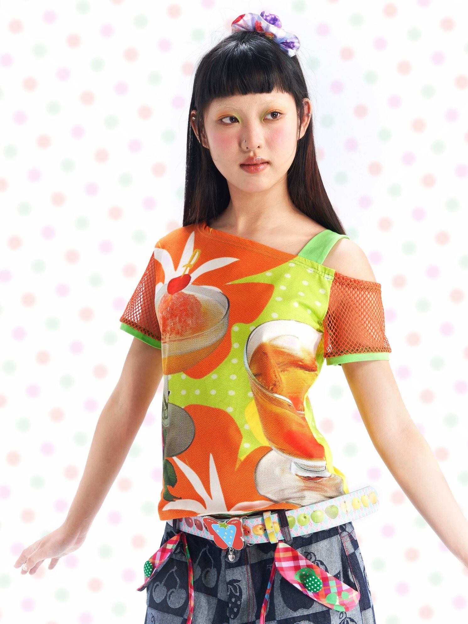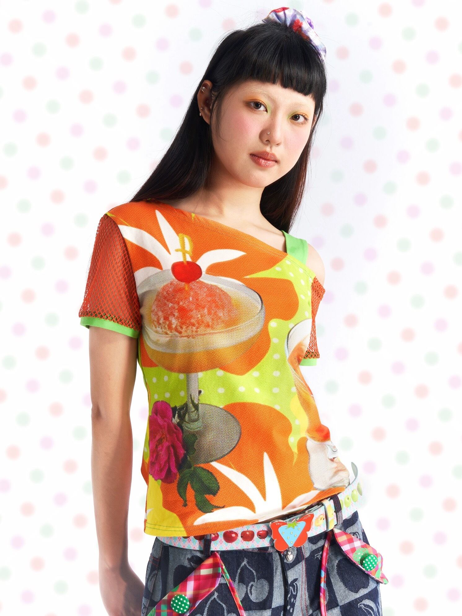 可愛い カラフル Tシャツ 原宿 ブラウス チェック 紫 オレンジ