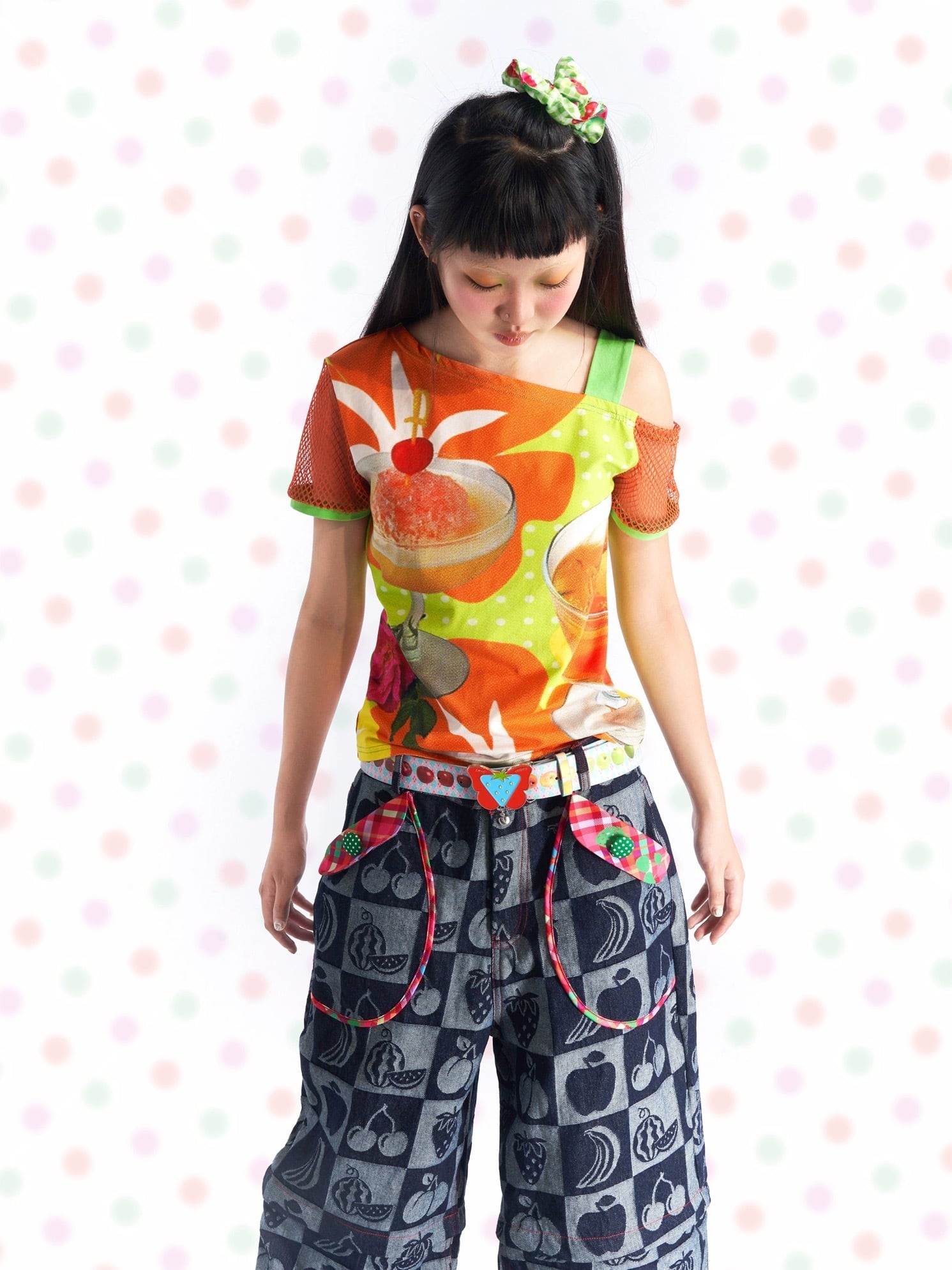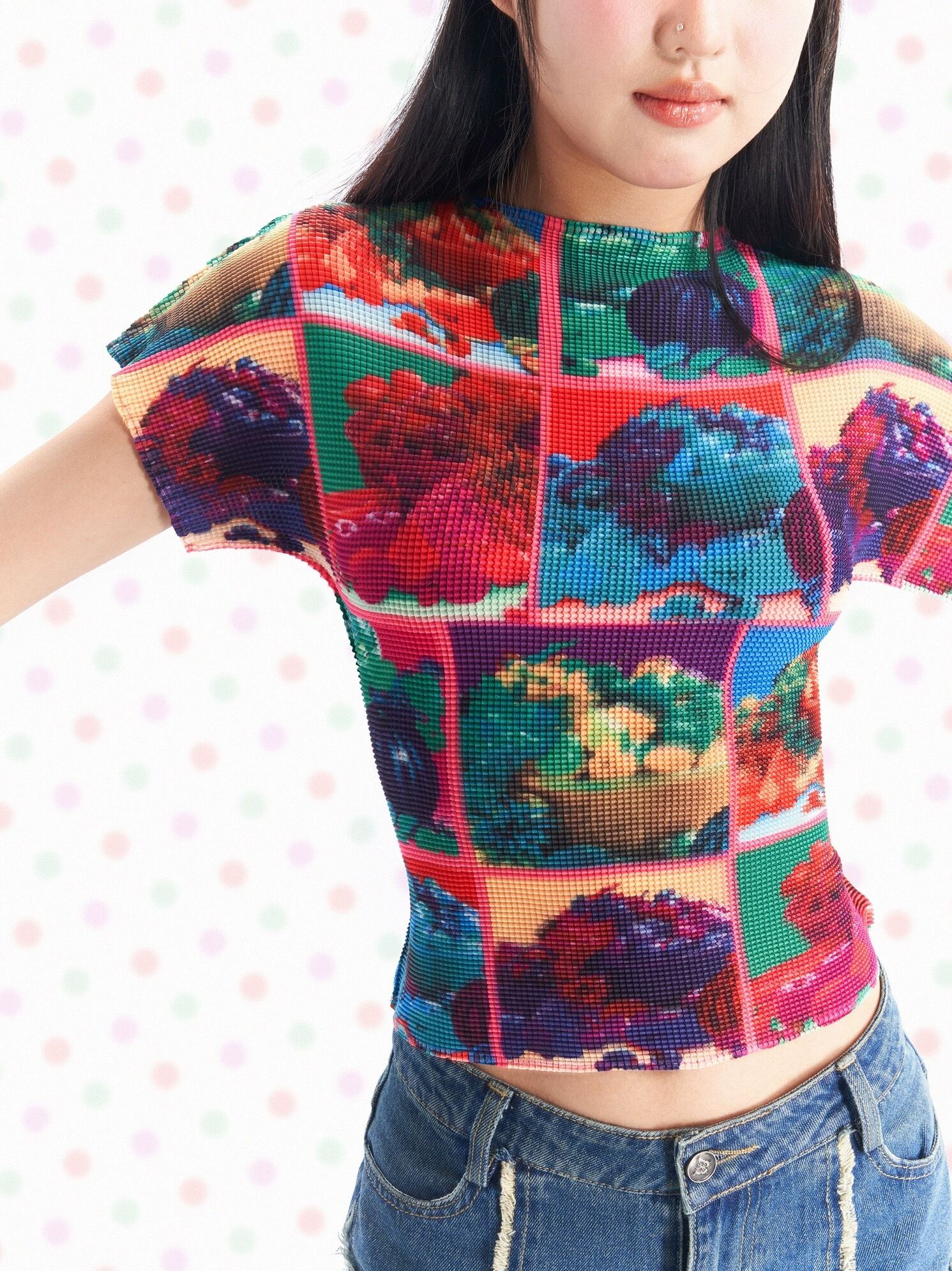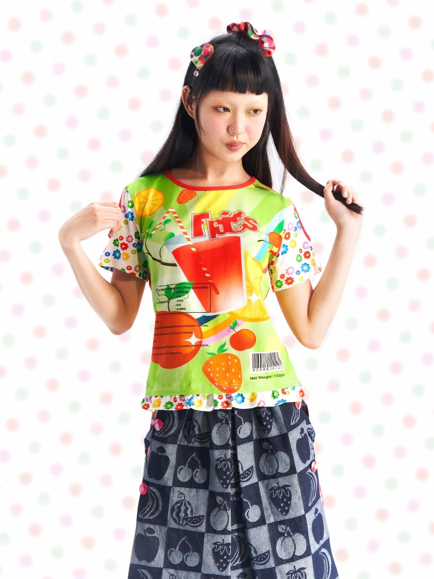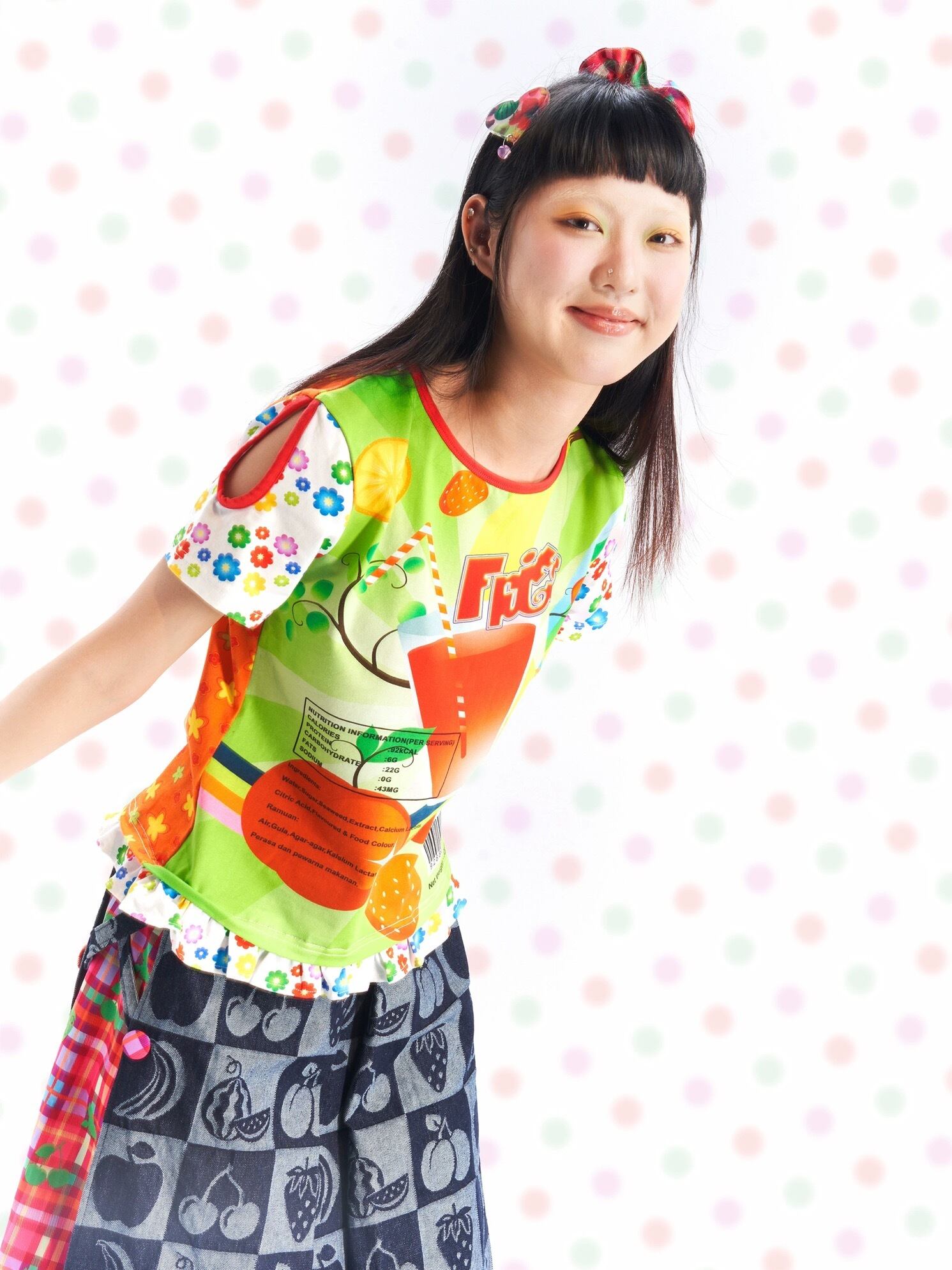 可愛い カラフル Tシャツ 原宿 ブラウス チェック 紫 オレンジ