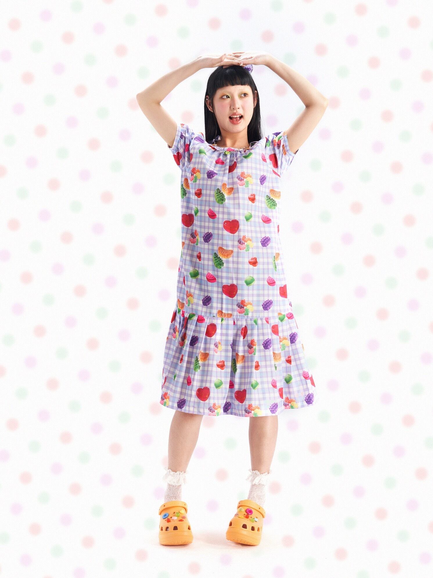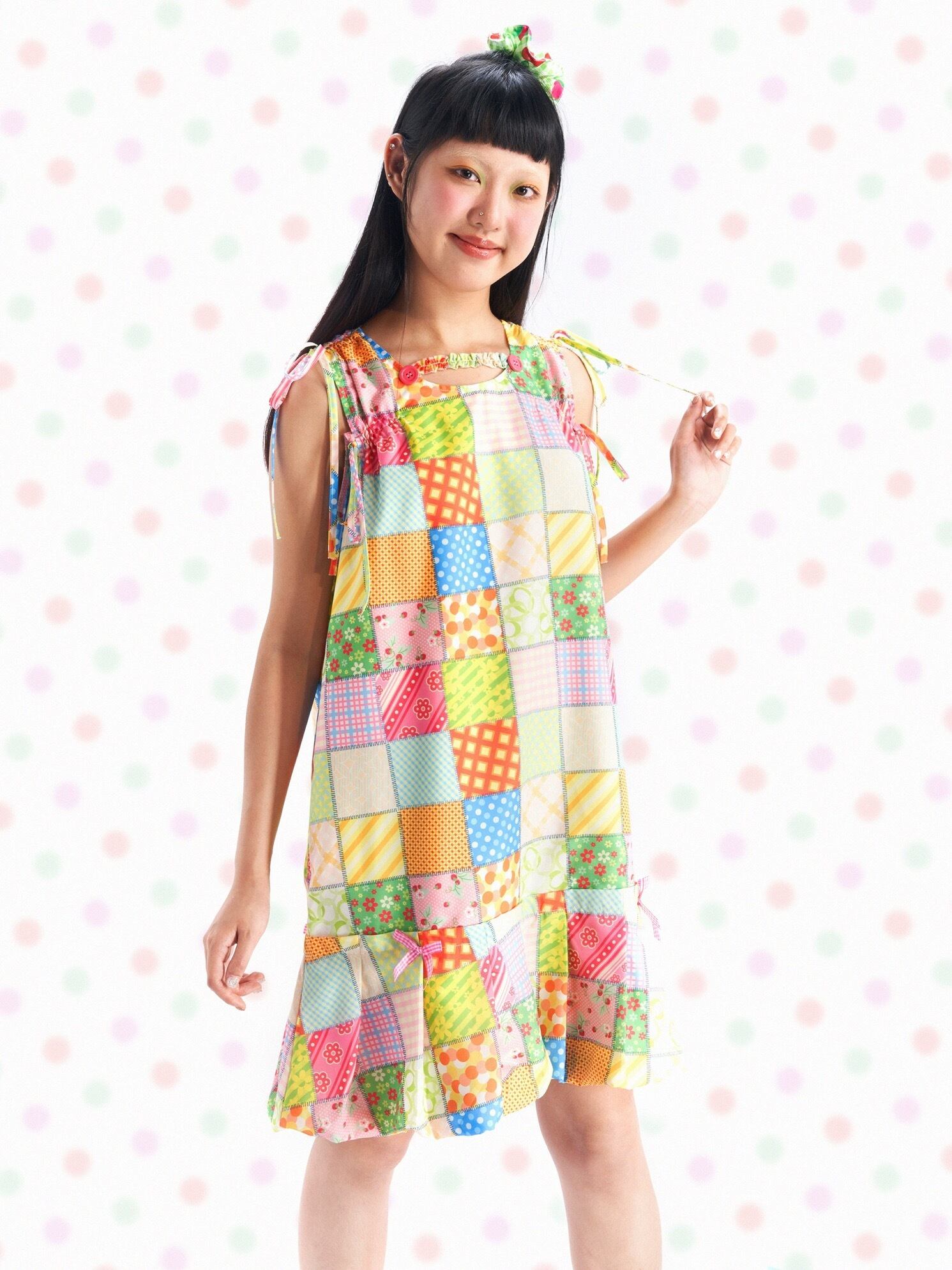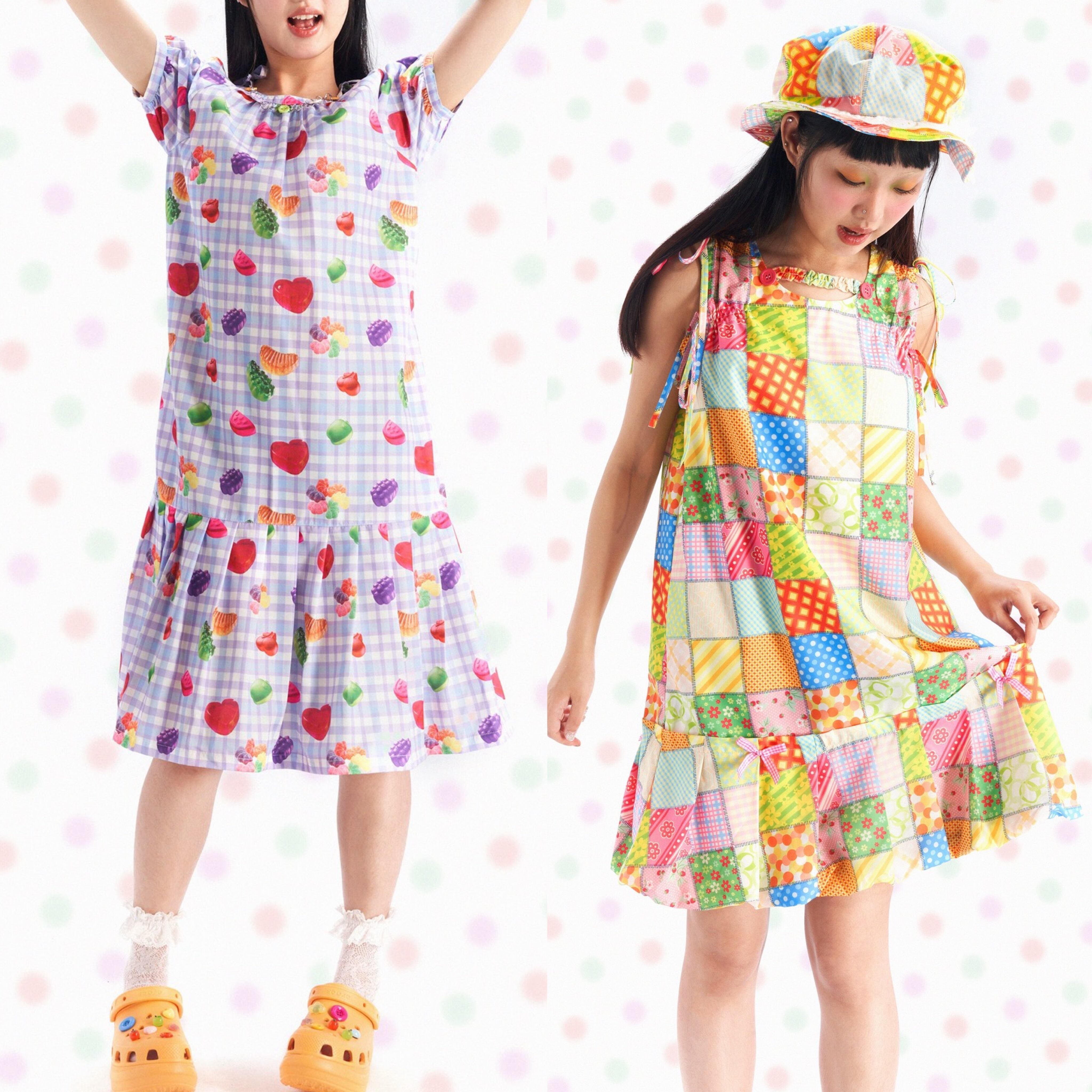 紫 チェック 黄色 可愛い ワンピース 原宿