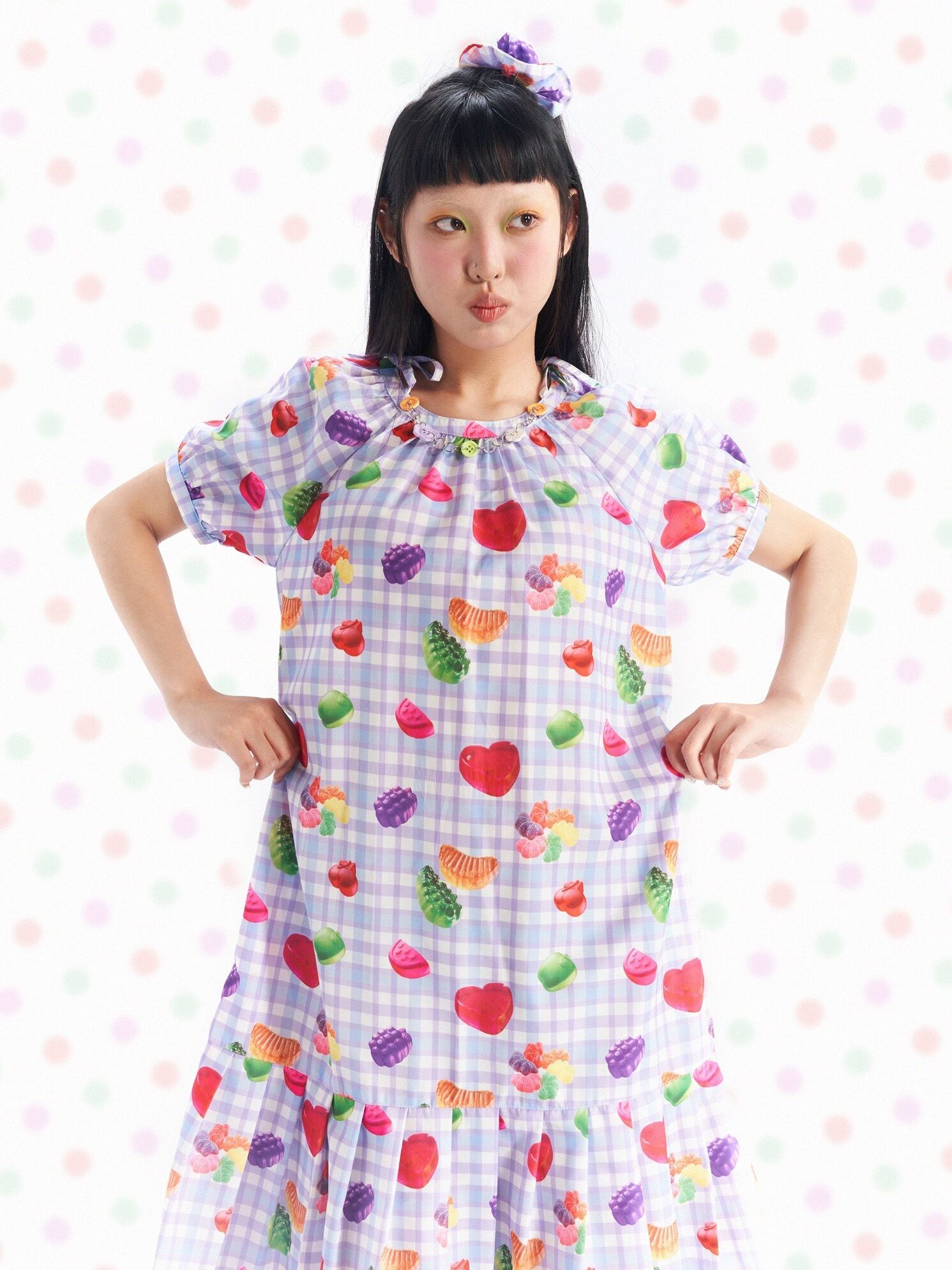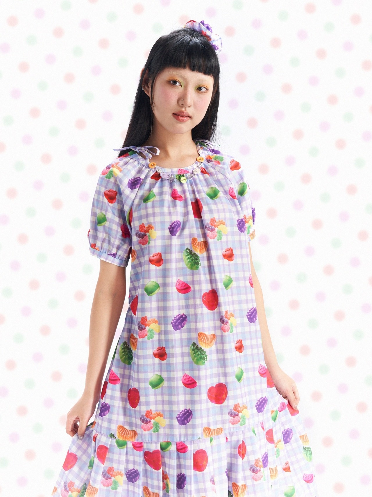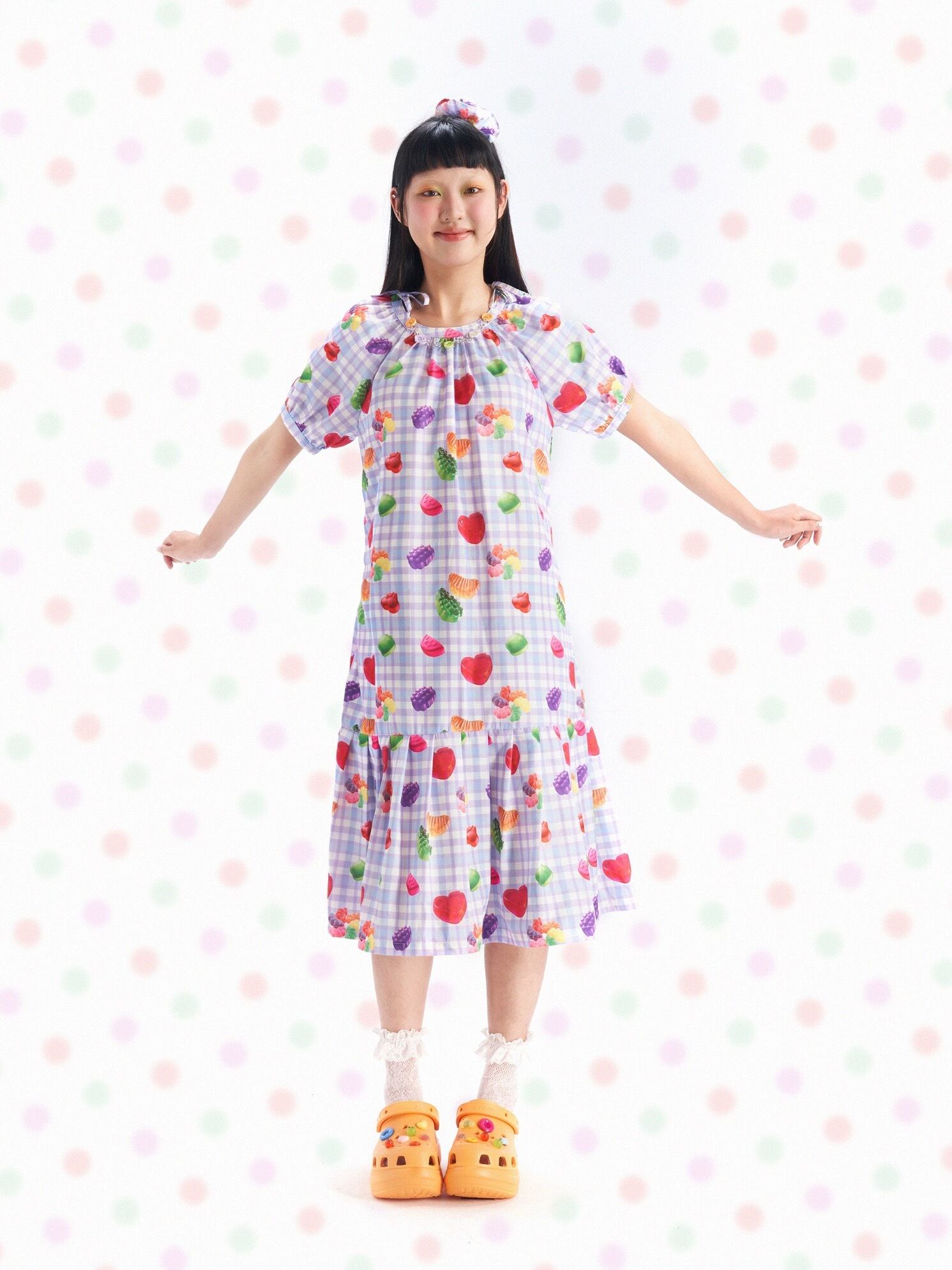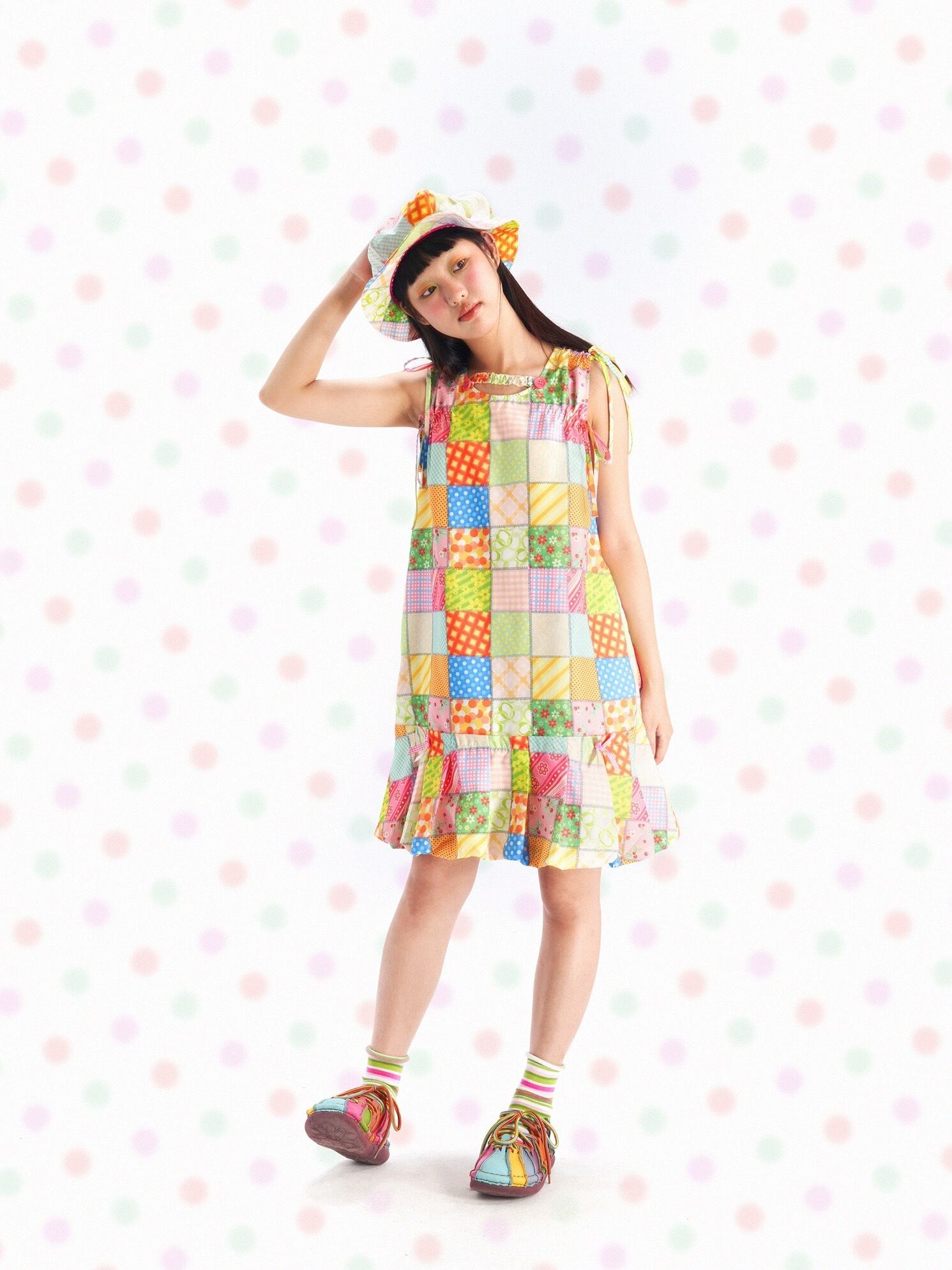 紫 チェック 黄色 可愛い ワンピース 原宿