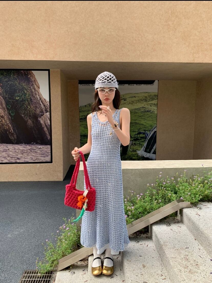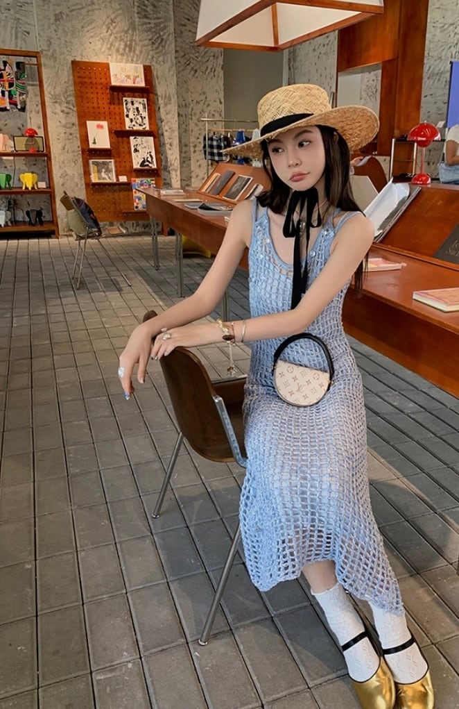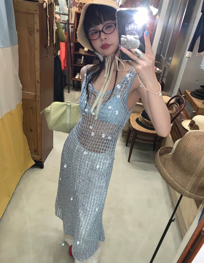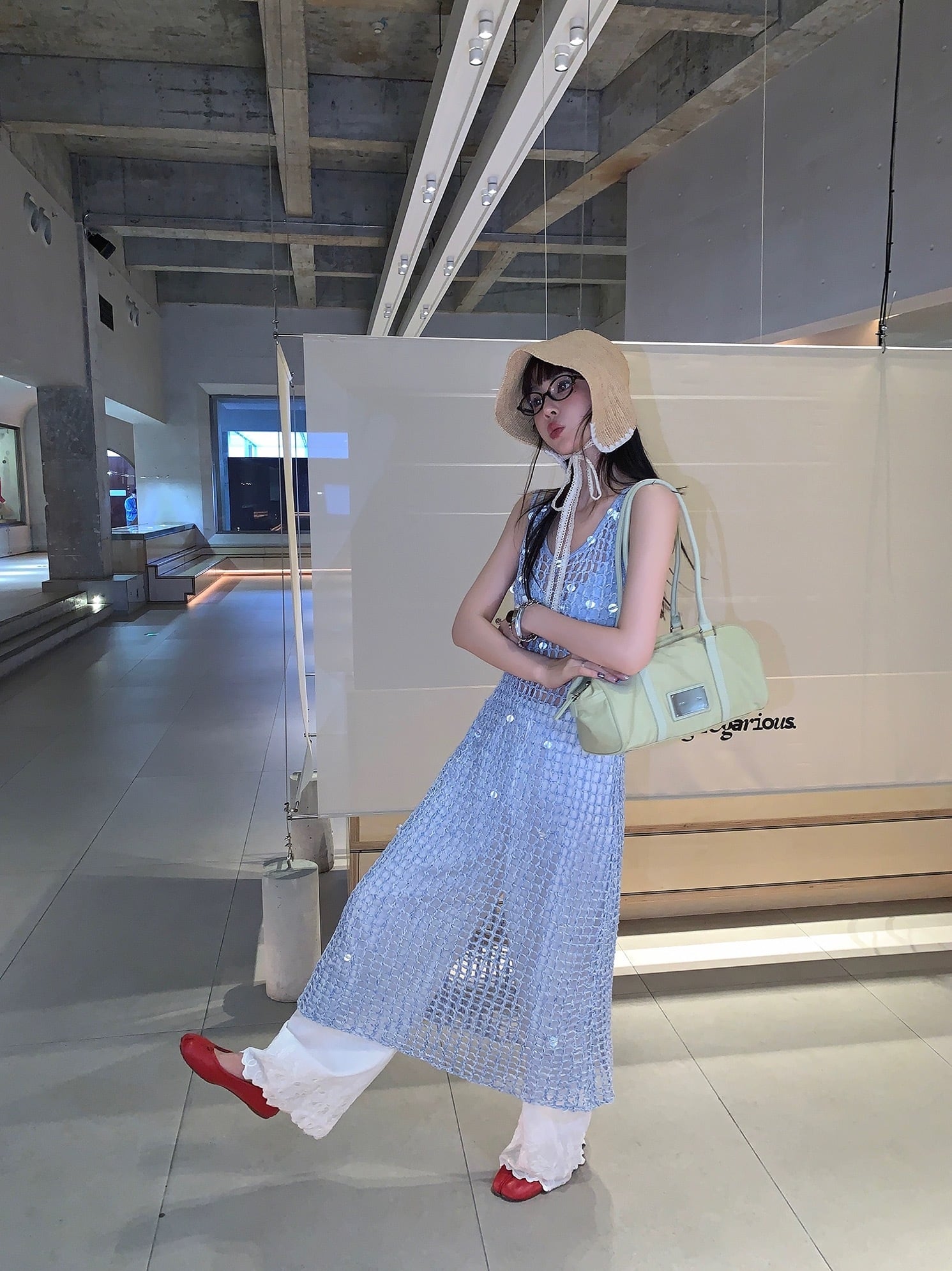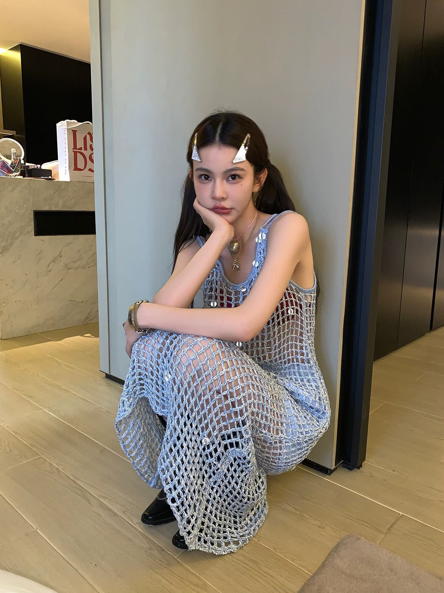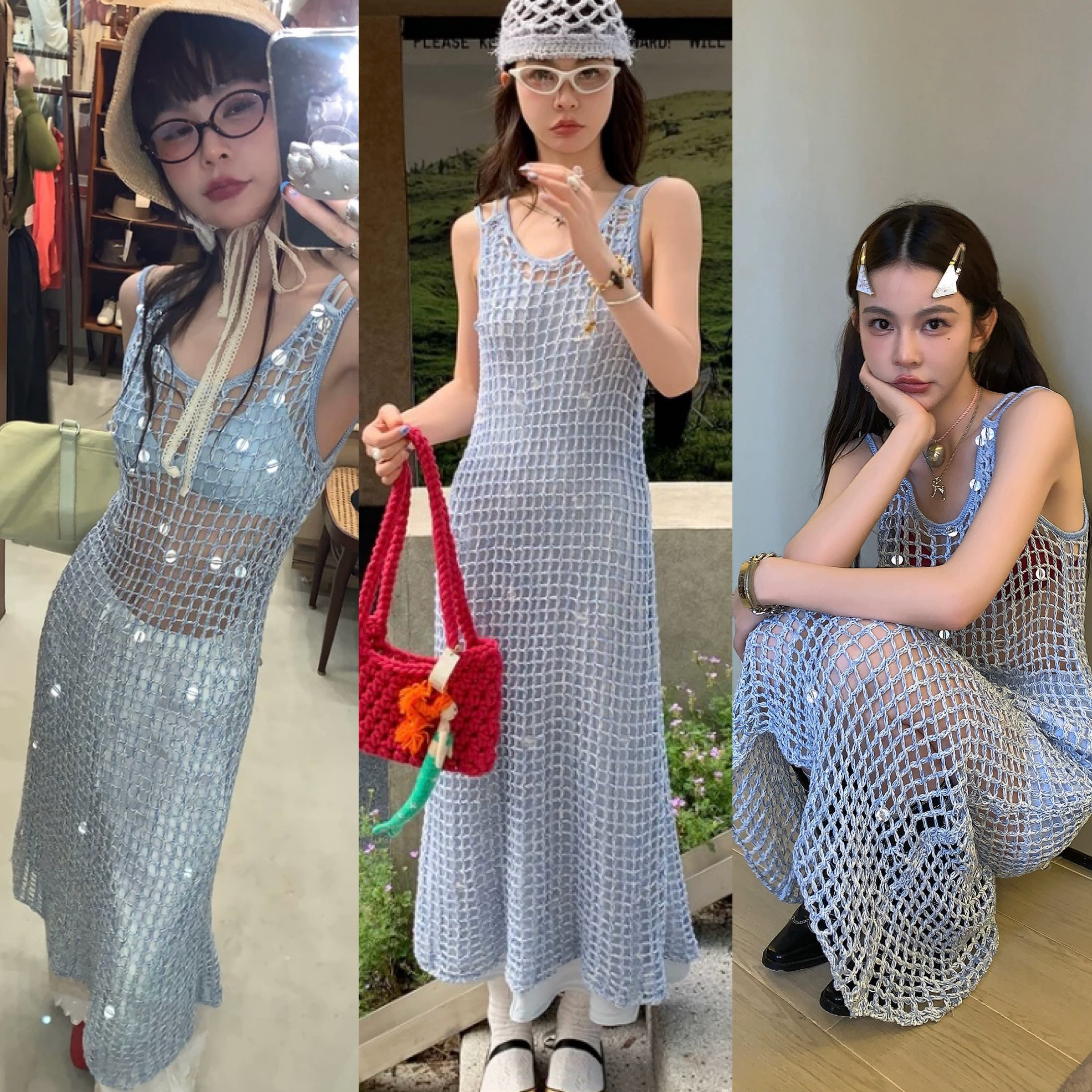 メッシュ 水色 グレー あみあみ ワンピース ベスト ブラウス トップス