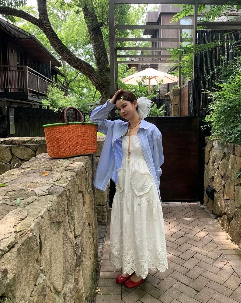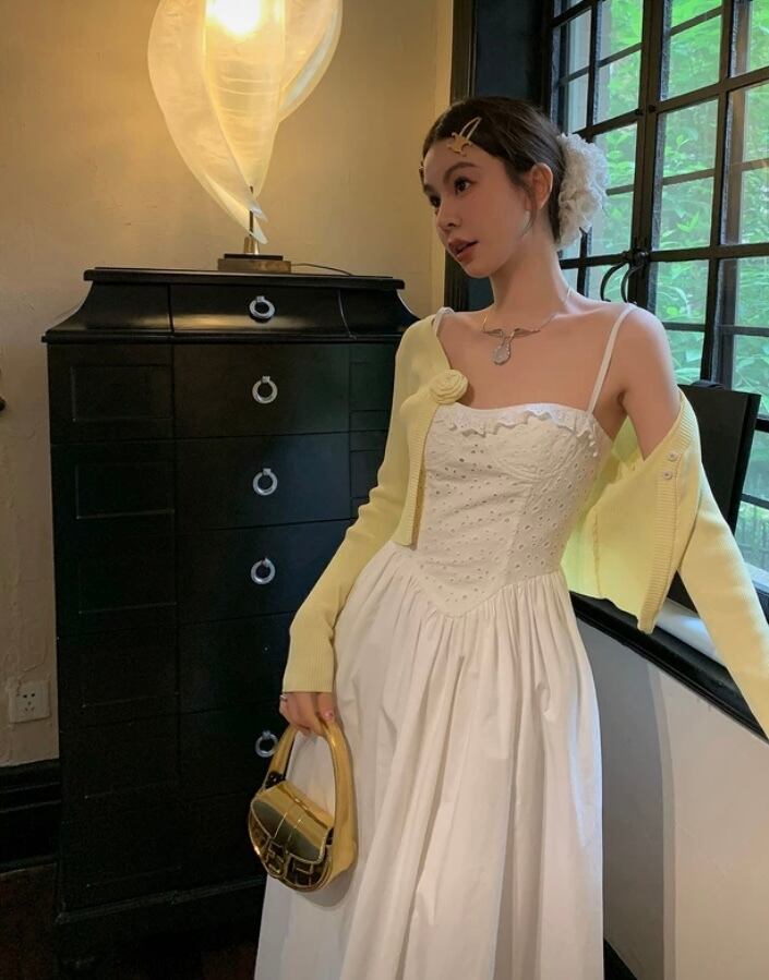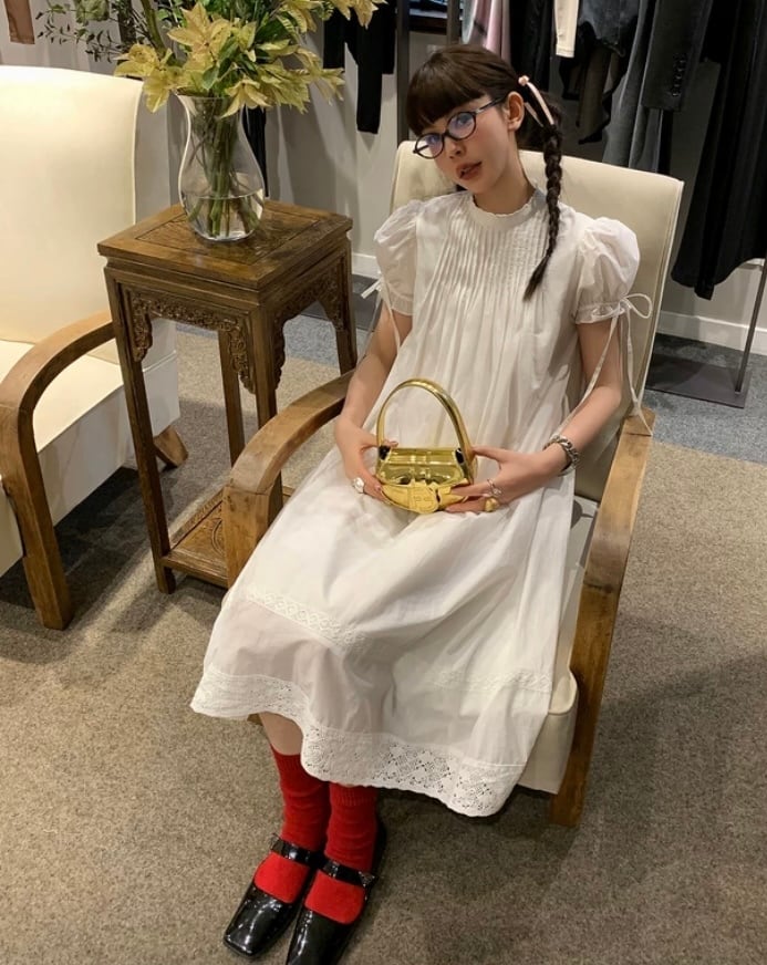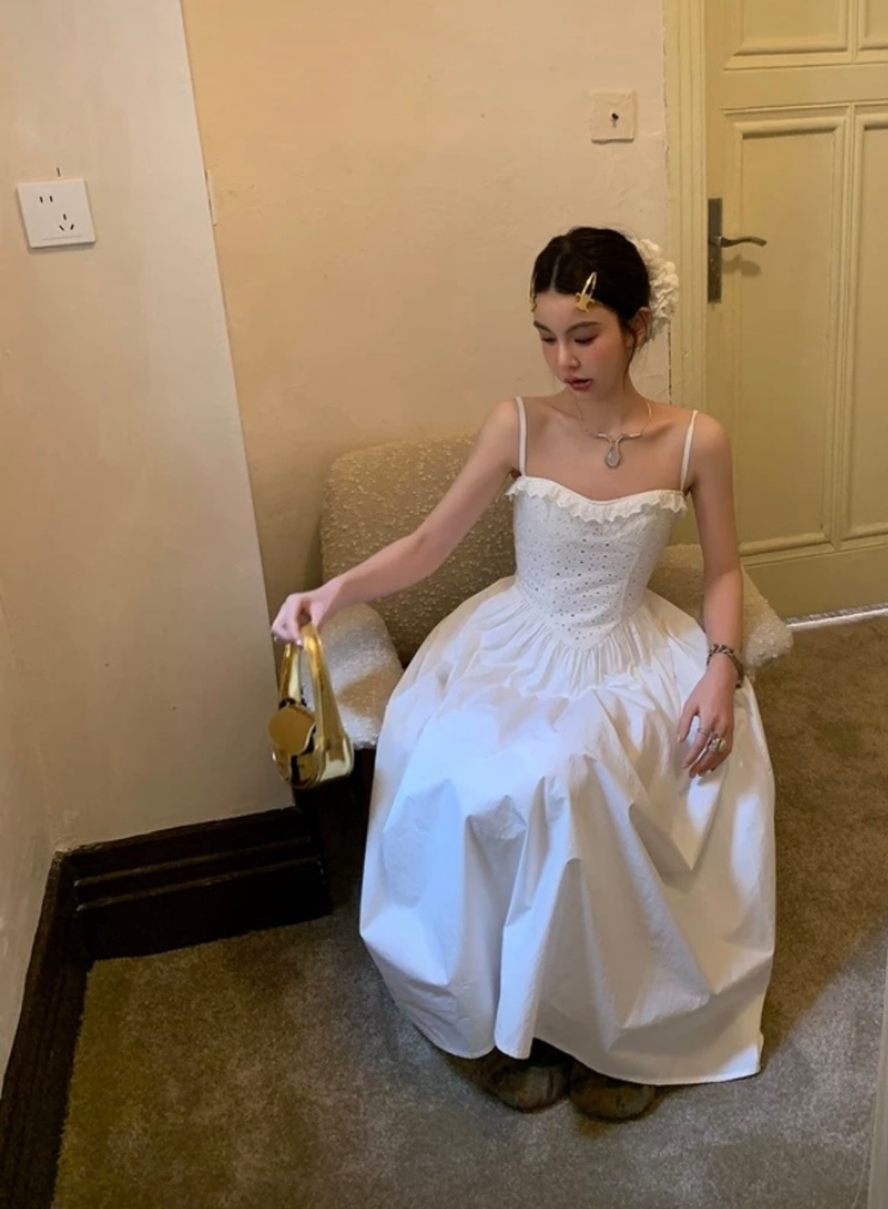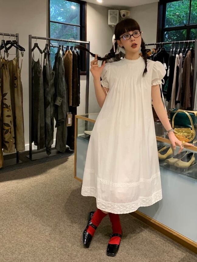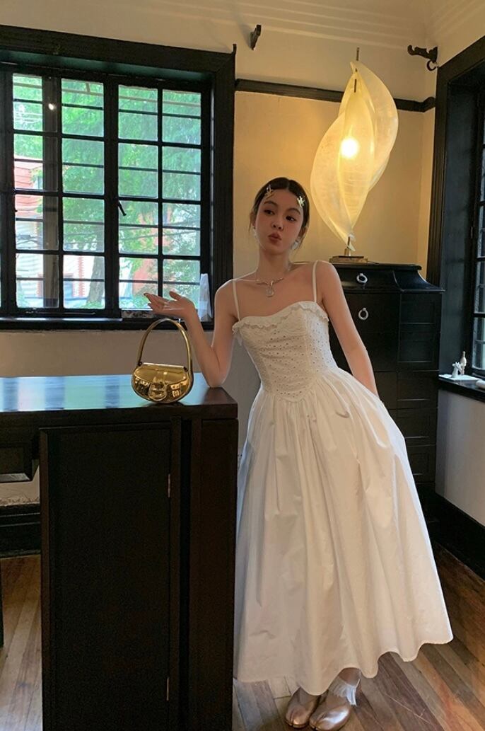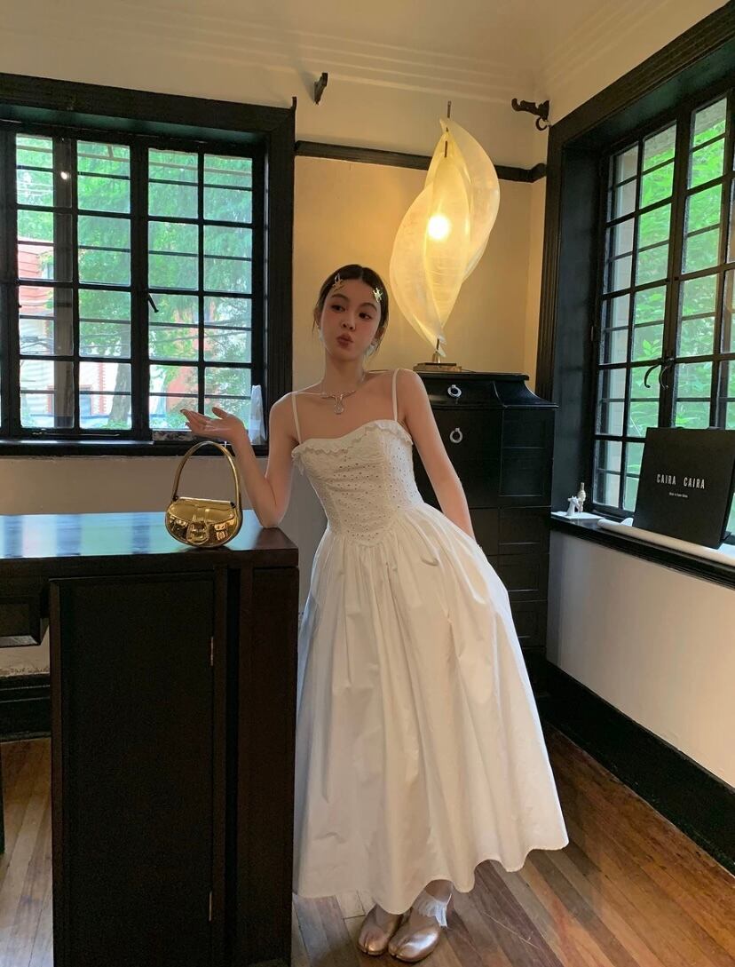 白 ハート マキシ ワンピース カジュアル ガーリー