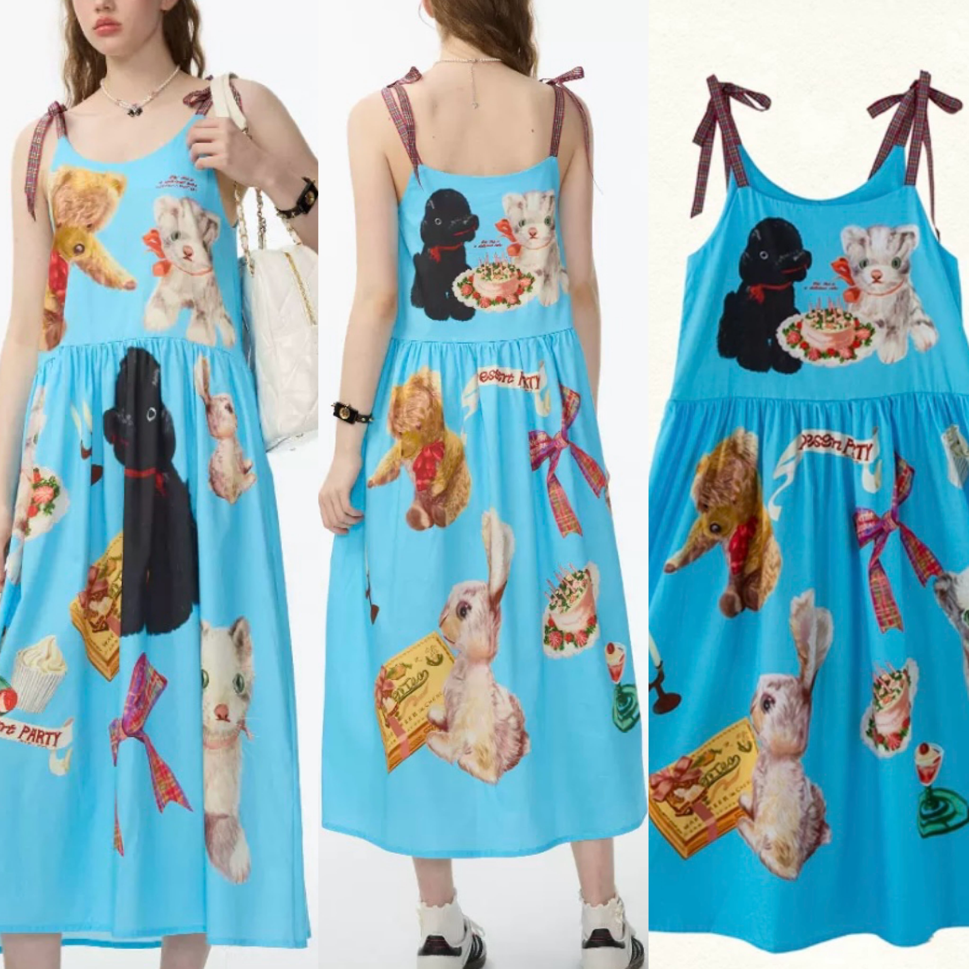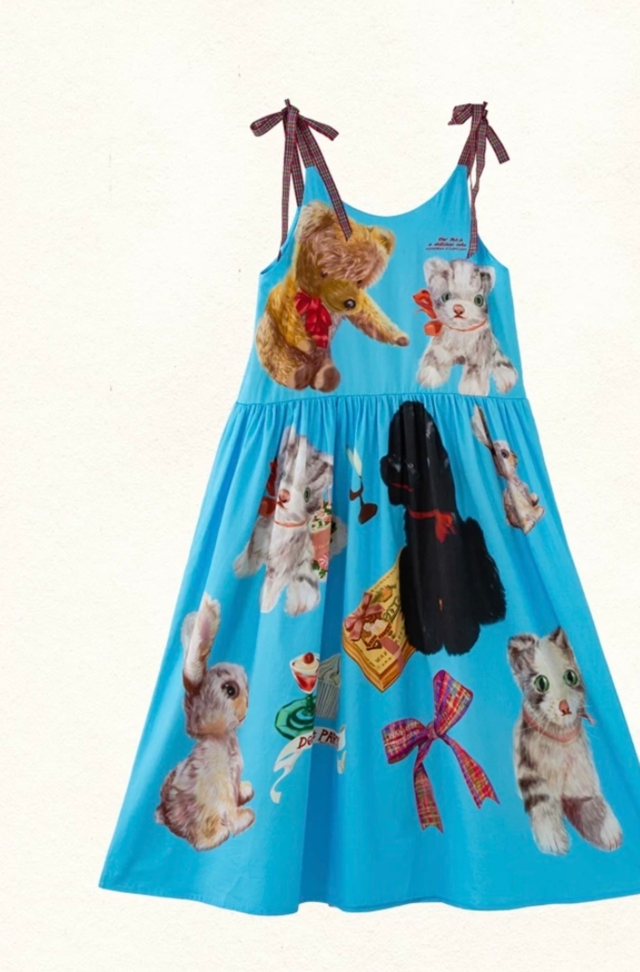くまさん うさぎ リボン 水色 ワンピース ぬいぐるみ ガーリー