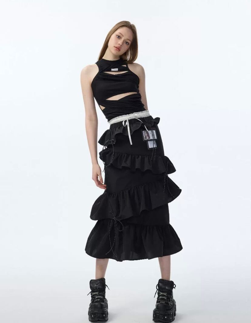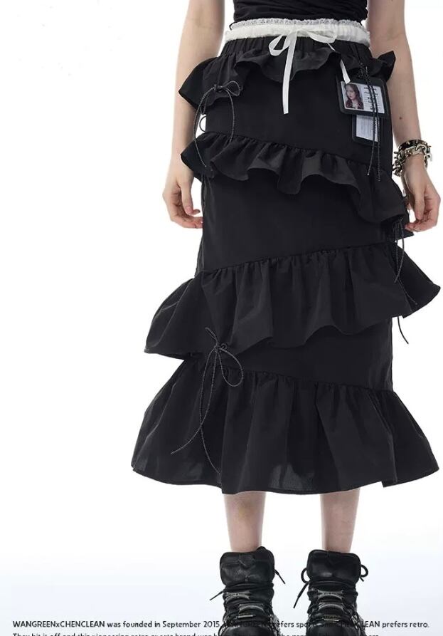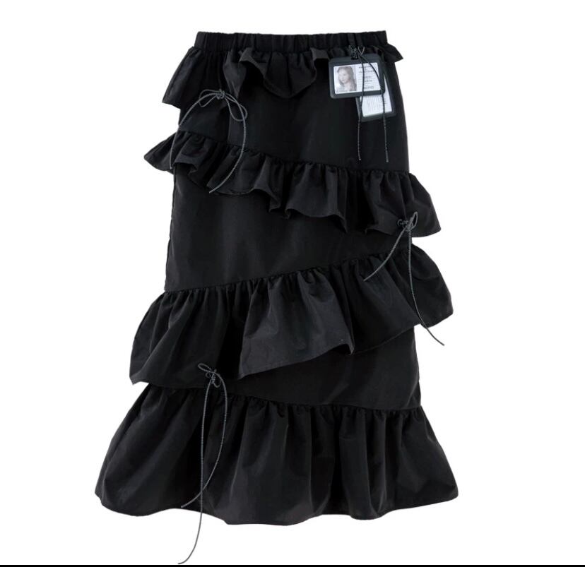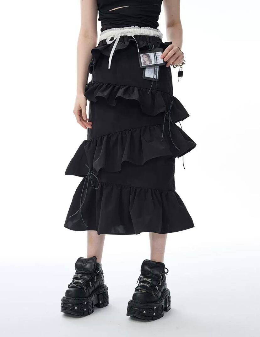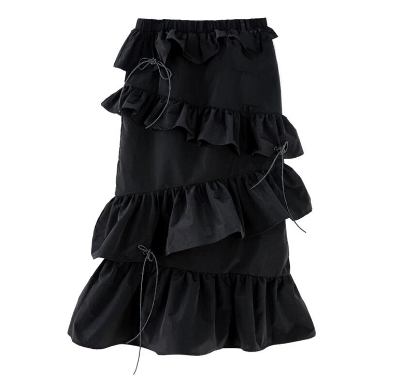 黒 カジュアル ボトムス フリル スカート ブラック