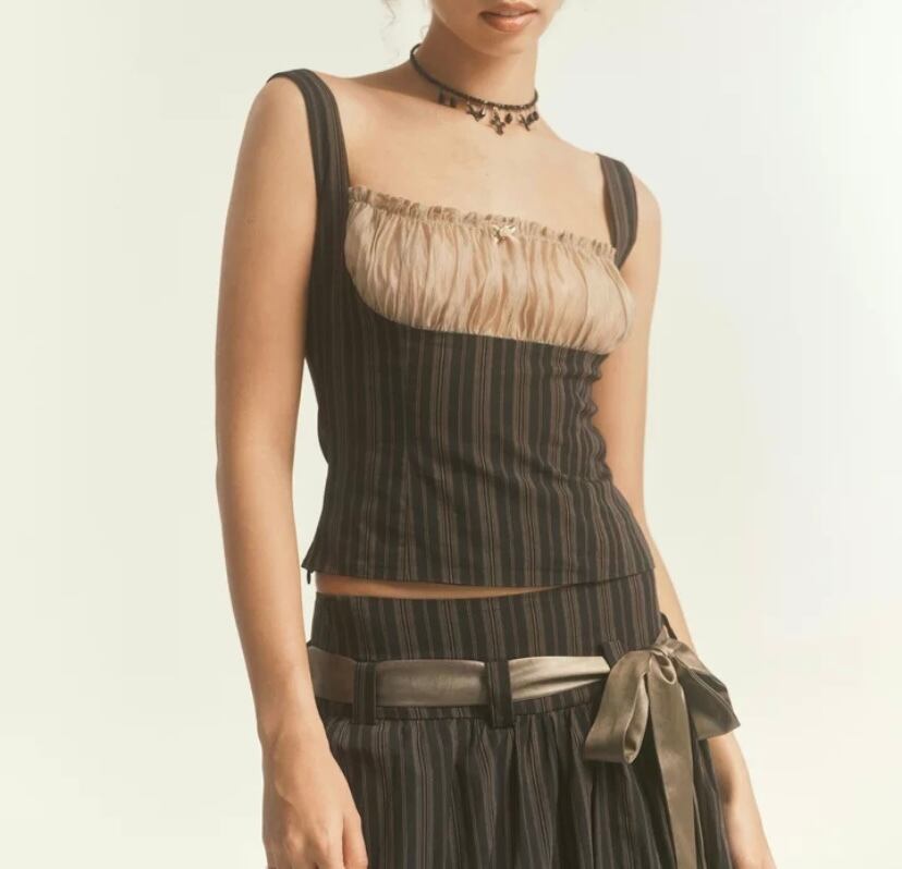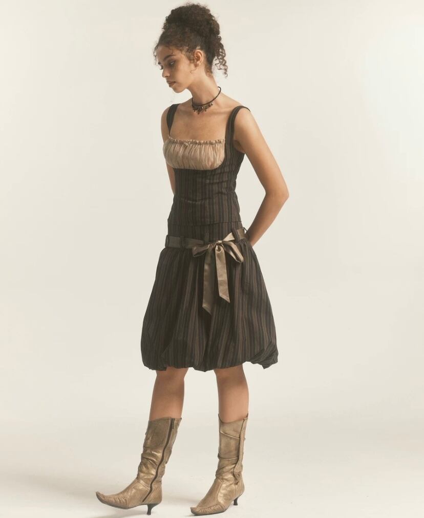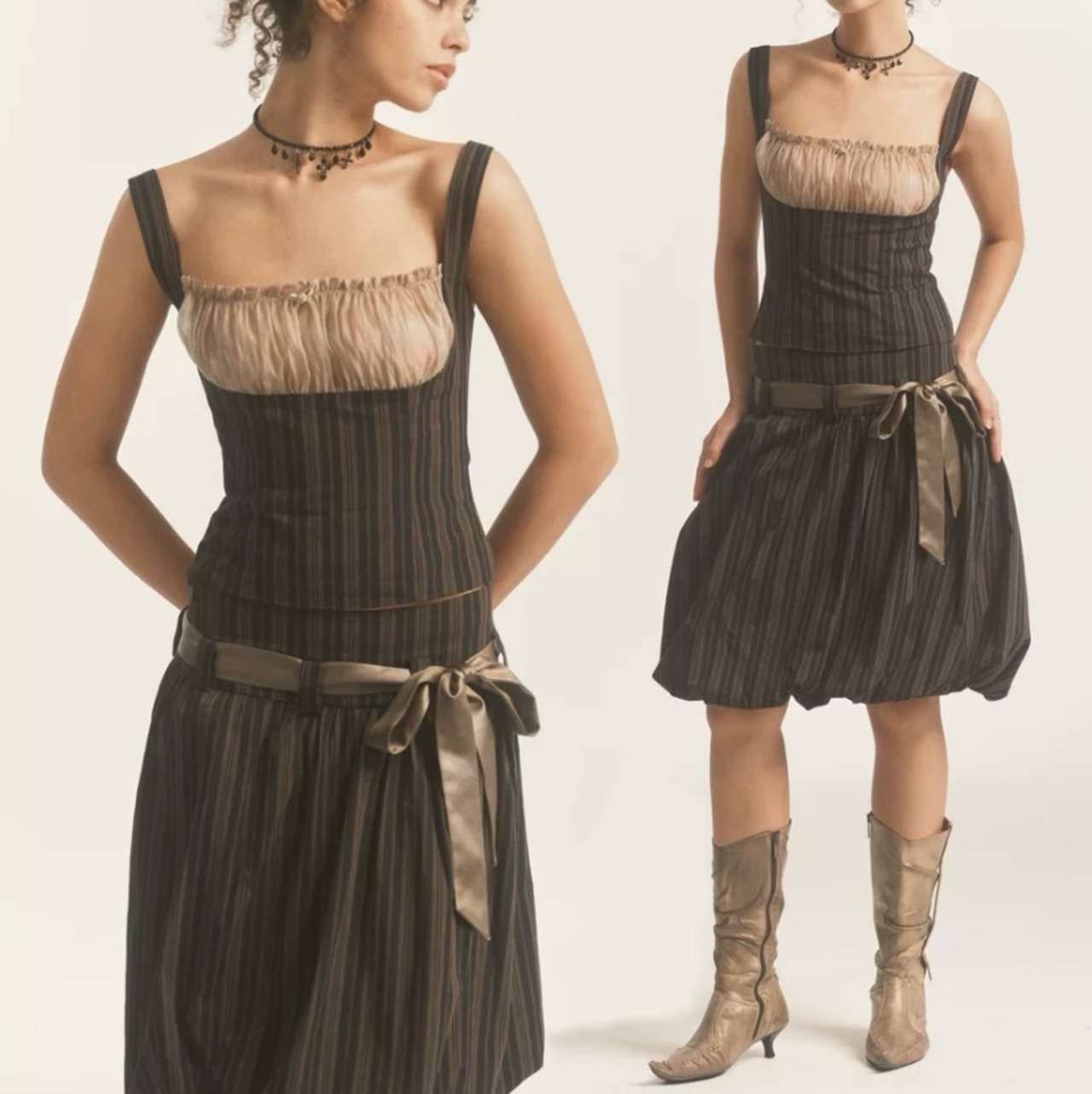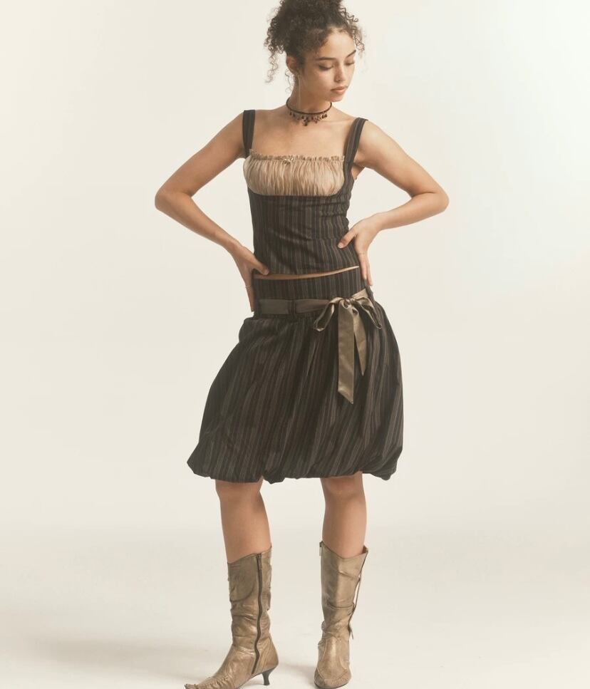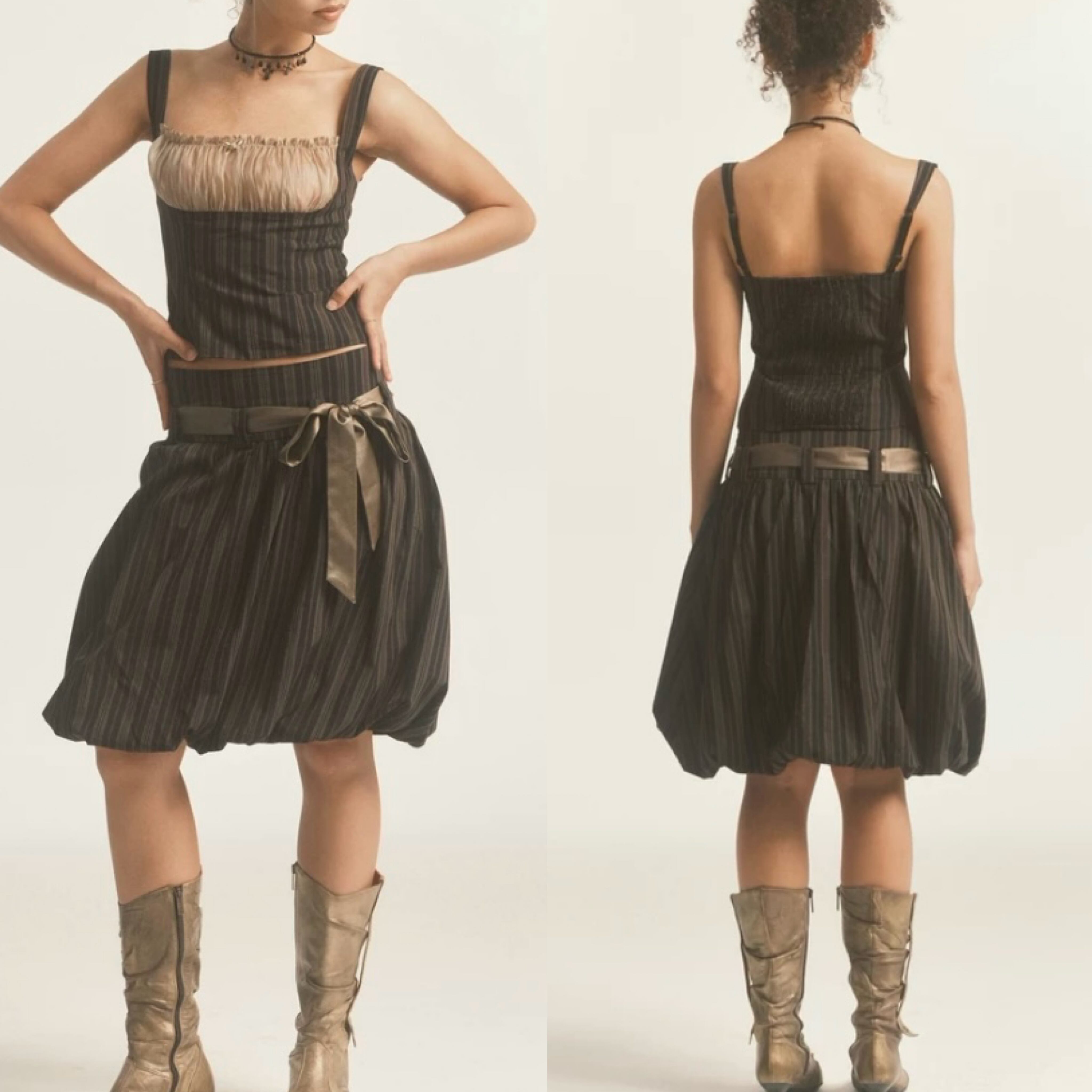 キャミソール 茶色 スカート リボン ボトムス セットアップ バルーン
