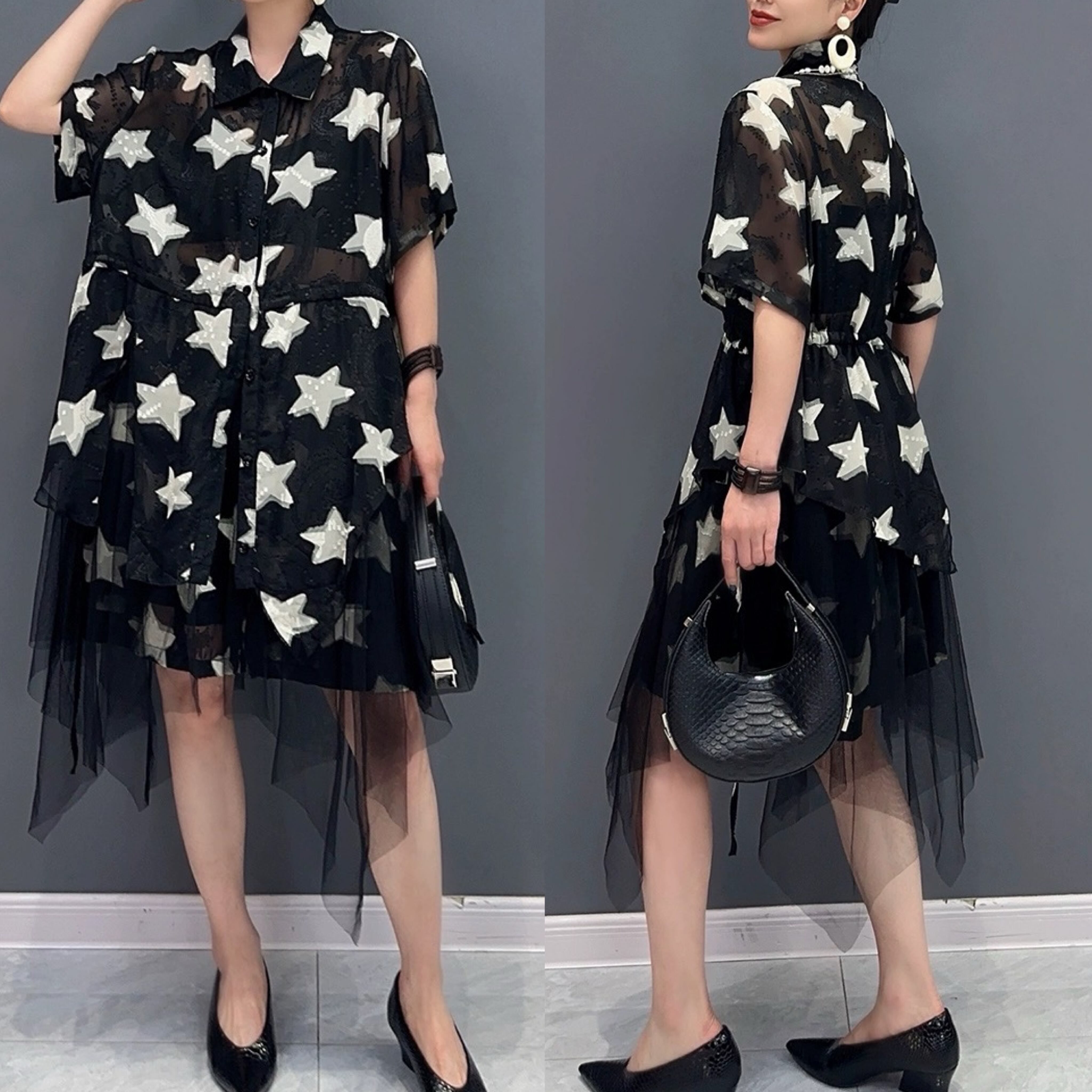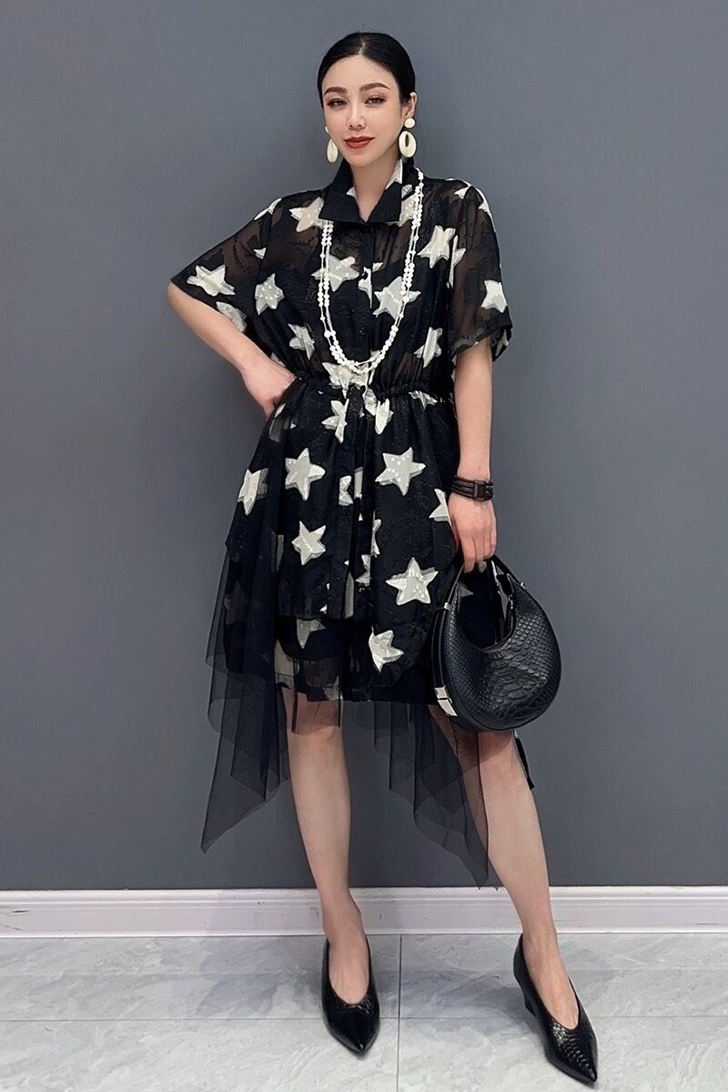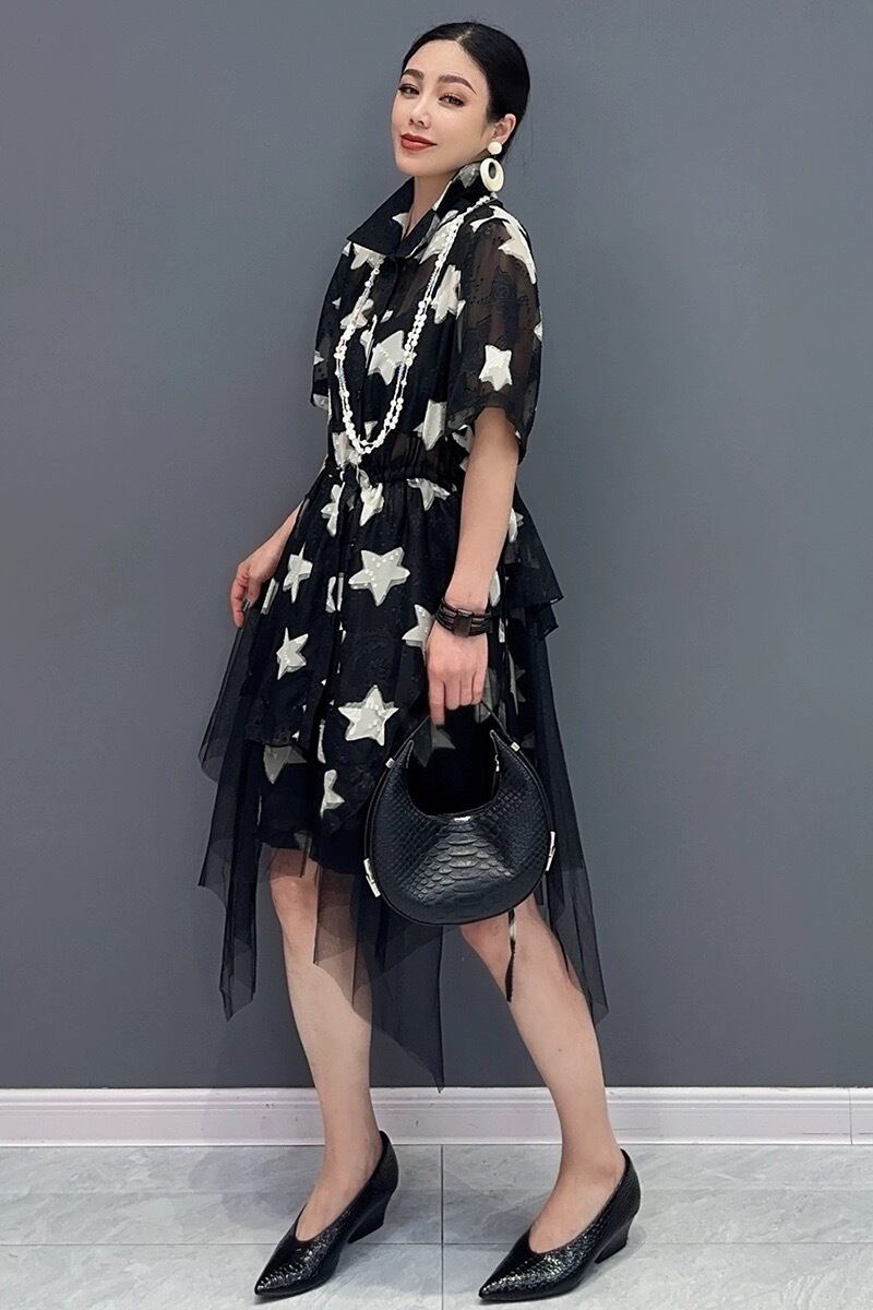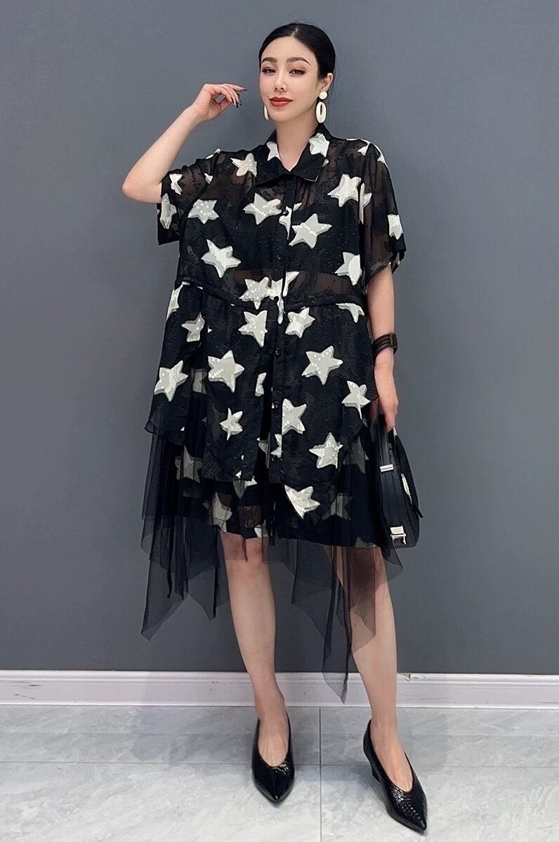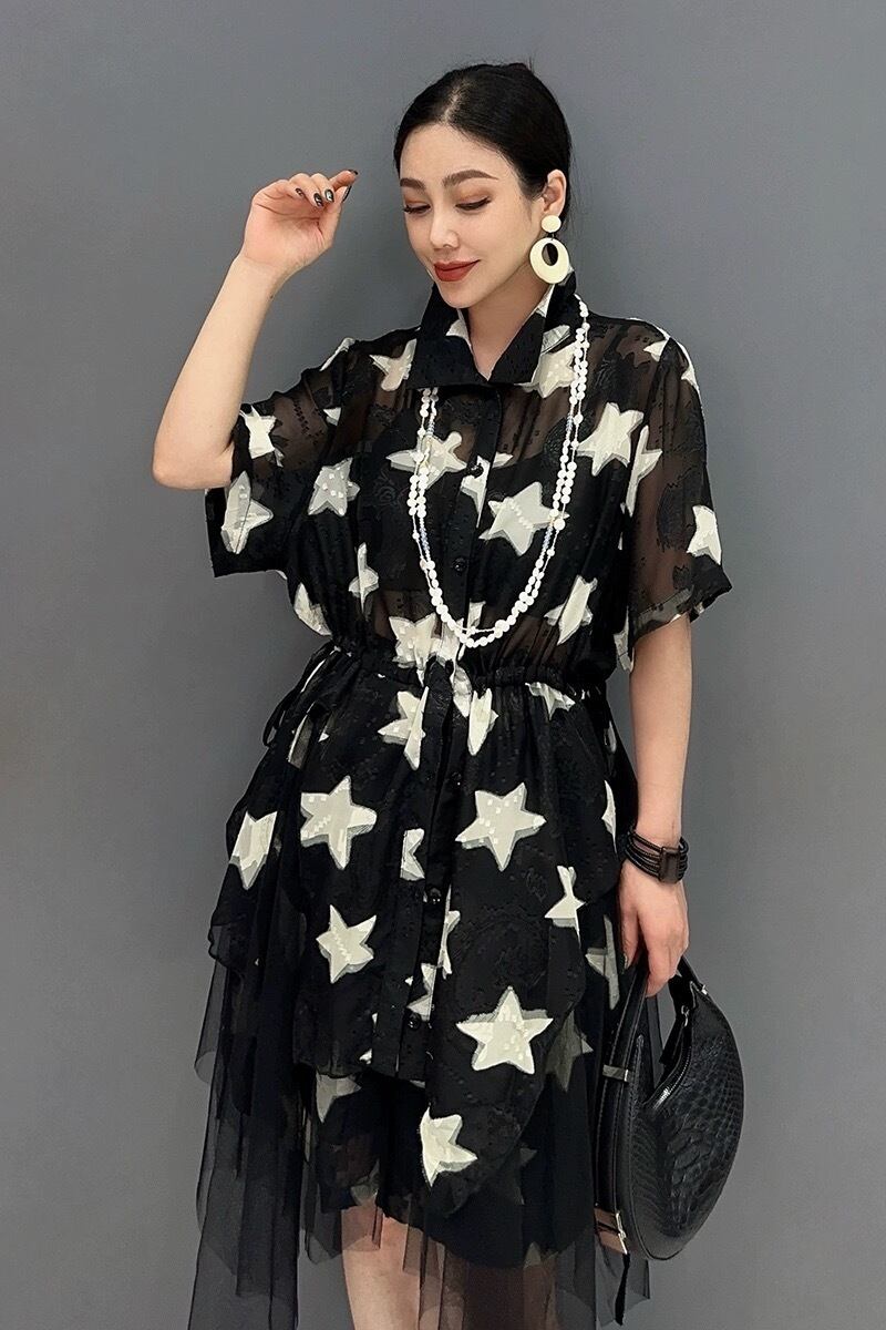 星 スター 黒 ブラック ワンピース ブラウス シャツ チュニック