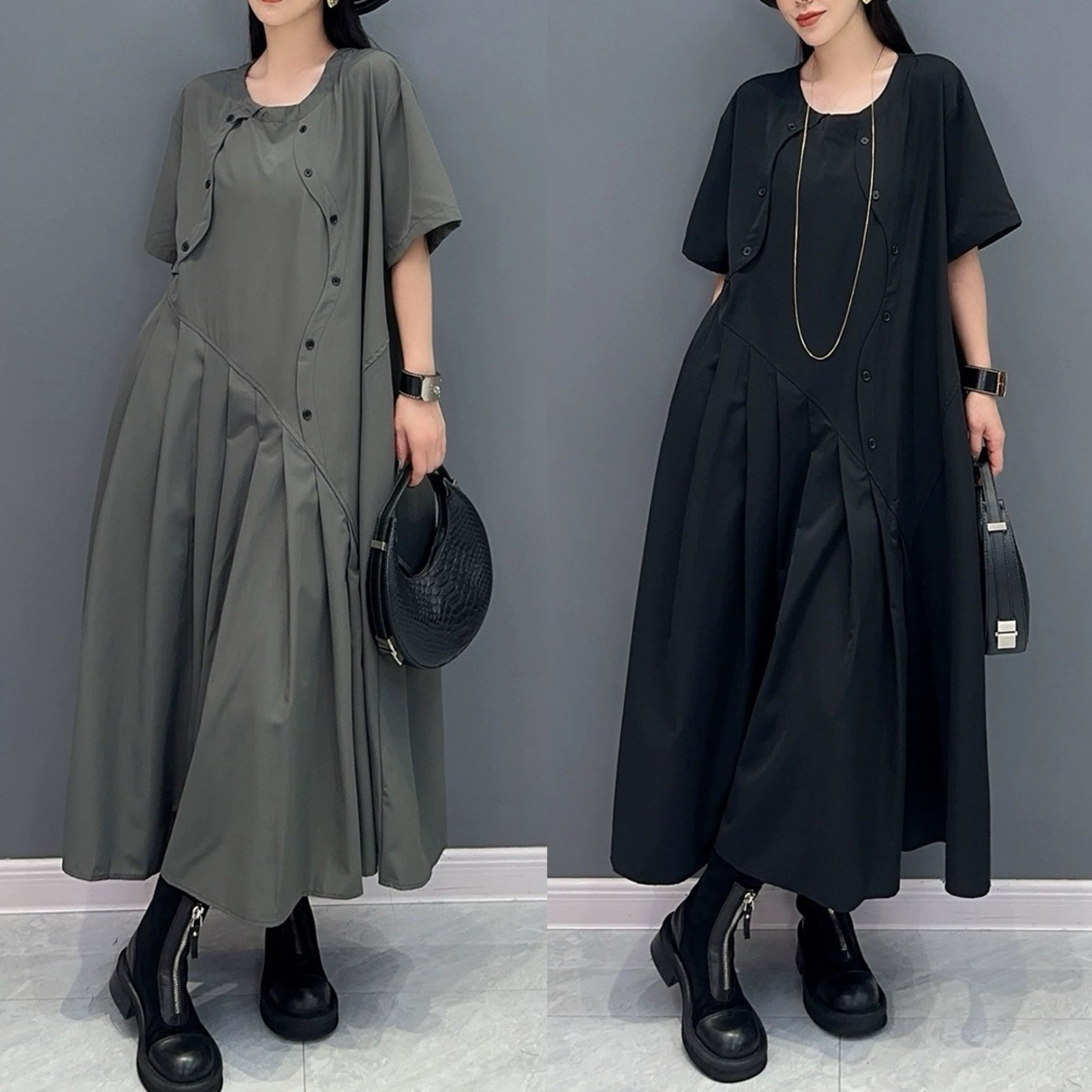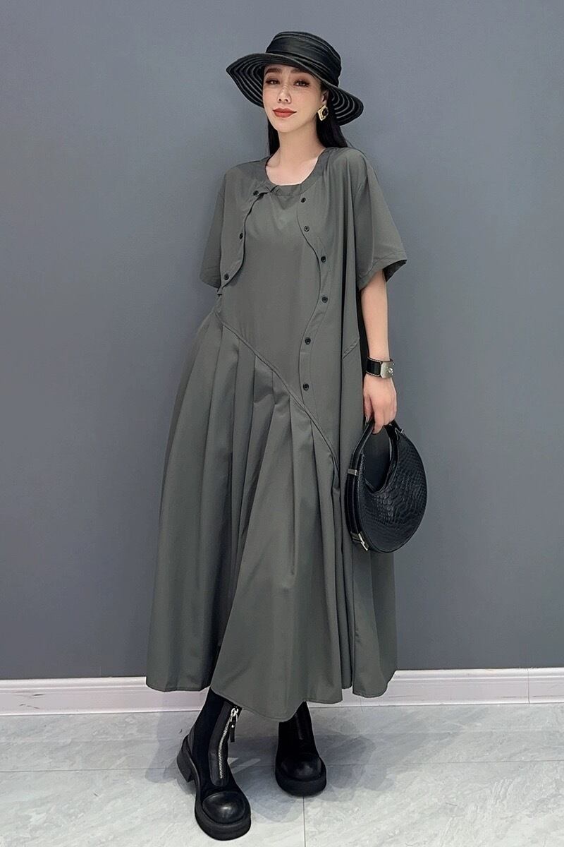 グレー 半袖 ブラウス ワンピース カジュアル ストリート