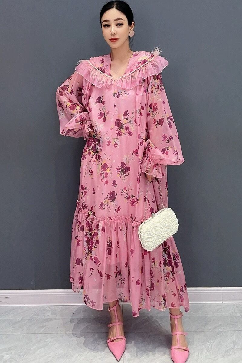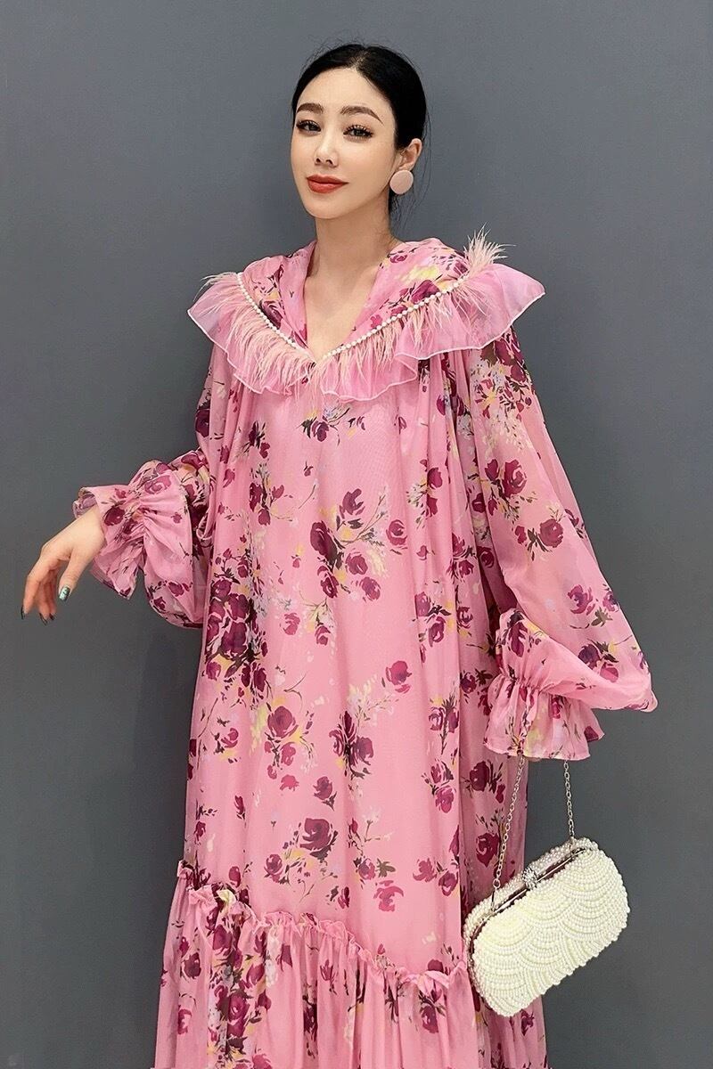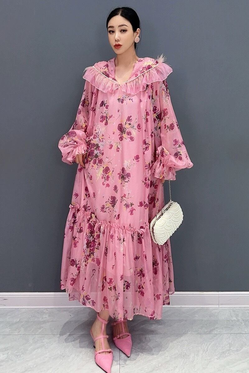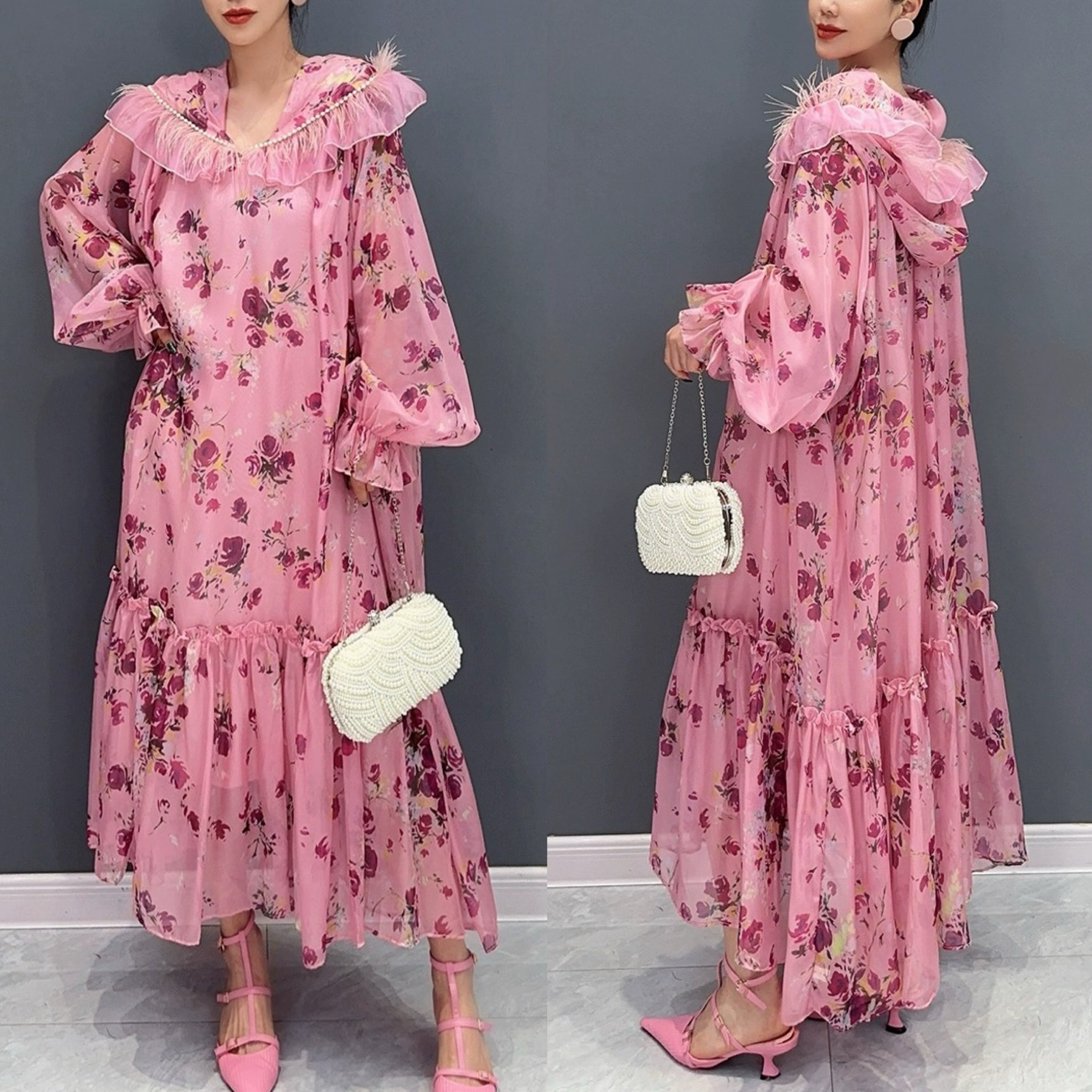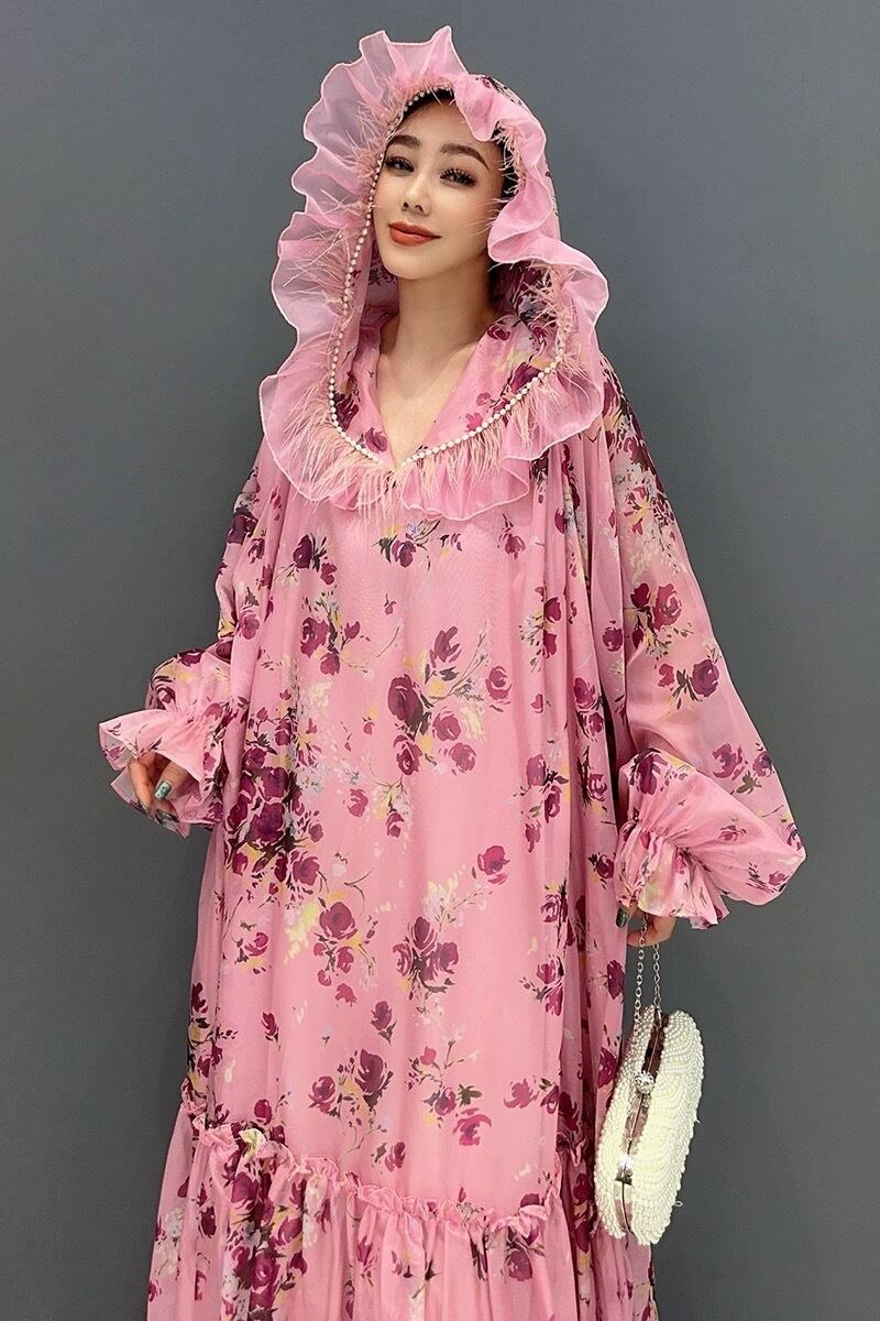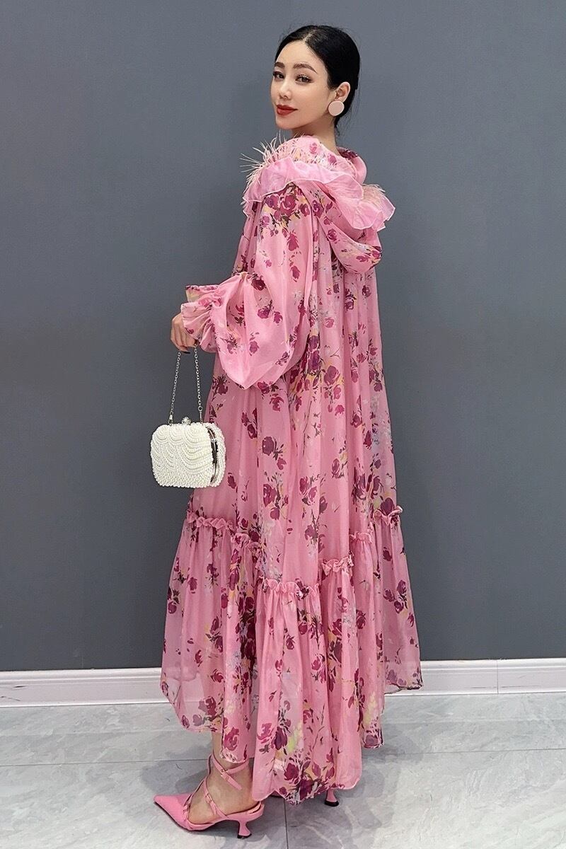 ピンク 花柄 パーカー フラワー ガーリー エレガント ワンピース フード