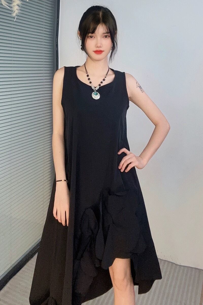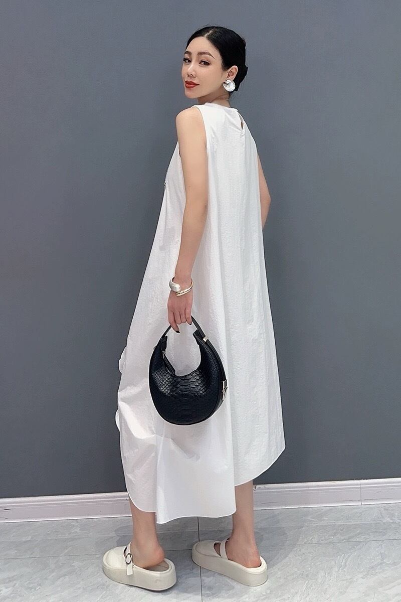 黒 白 ノースリーブ シンプル ワンピース シャツ カジュアル