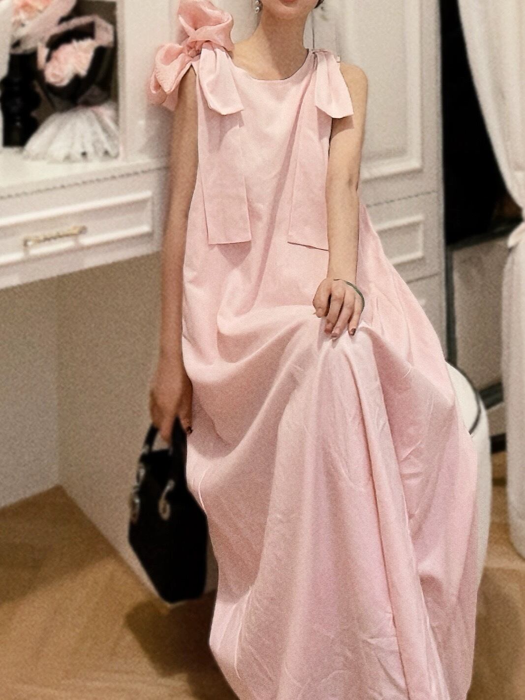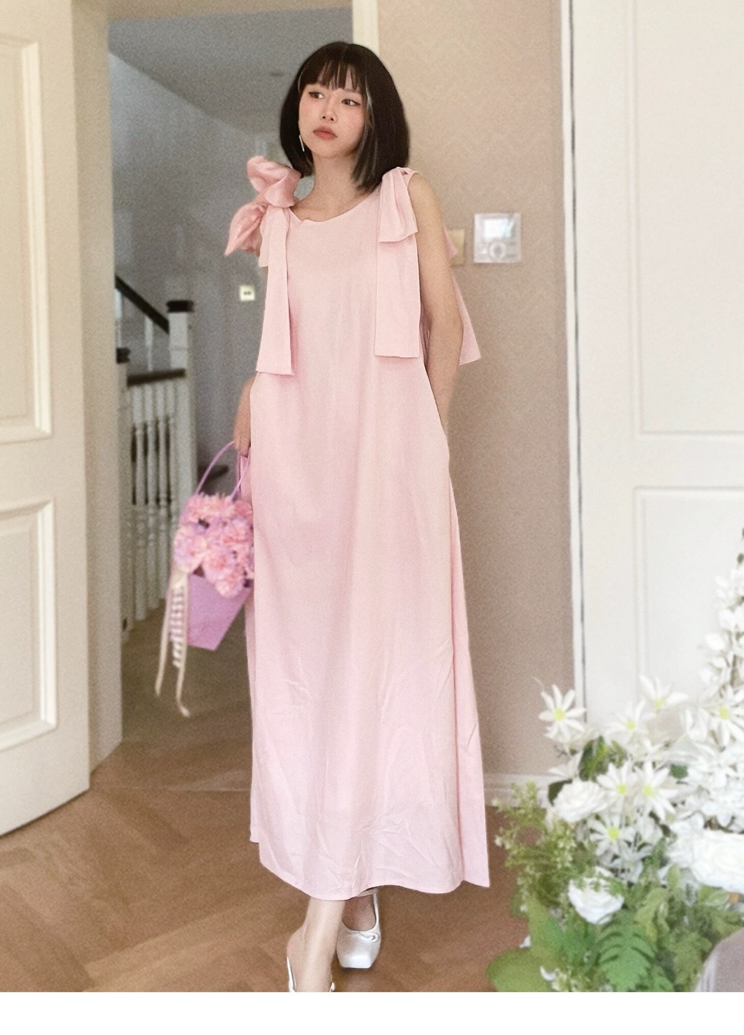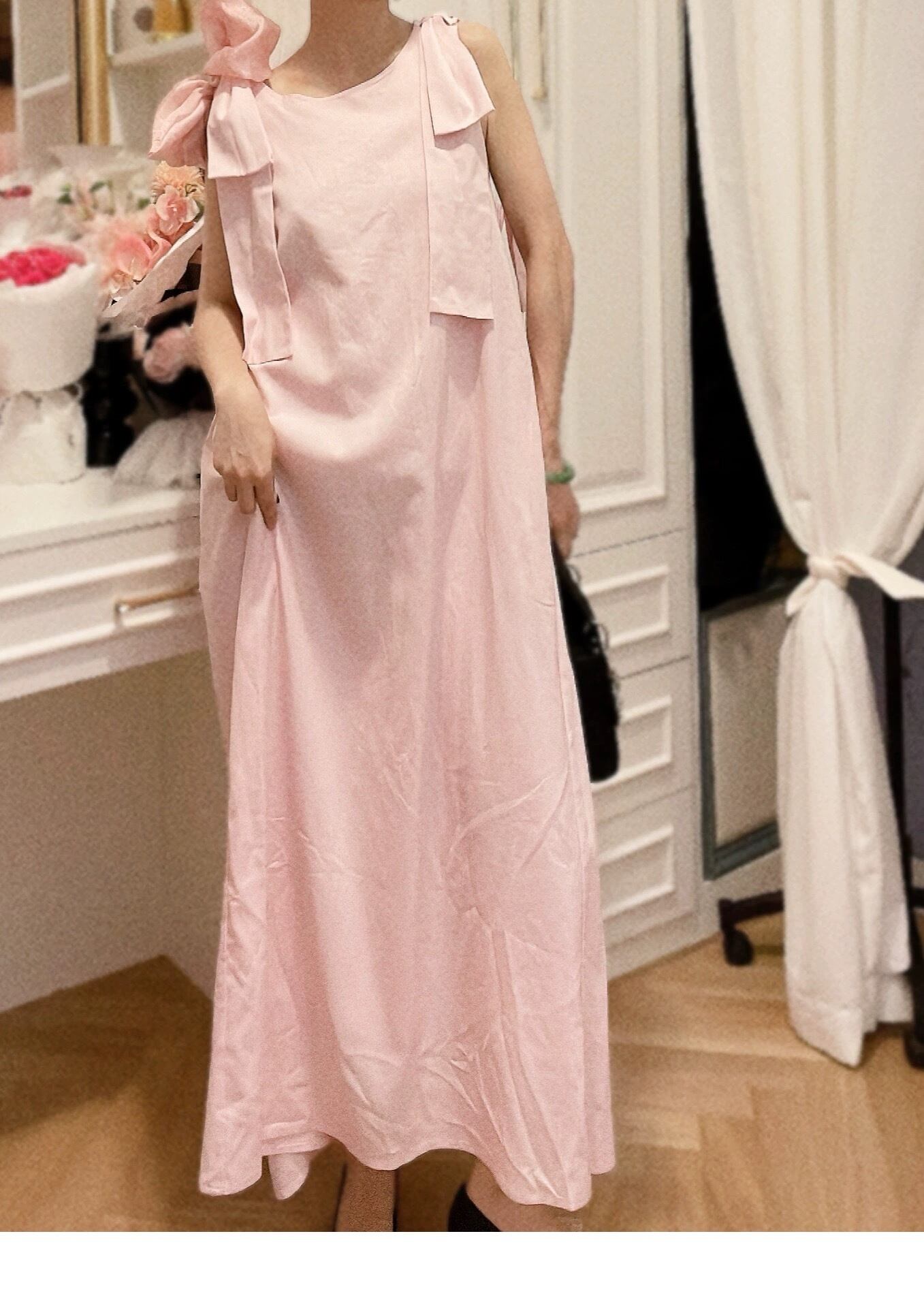 マキシ ロング リボン ワンピース ガーリー かわいい シンプル ドレス キャミソール