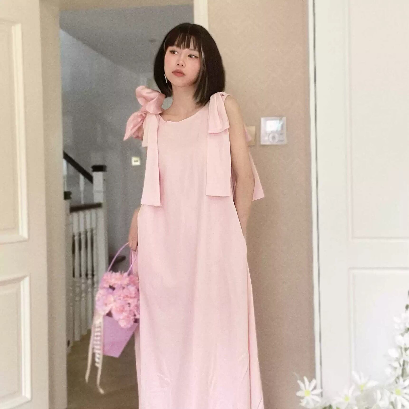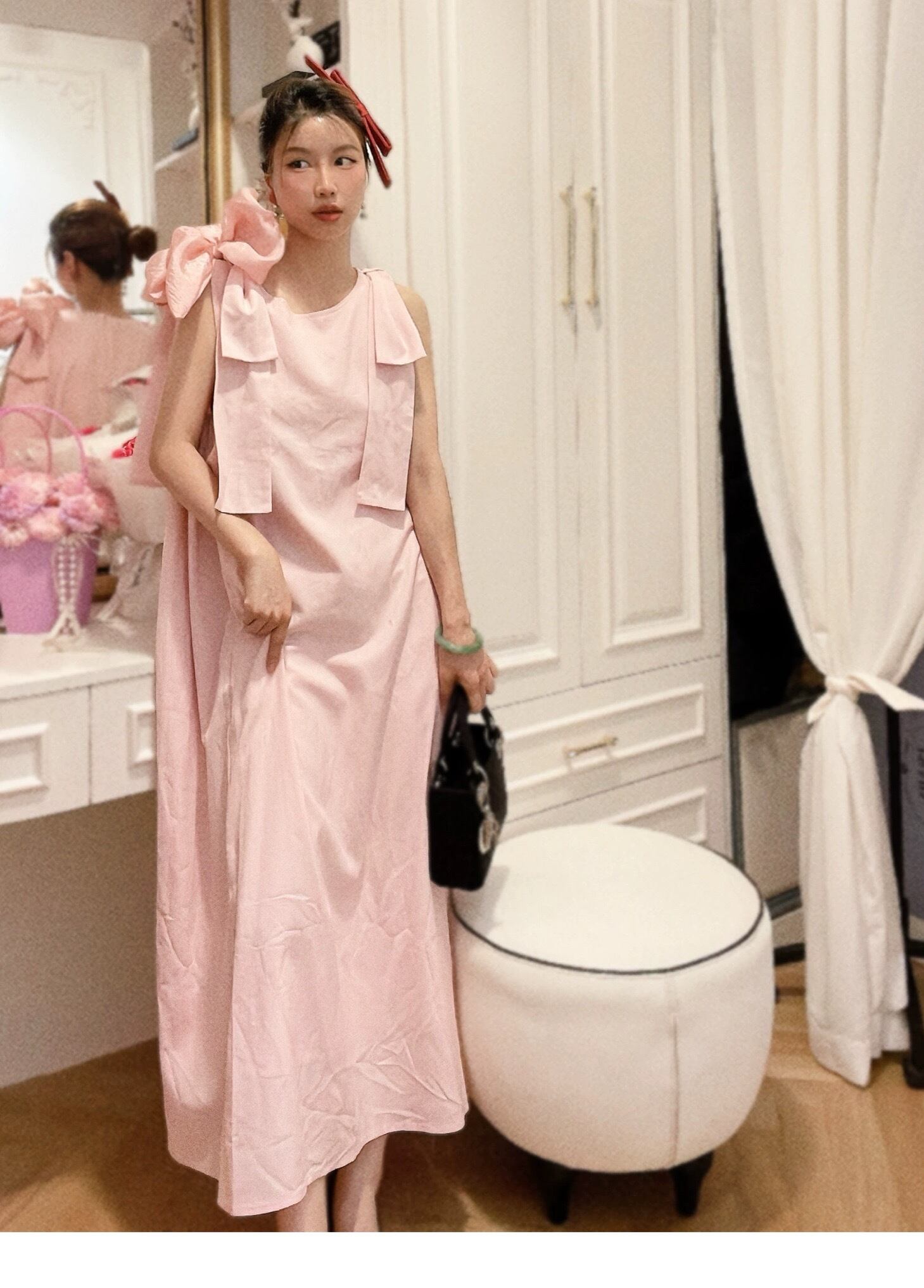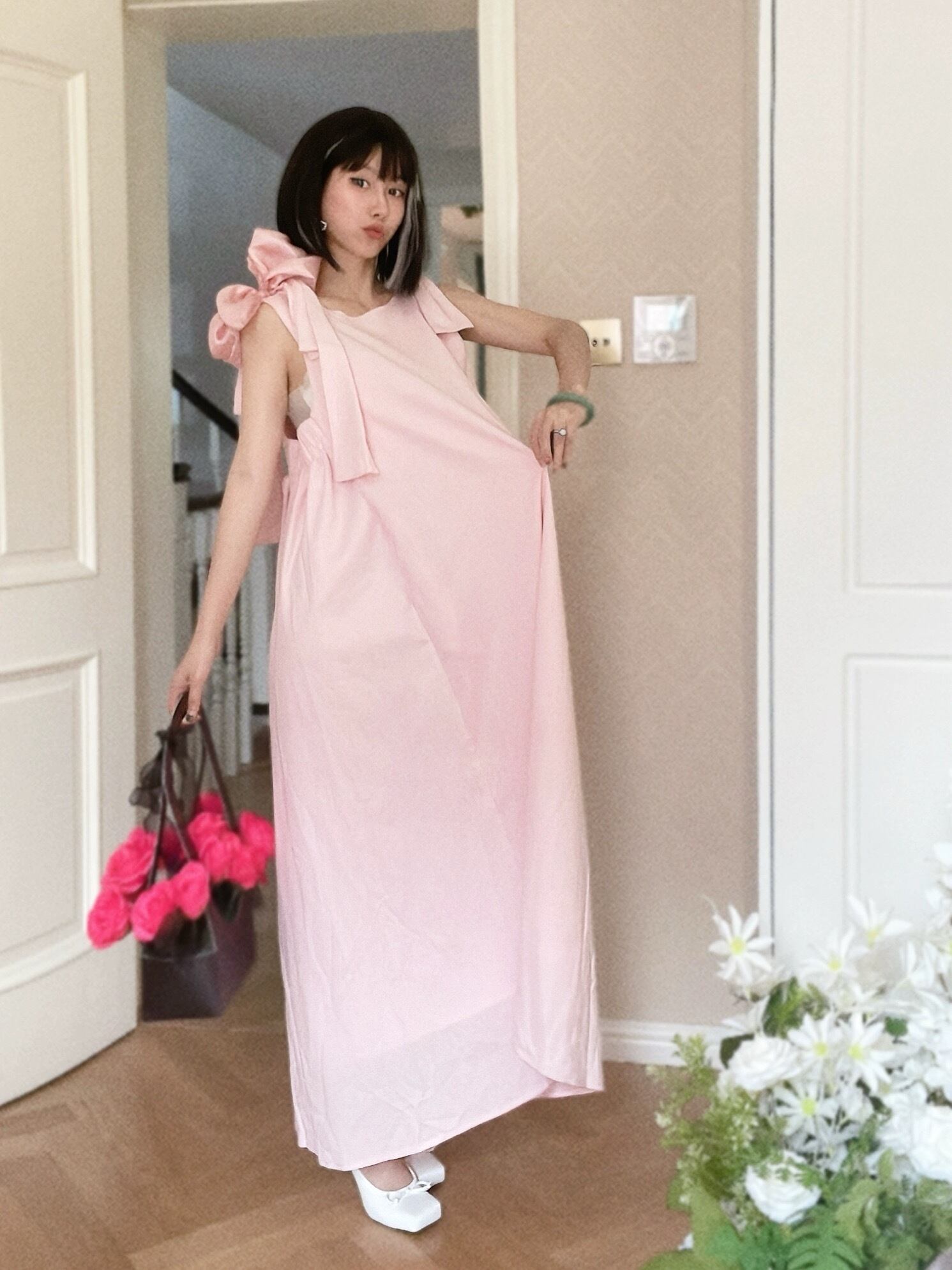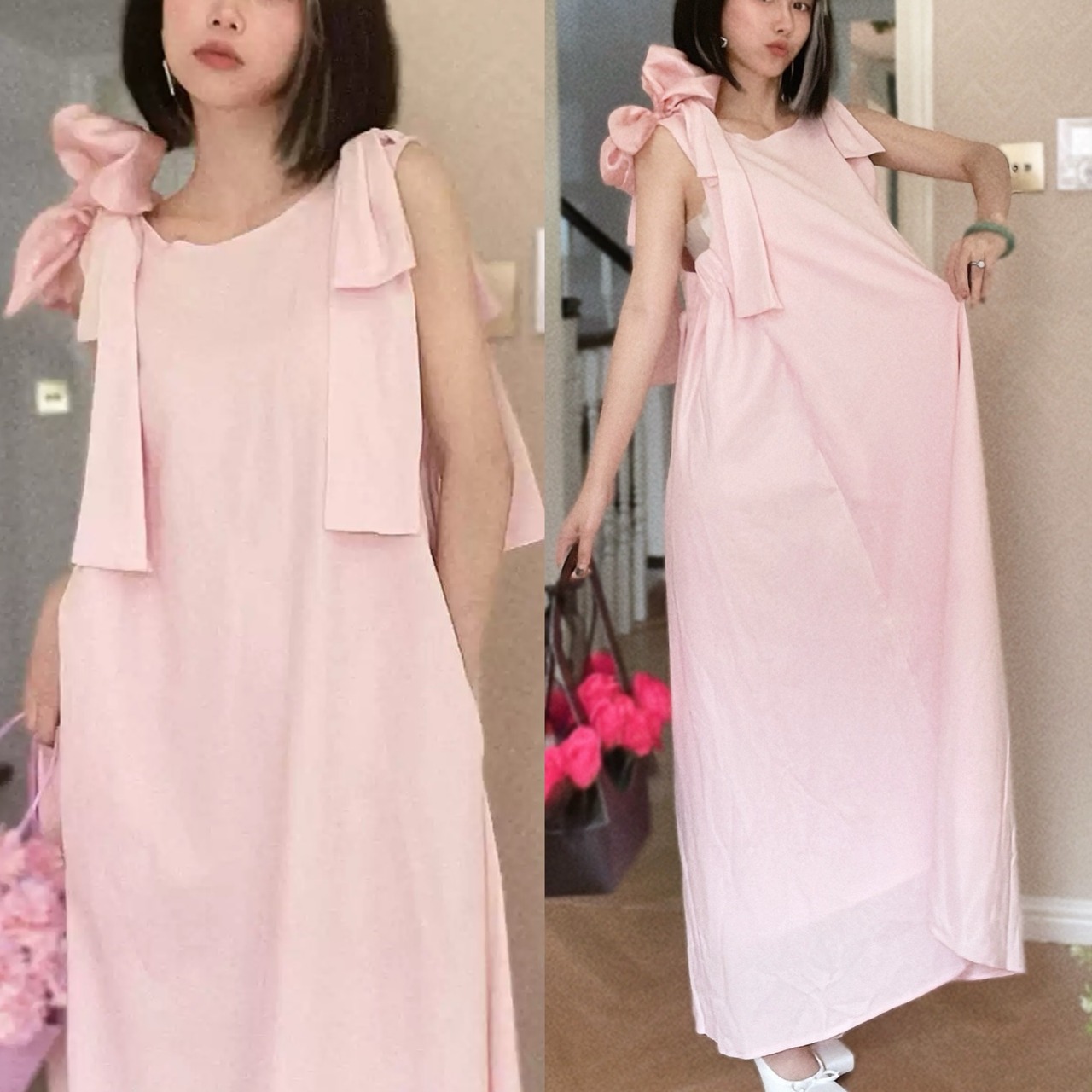 マキシ ロング リボン ワンピース ガーリー かわいい シンプル ドレス キャミソール