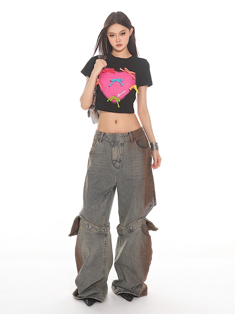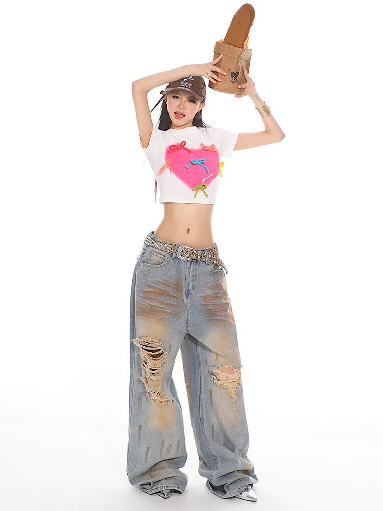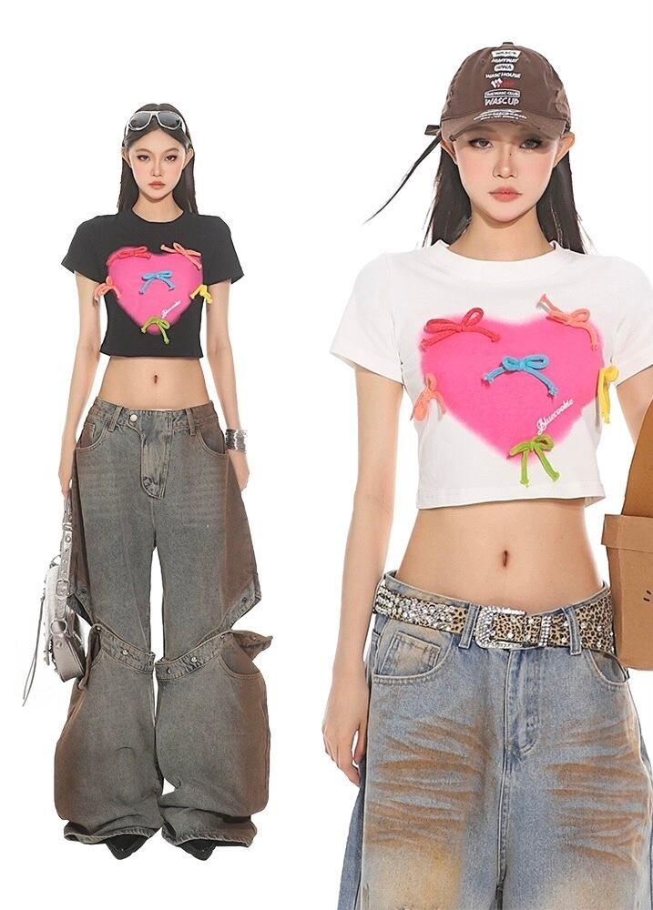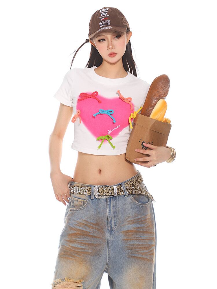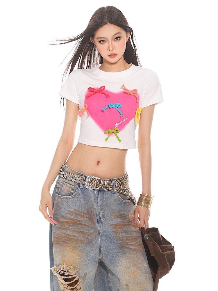 白 黒 カラフル リボン Tシャツ トップス ガーリー カジュアル