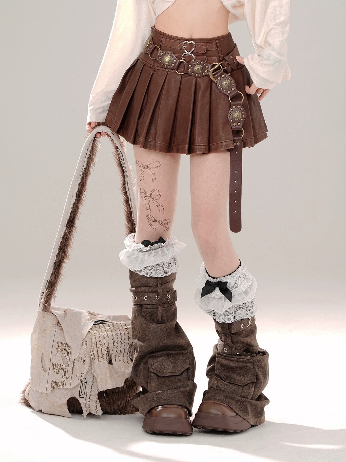 黒 茶色 ミニスカート PU プリーツスカート ガーリー かわいい 原宿