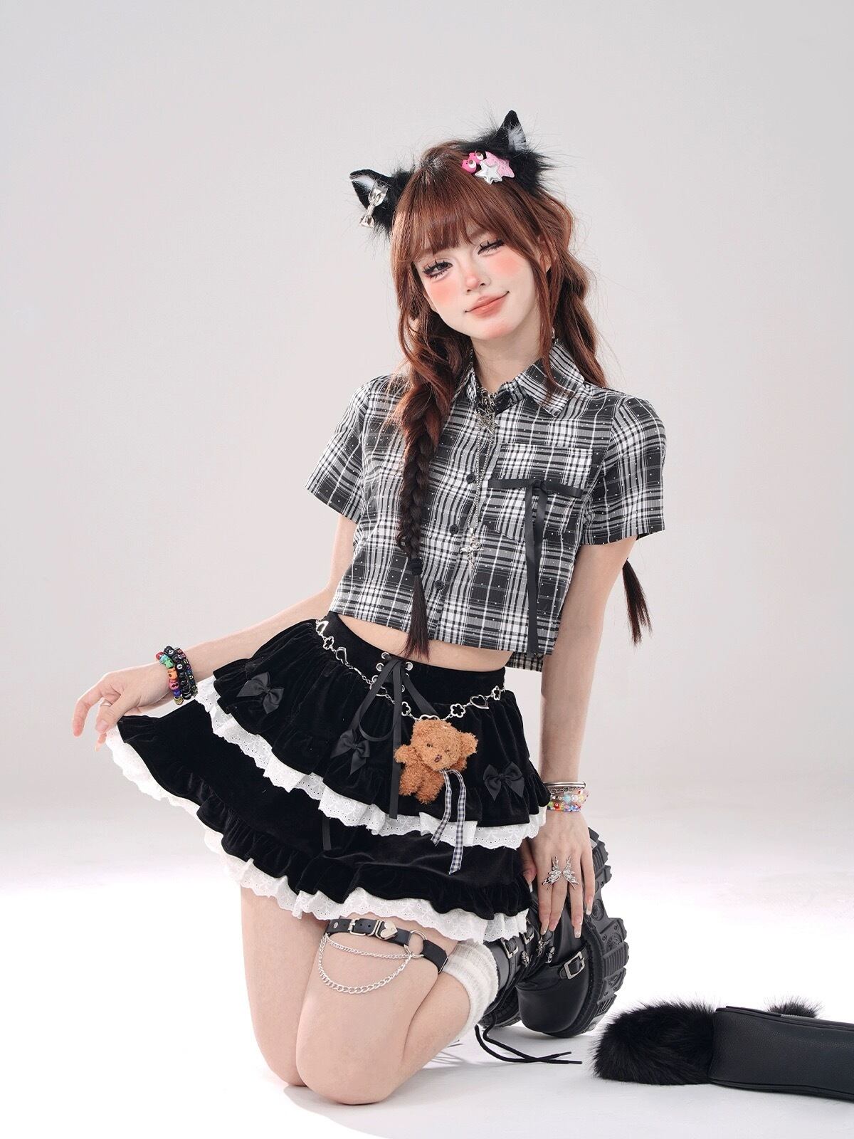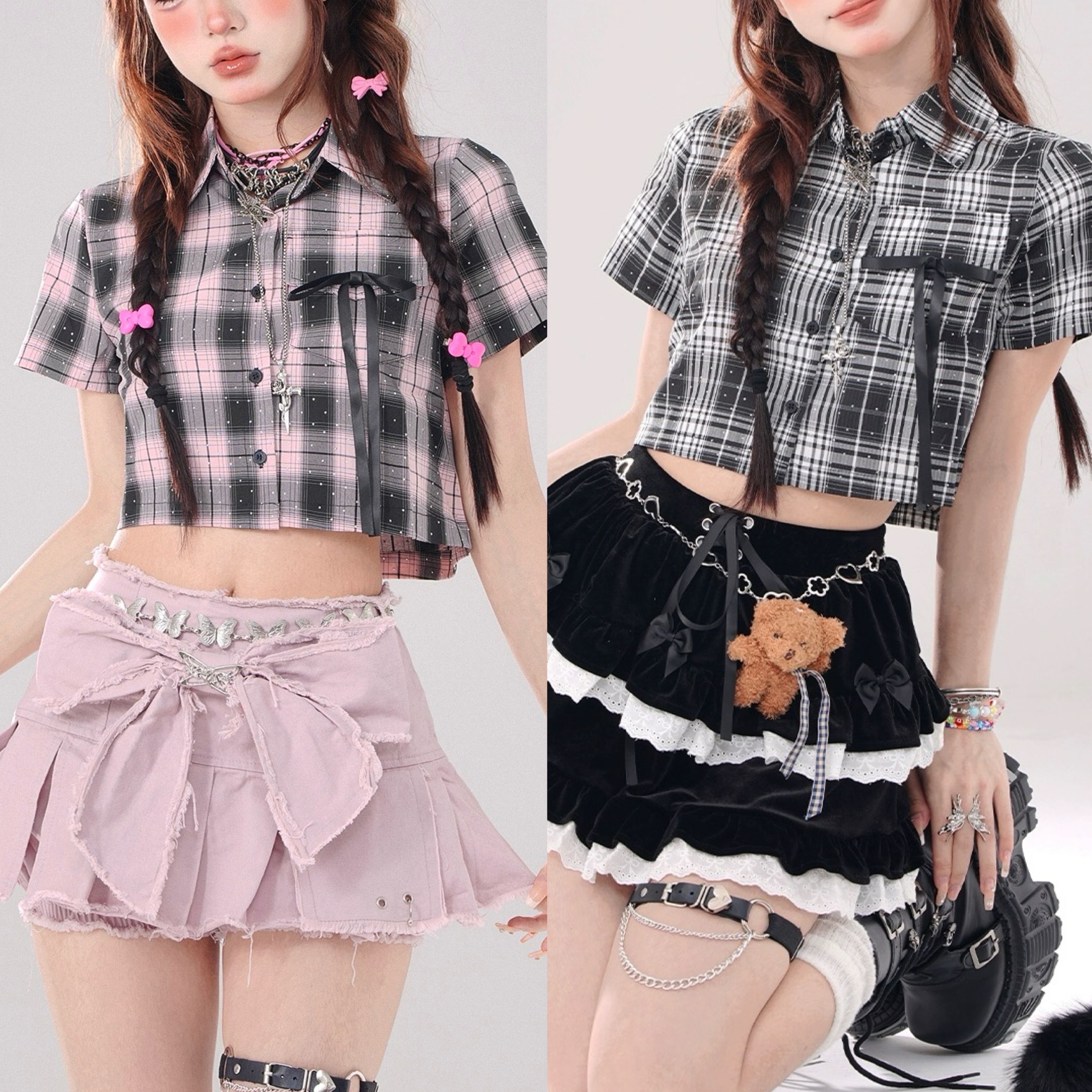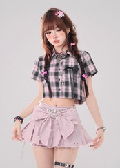 チェック ガーリー ブラウス かわいい ミニ シャツ トップス