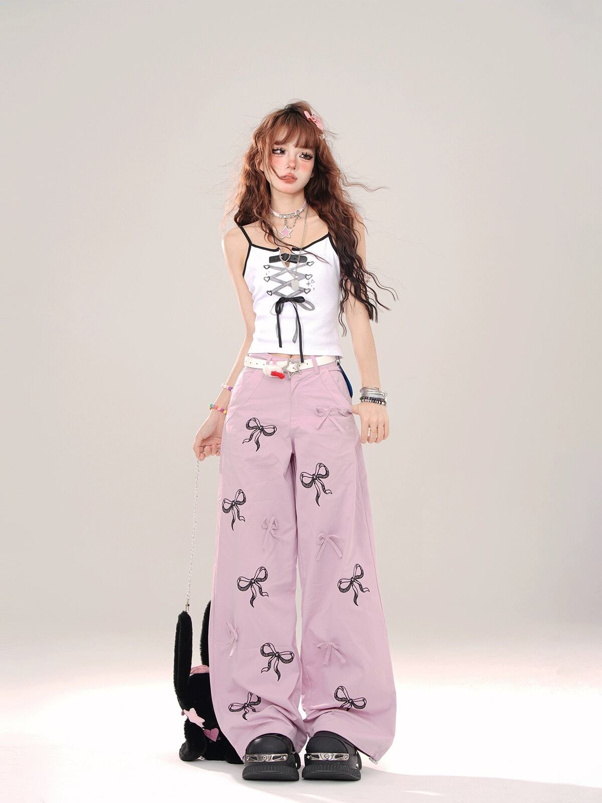 キャミソール リボン 白 ピンク 黒 ガーリー トップス ブラウス かわいい ハート