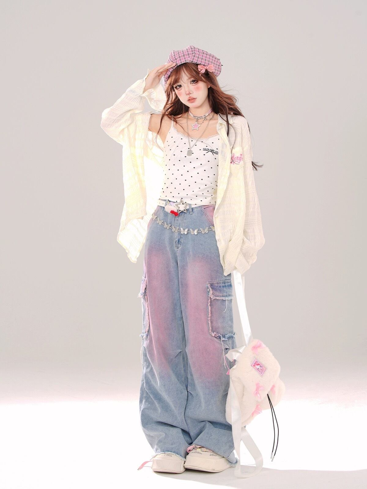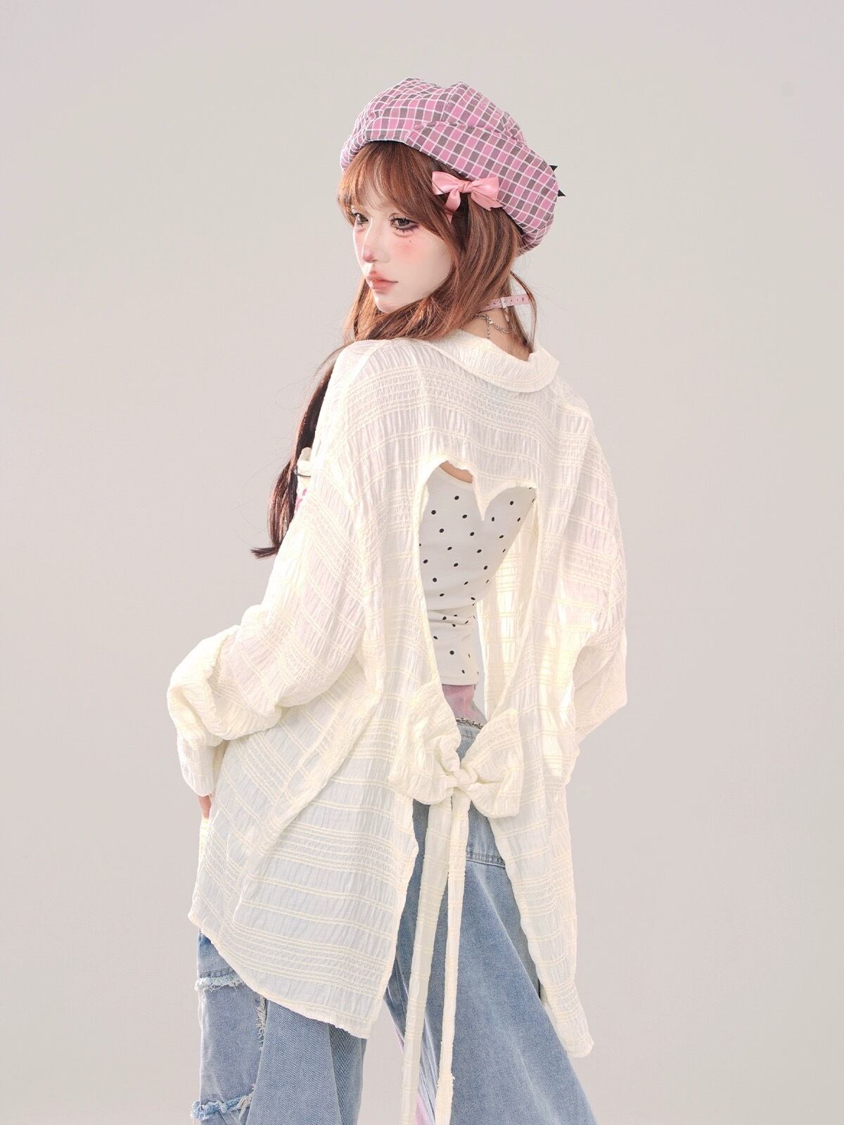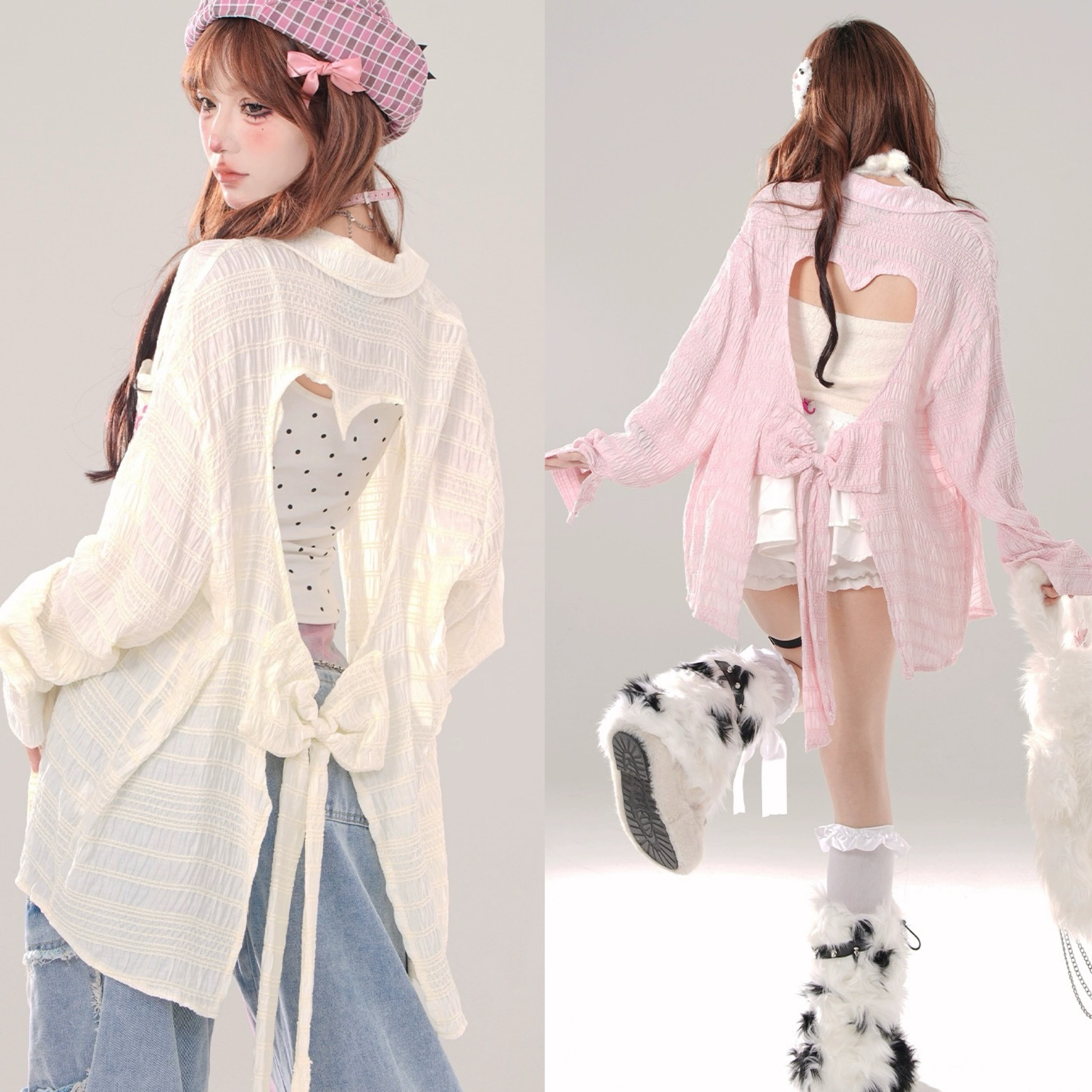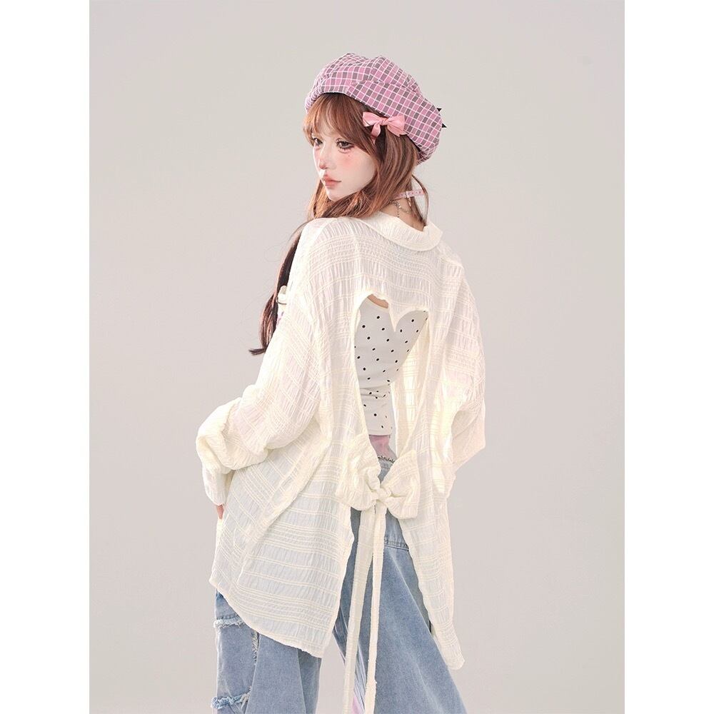ハート ブラウス 白 リボン ガーリー かわいい トップス