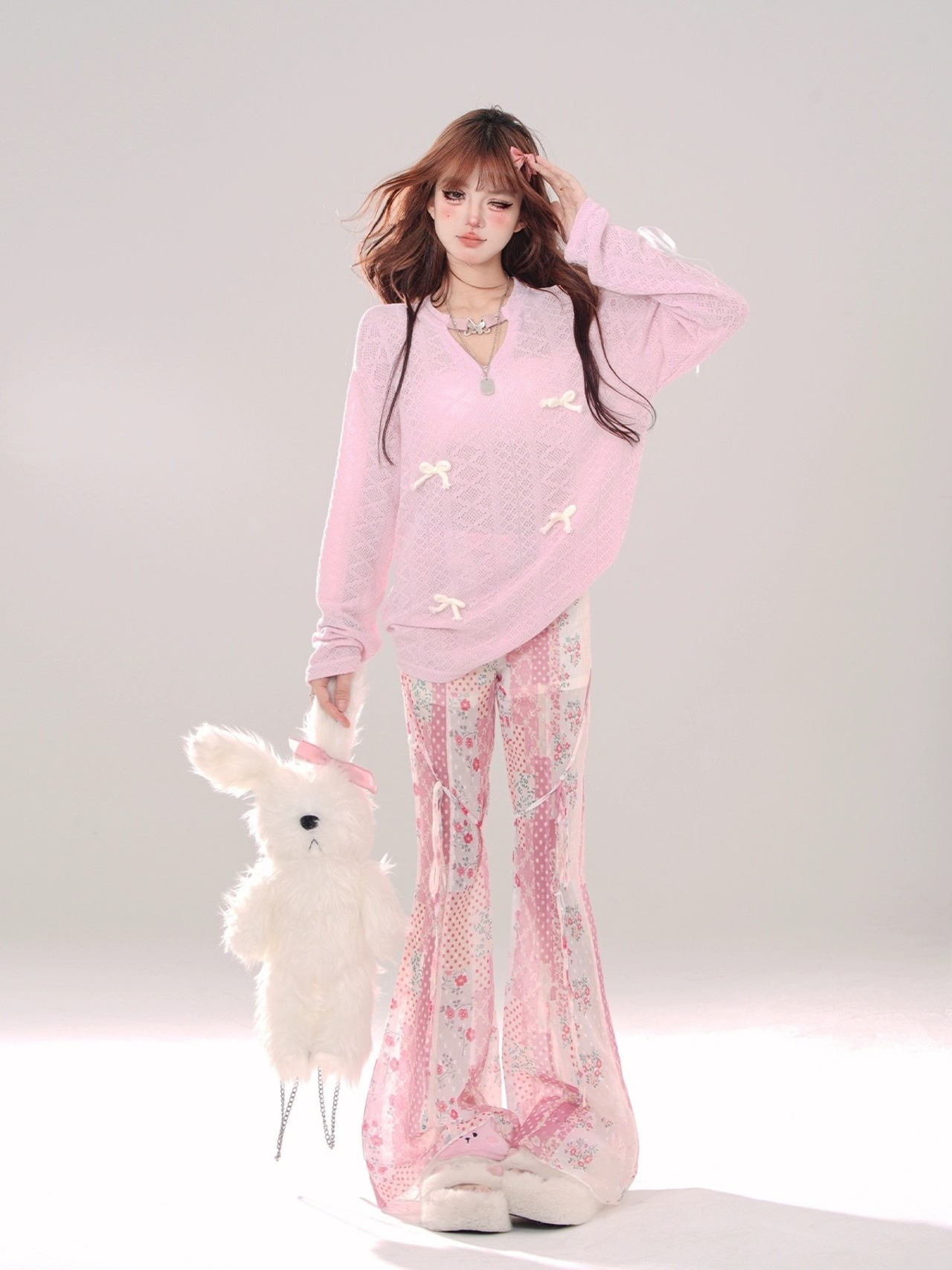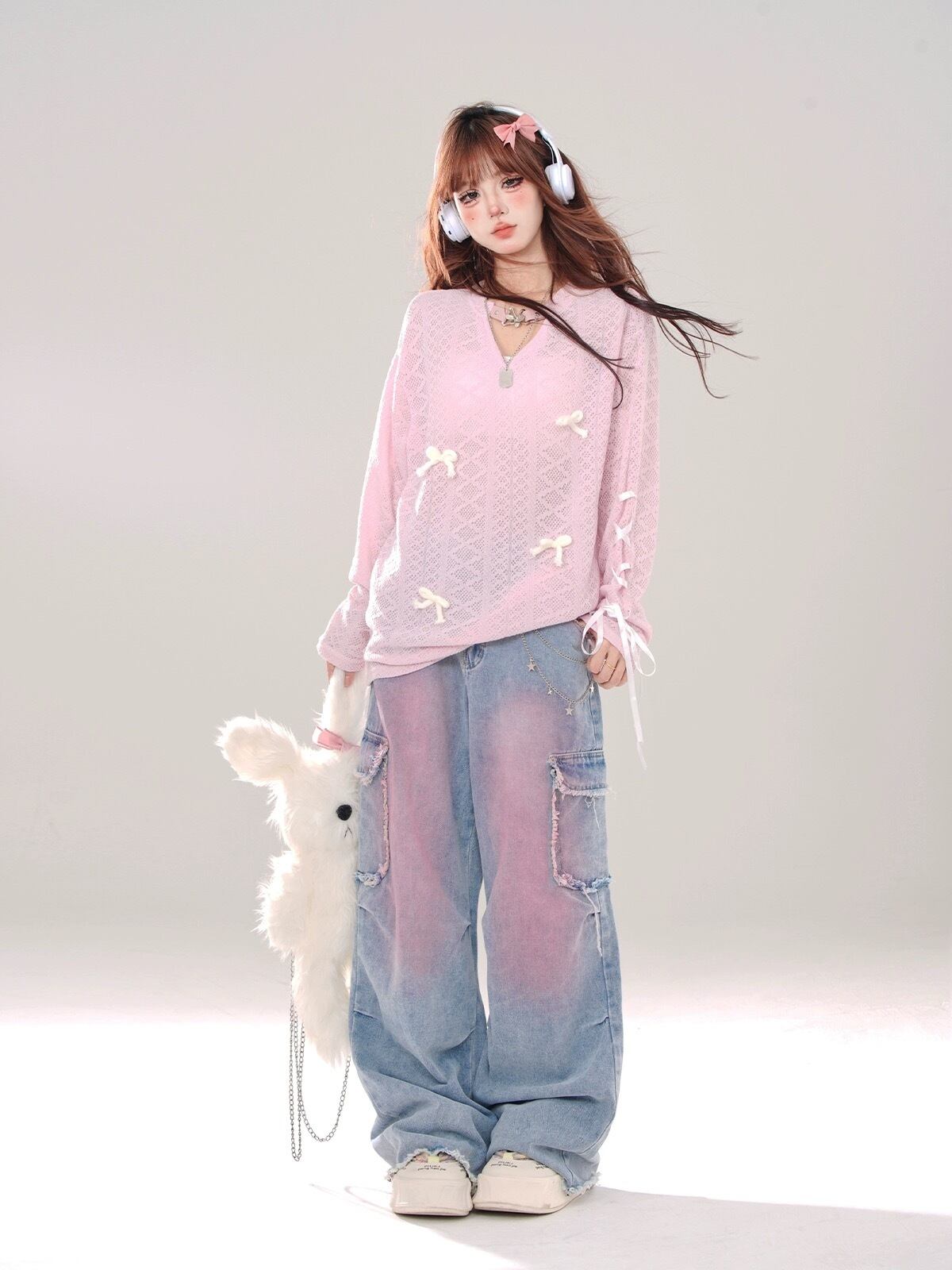 リボン カジュアル かわいい リボン ニット セーター ブラウス