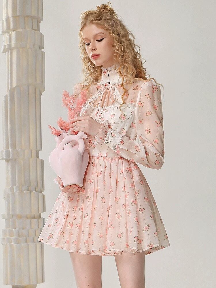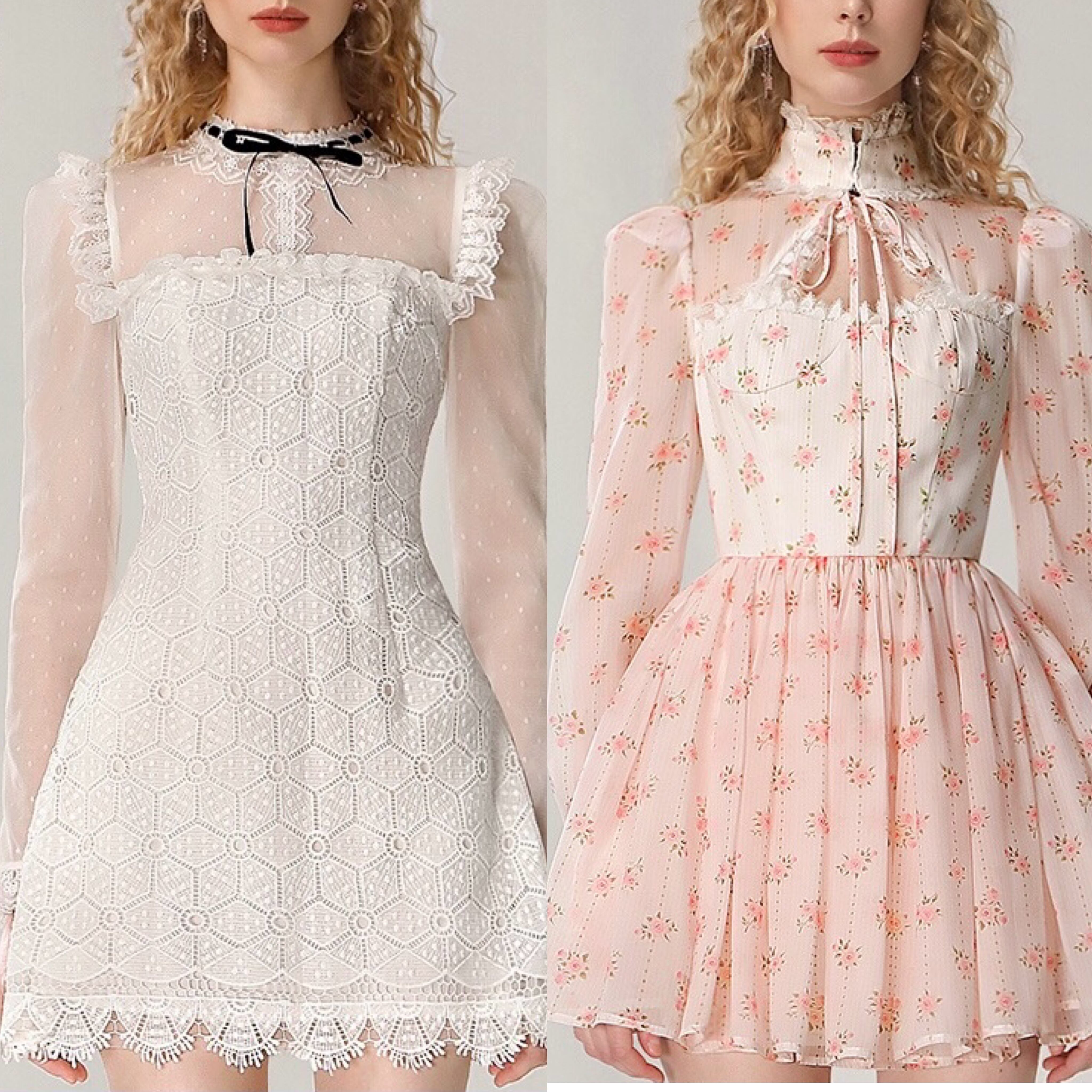 白 オレンジ 花柄 フラワー ブラウス ワンピース お嬢様