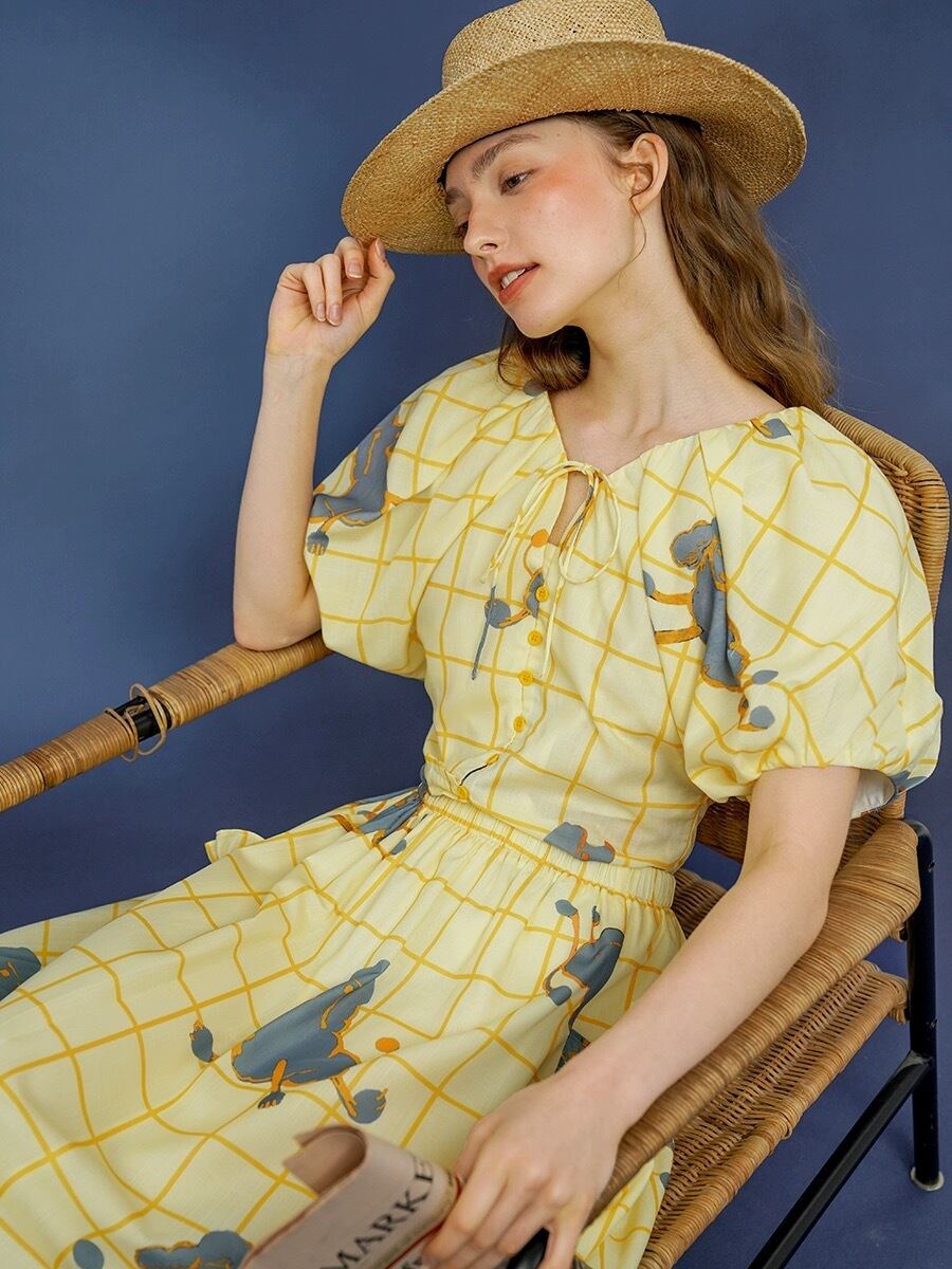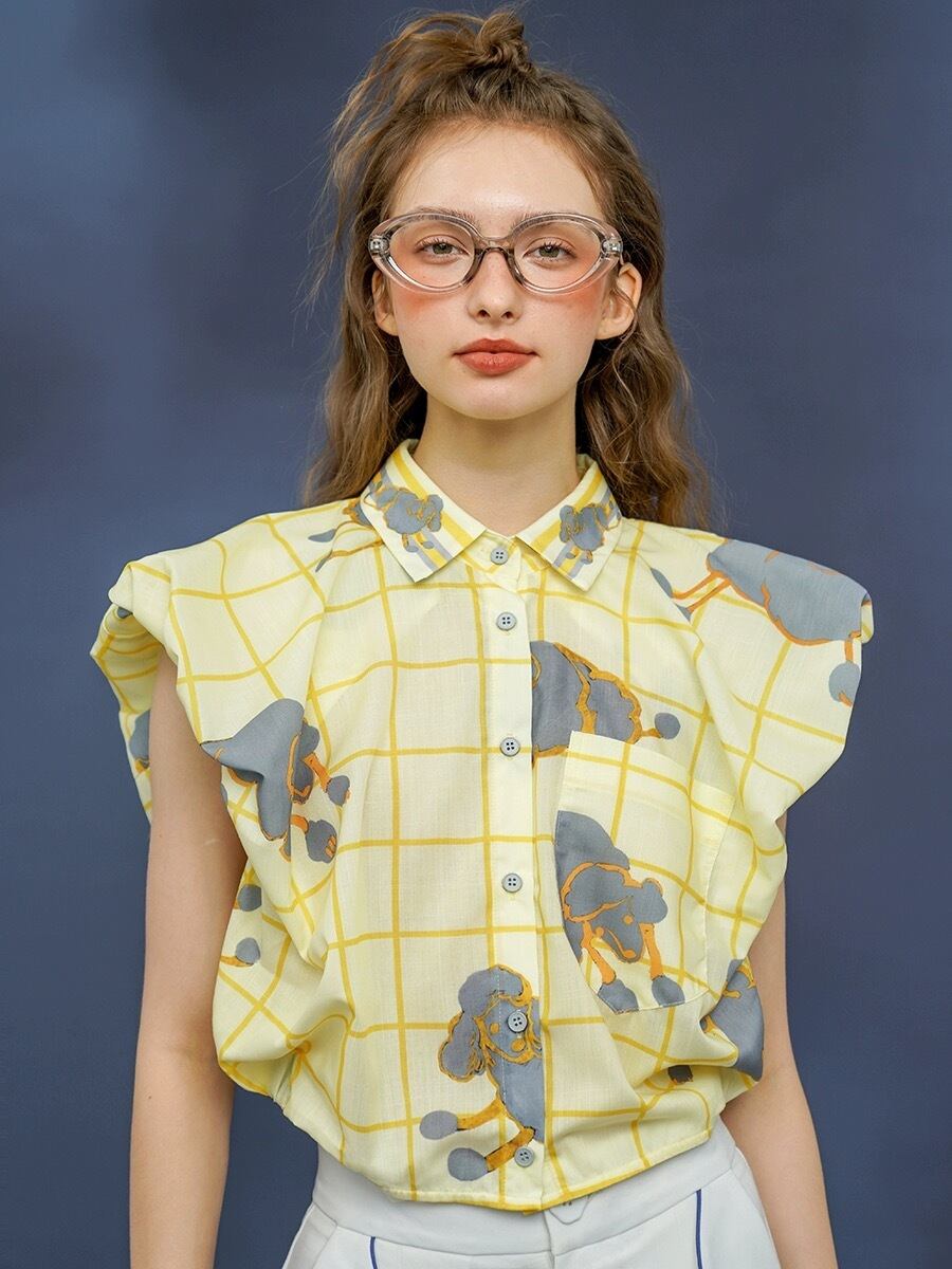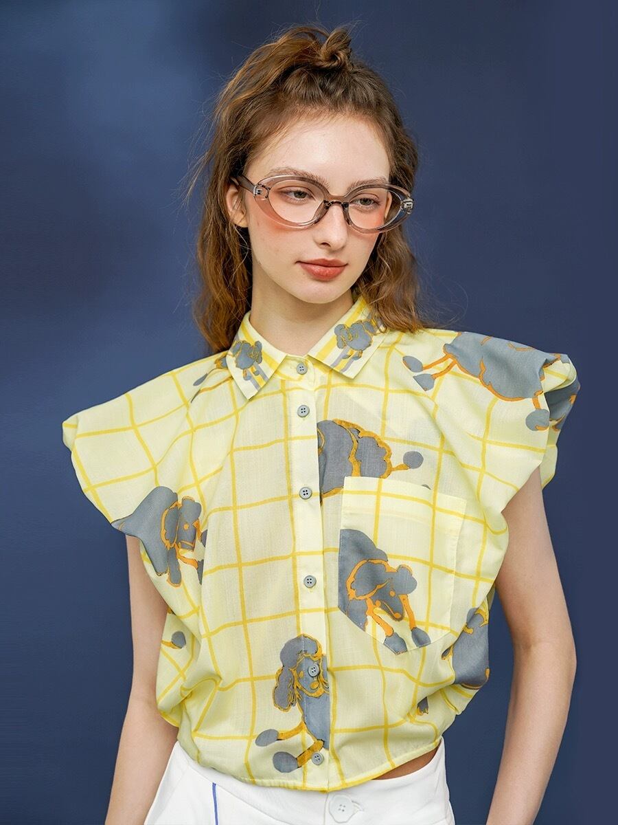 黄色 カジュアル ブラウス チェック かわいい ゆったり トップス