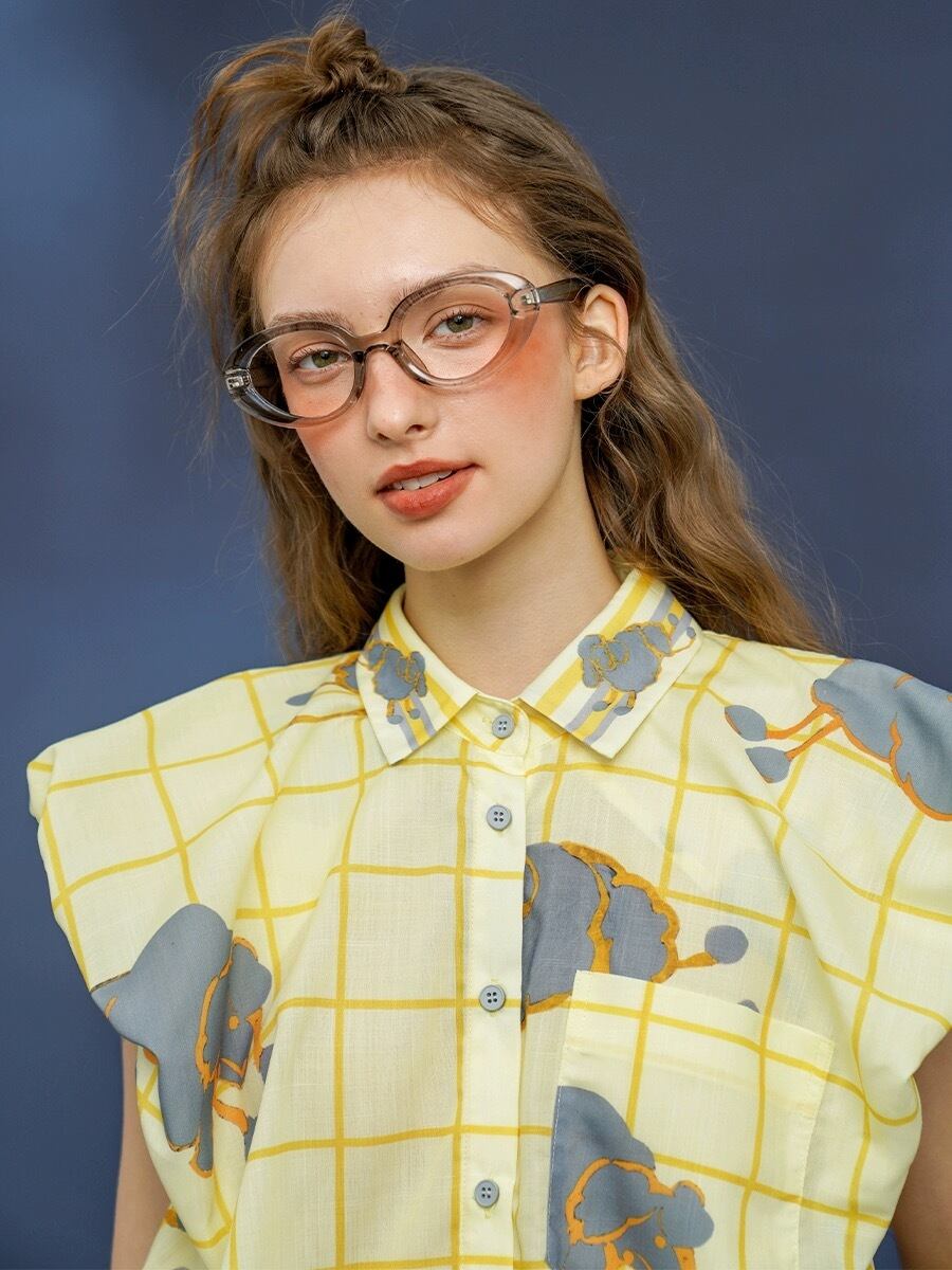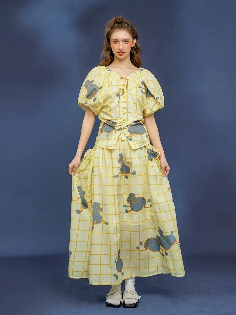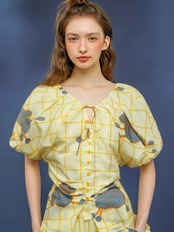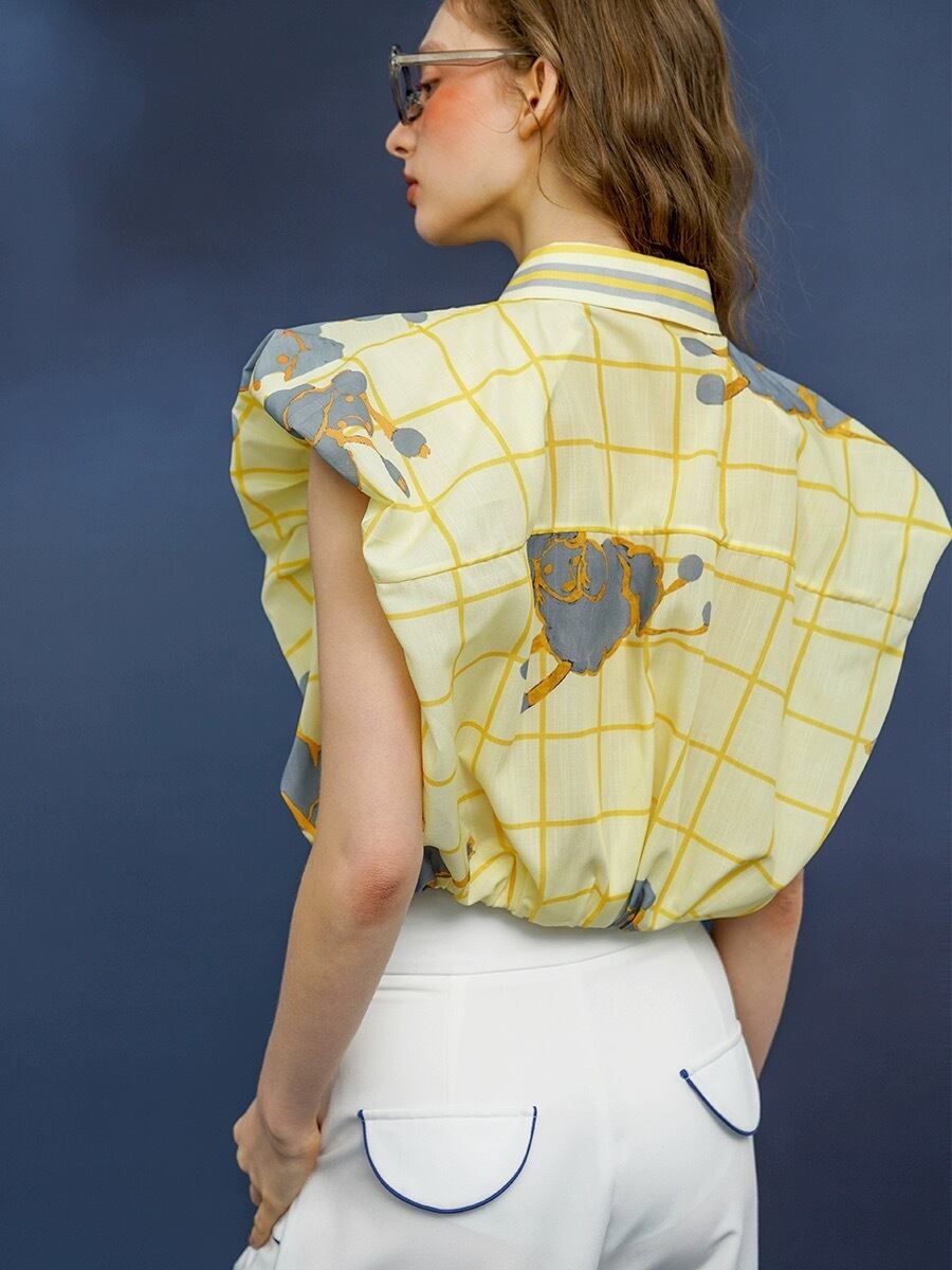 黄色 カジュアル ブラウス チェック かわいい ゆったり トップス
