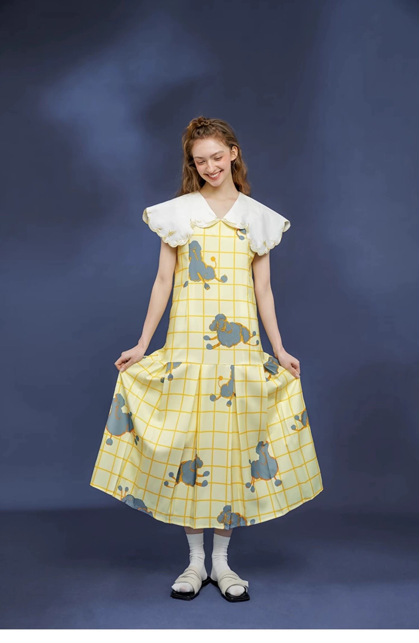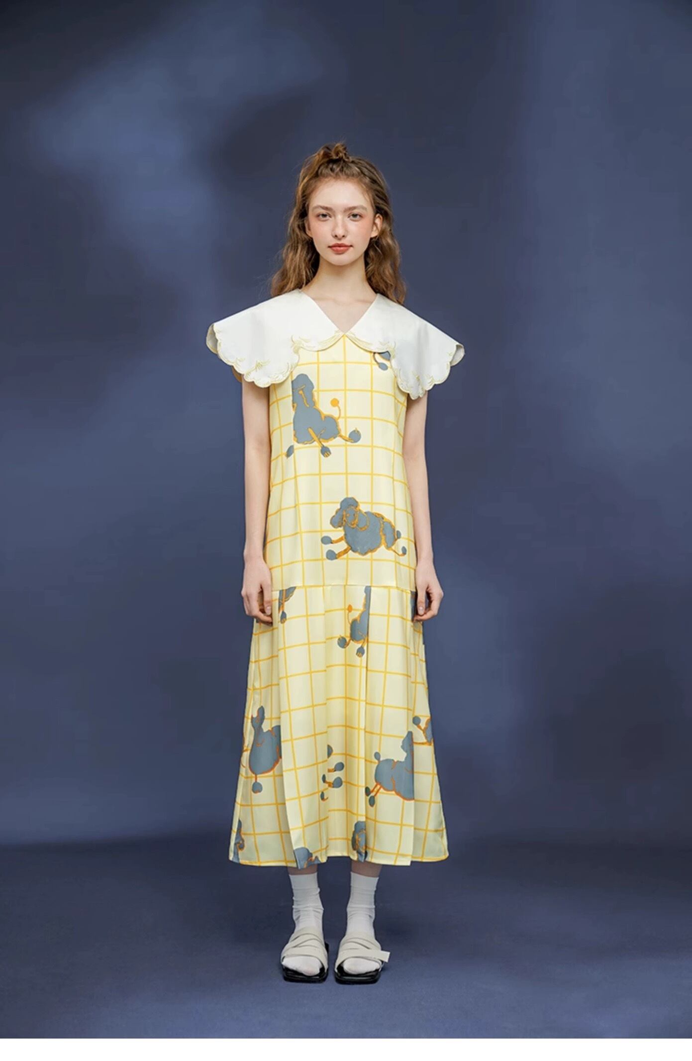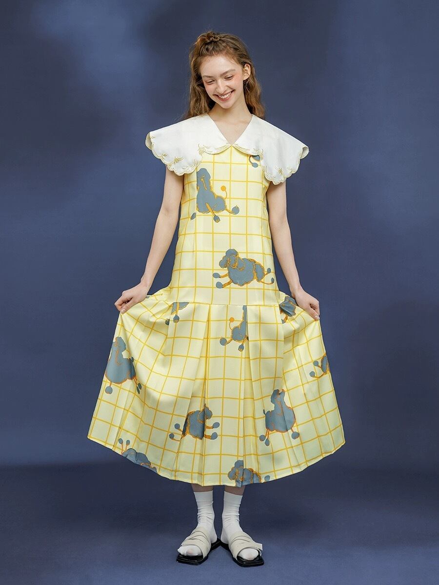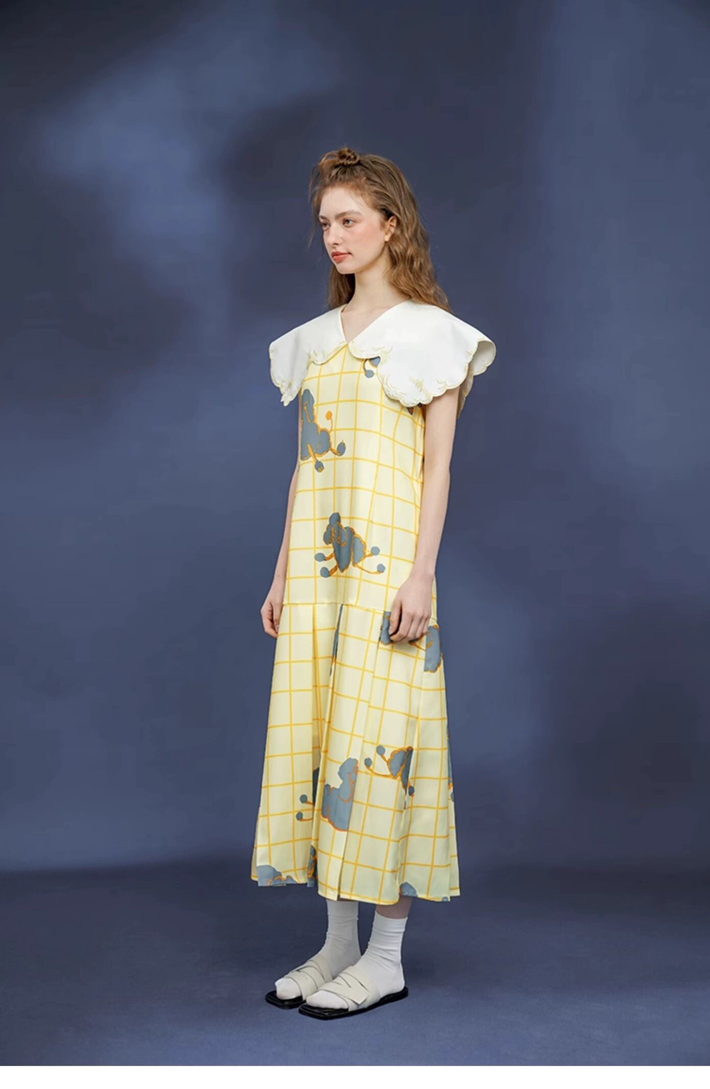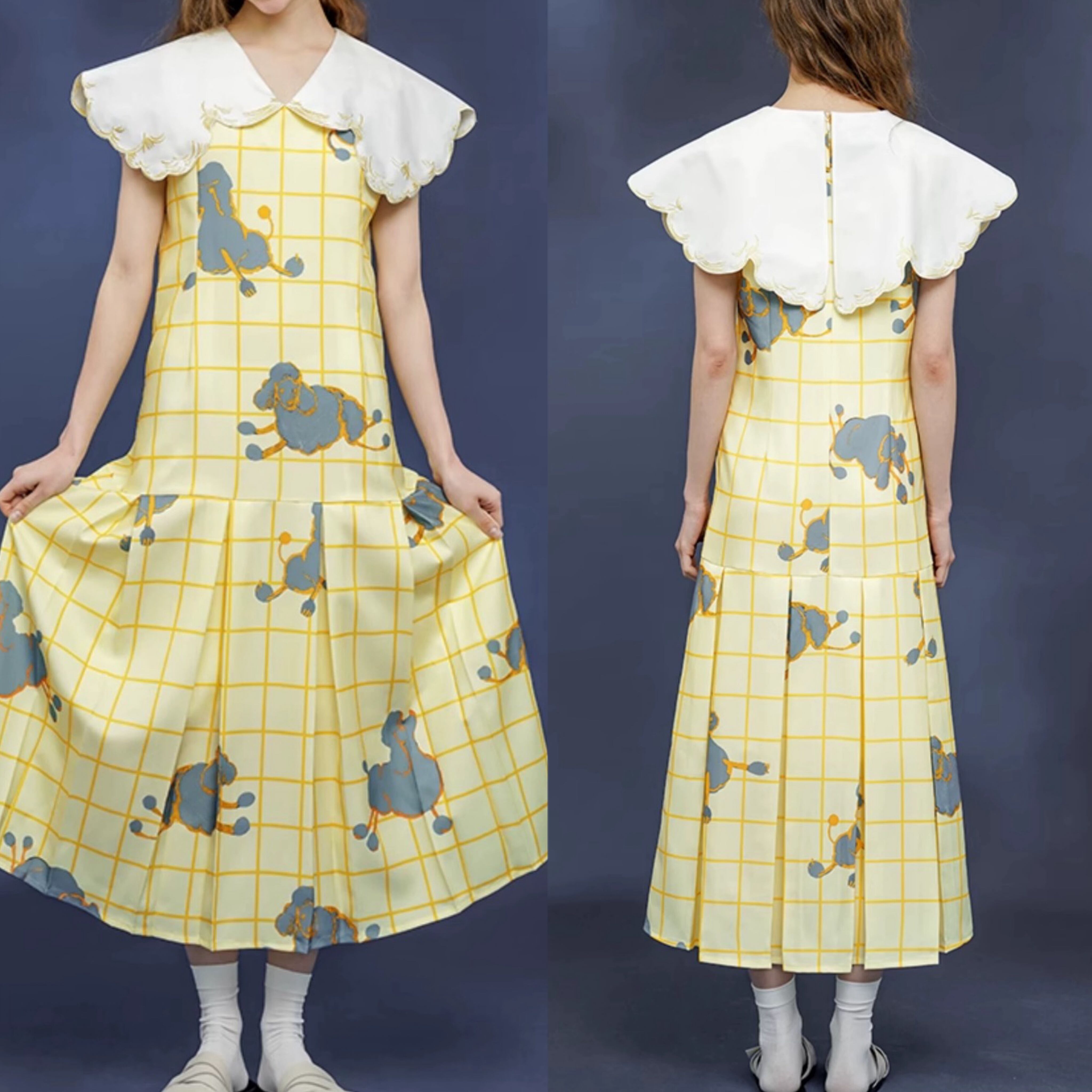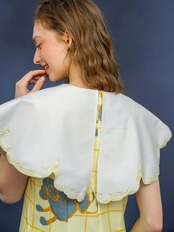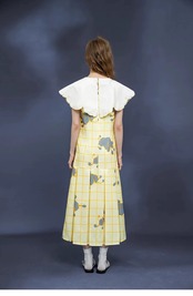黄色 デカ襟 チェック ゆったり ブラウス かわいい カジュアル ガーリー