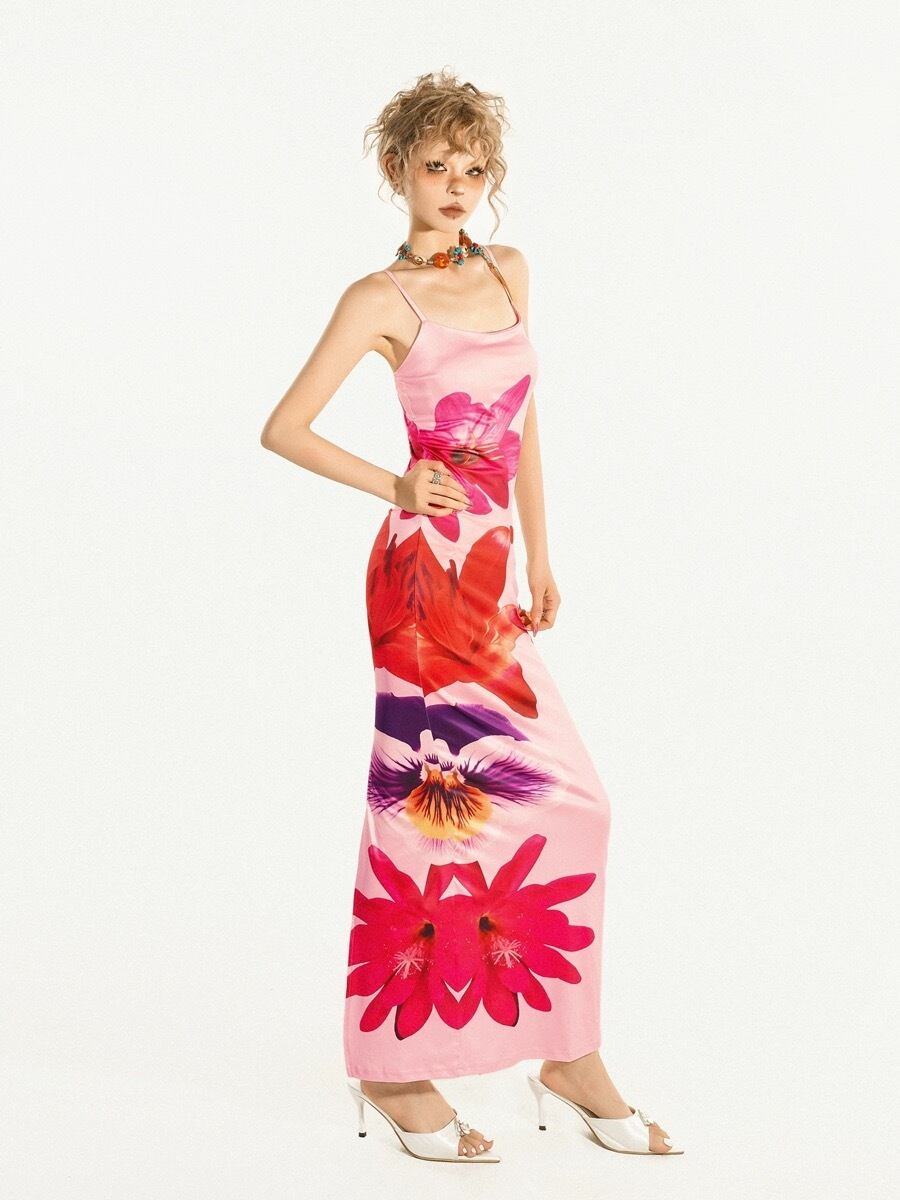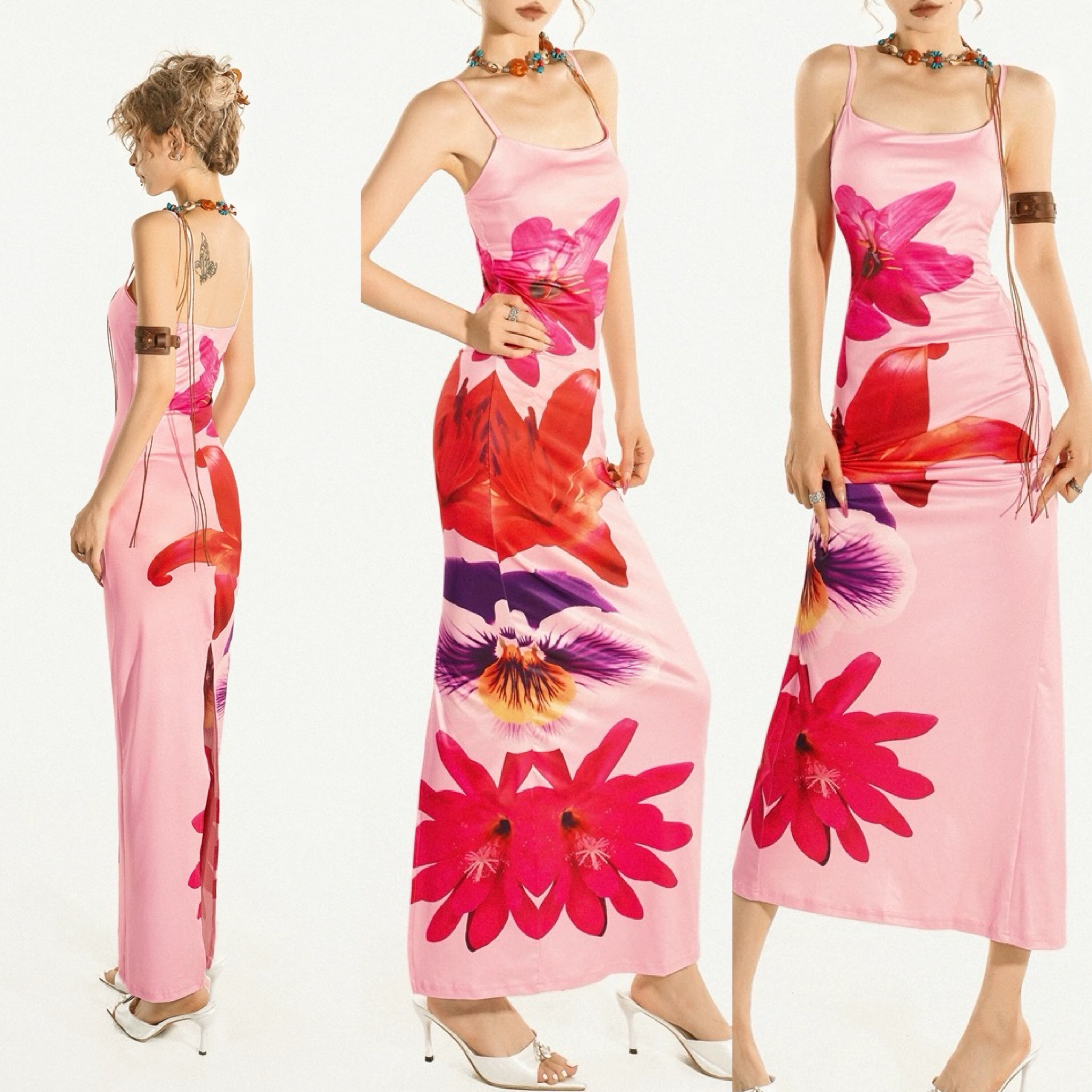 キャミソール ピンク マキシ セクシー トロピカル バカンス 海 夏 ワンピース