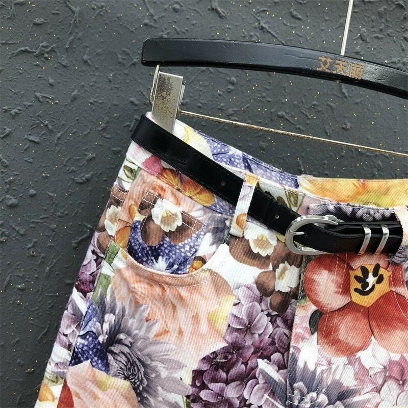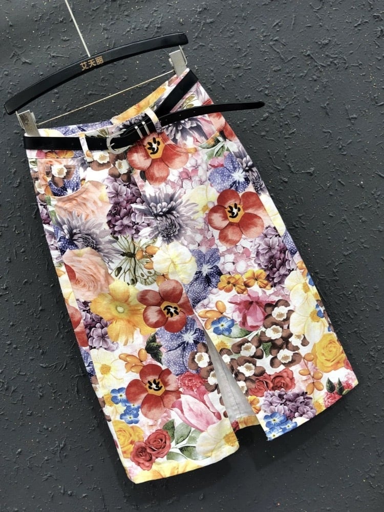 花柄 タイト 膝丈 スリット スカート ボトムス