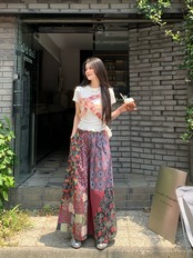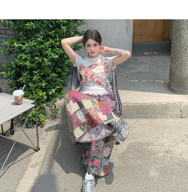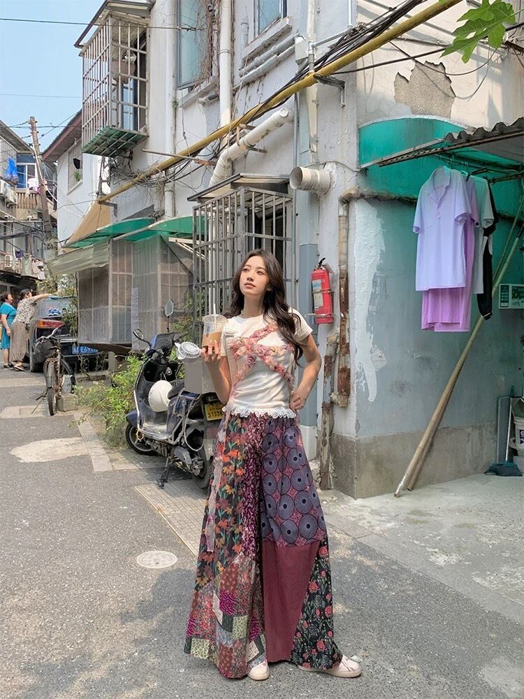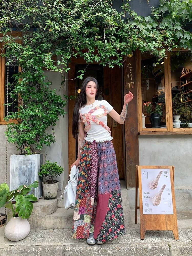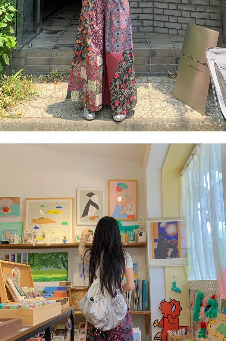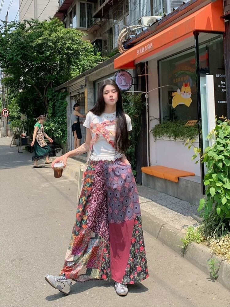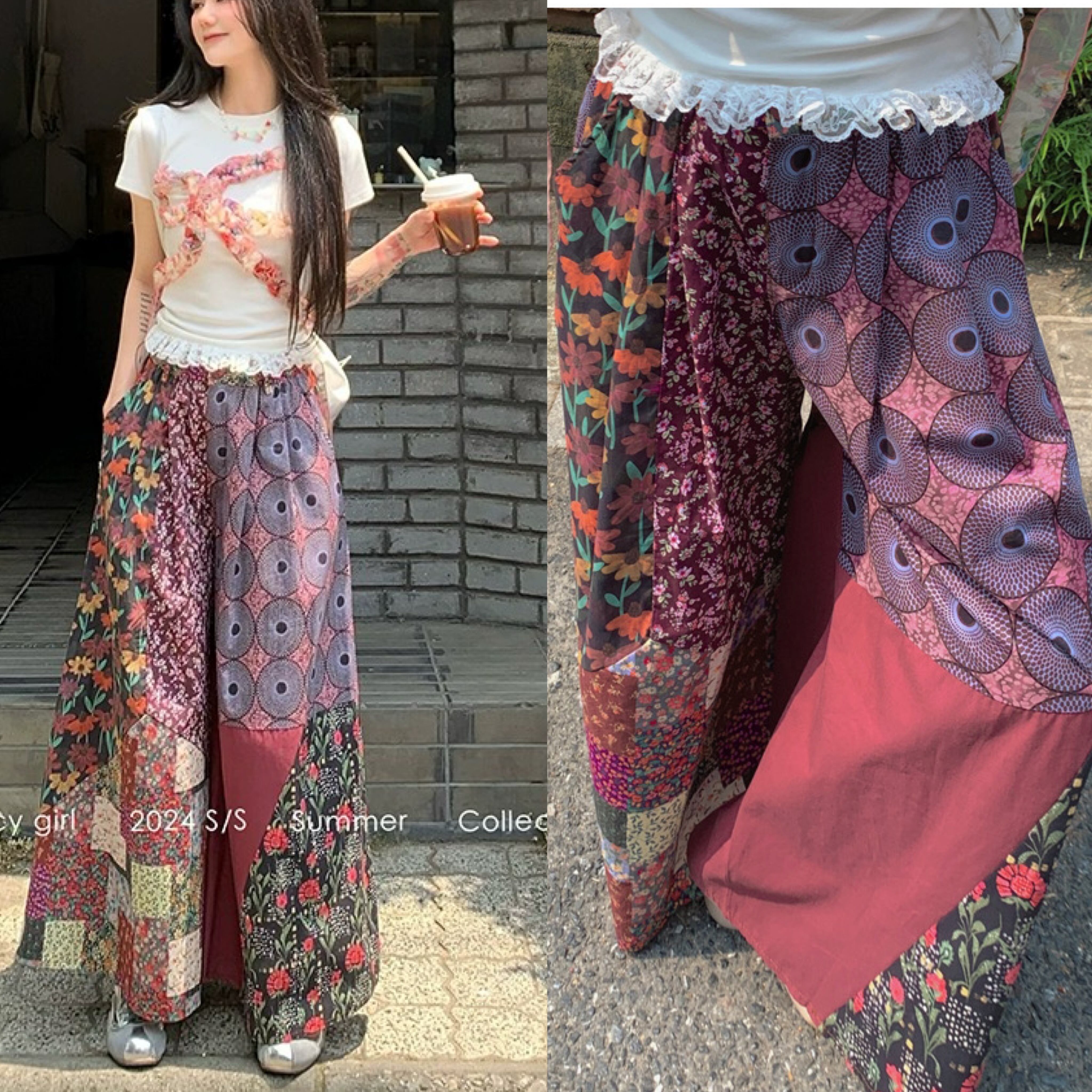 紫 パッチワーク ボトムス パンツ ズボン ワイドパンツ