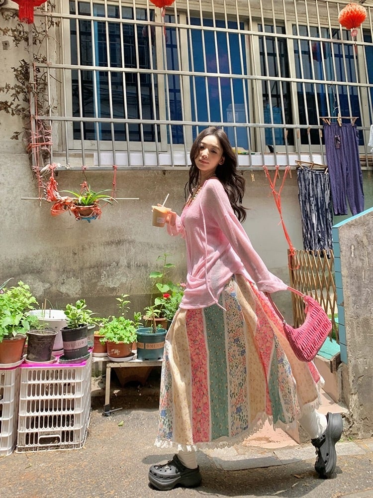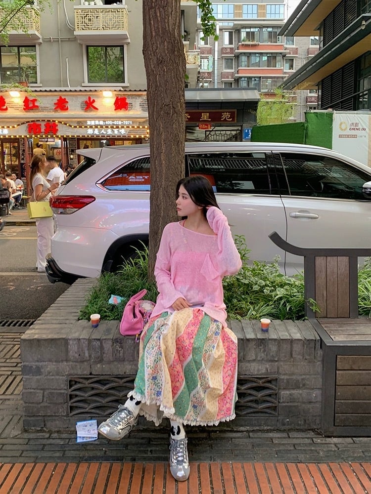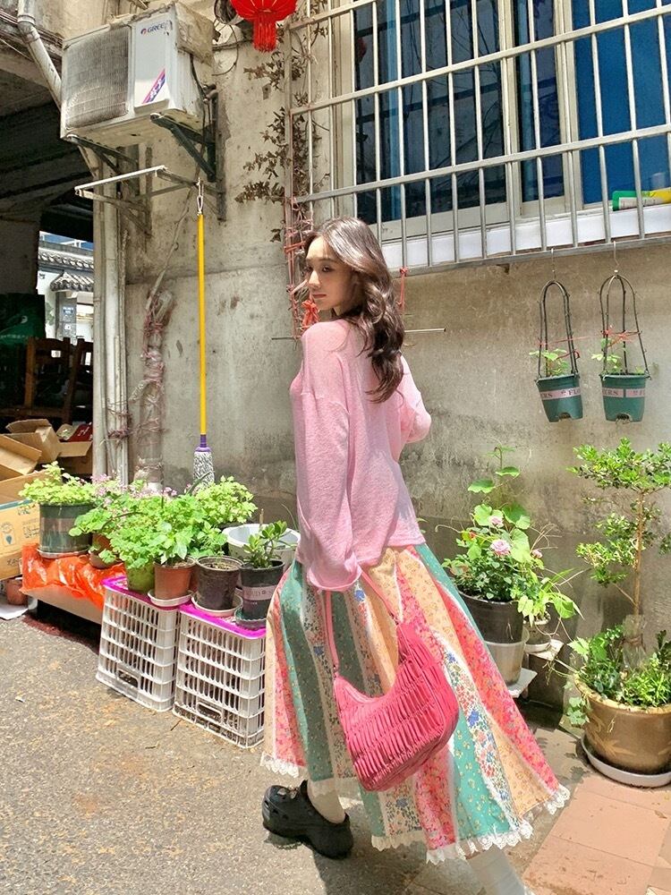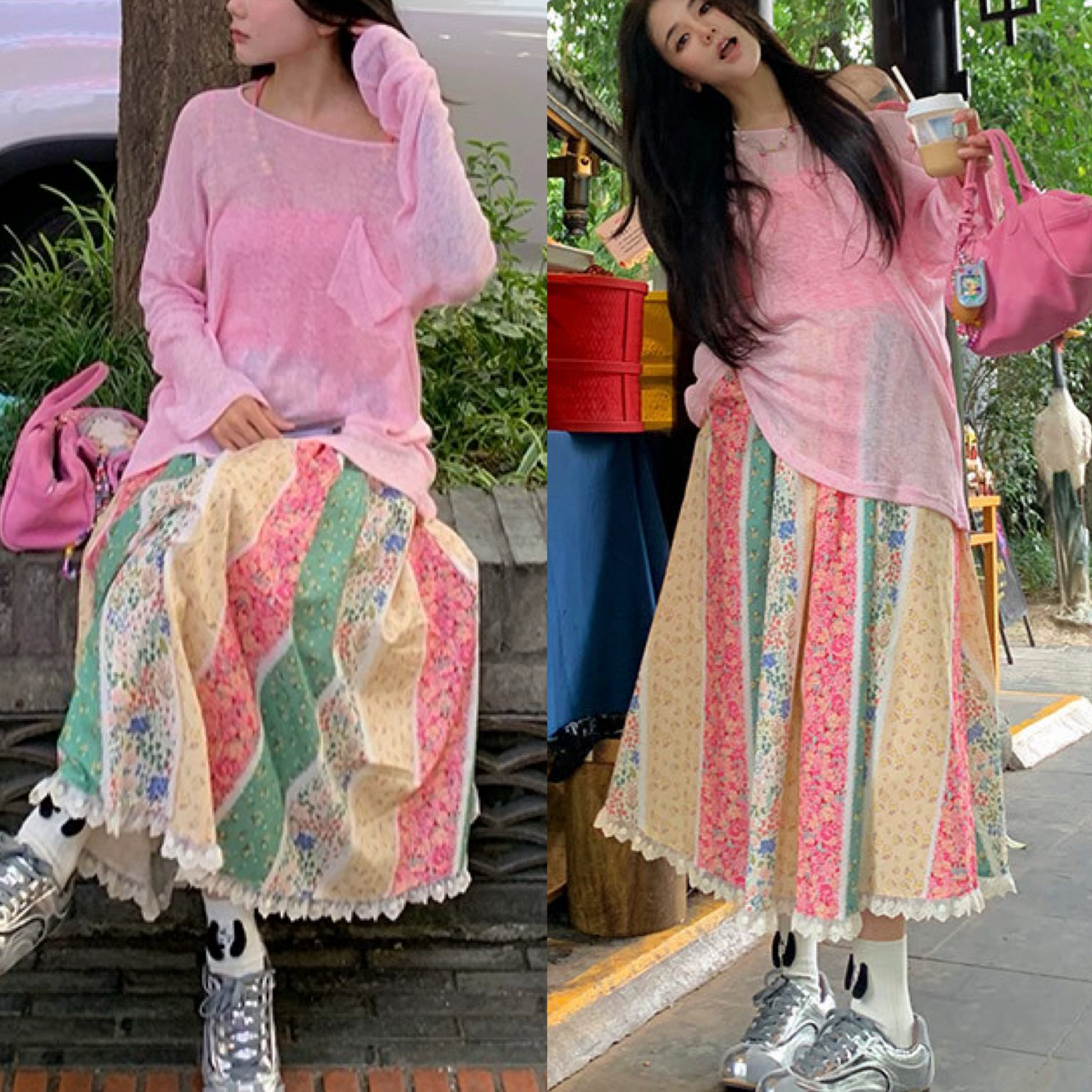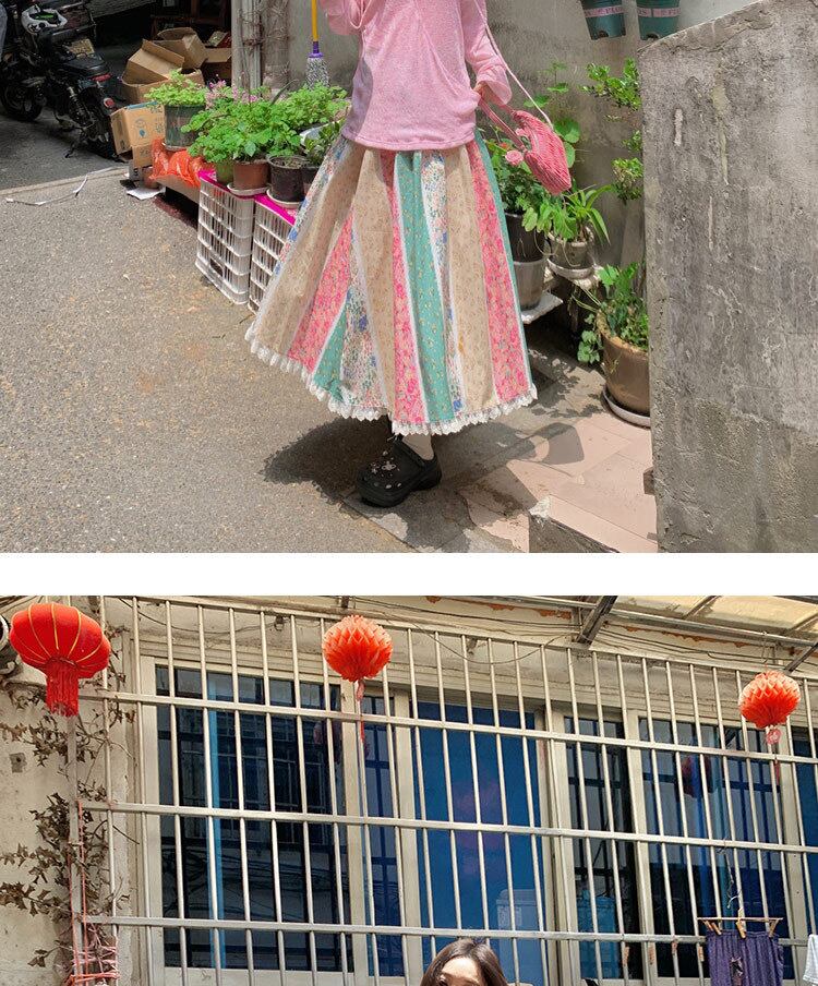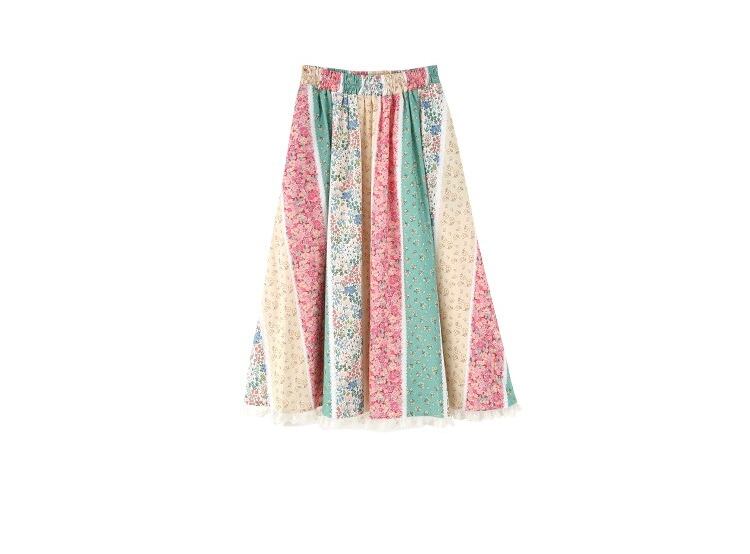 カラフル パッチワーク スカート 緑 オレンジ 黄色