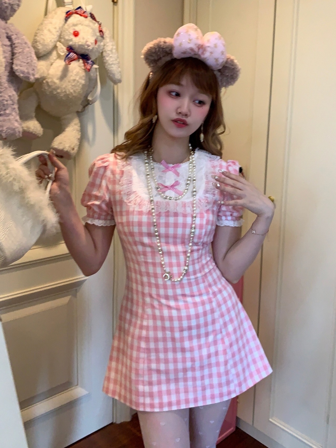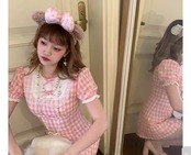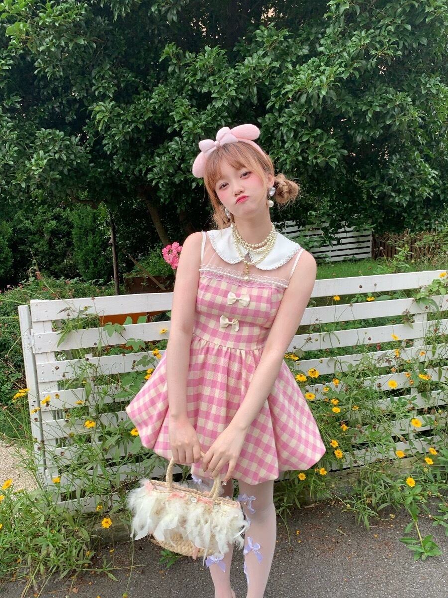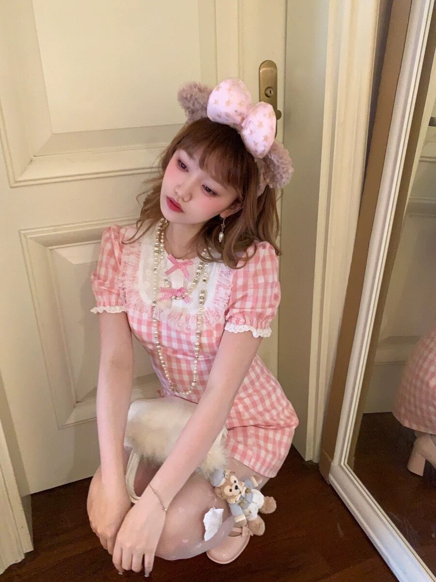 ピンク チェック ワンピース リボン ガーリー かわいい 姫