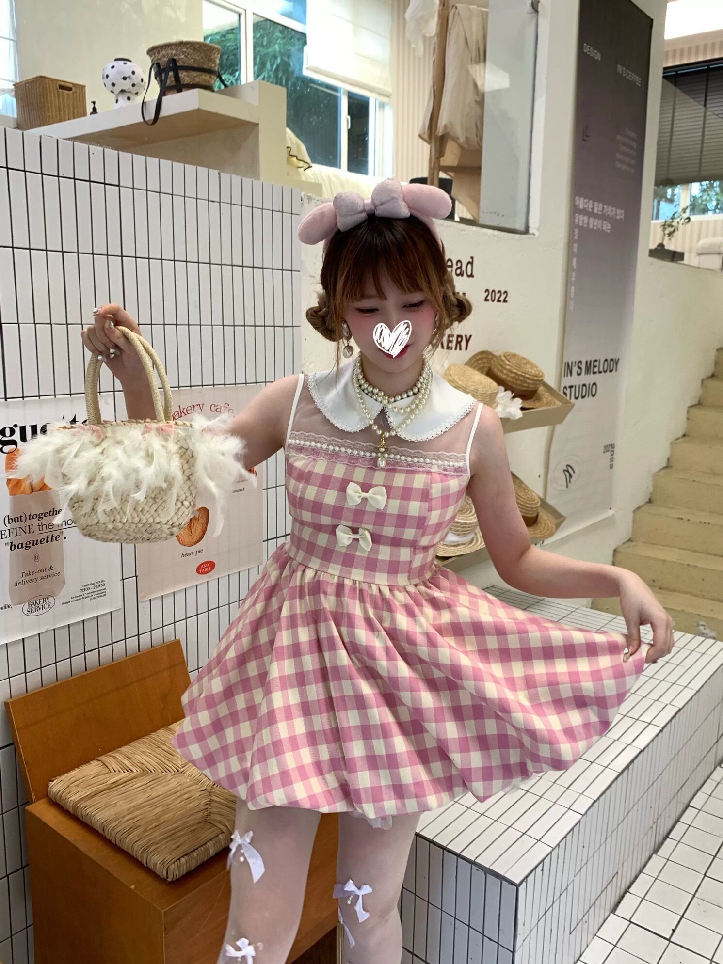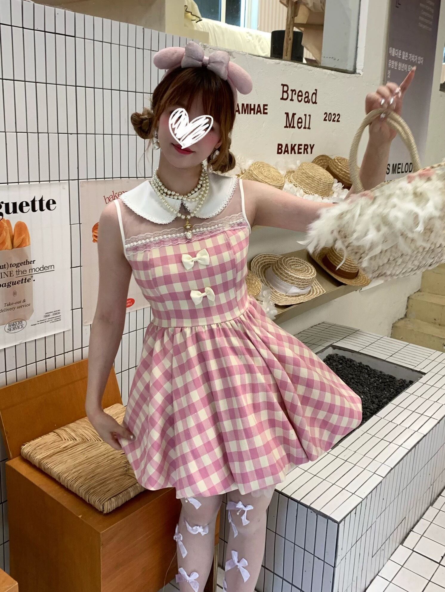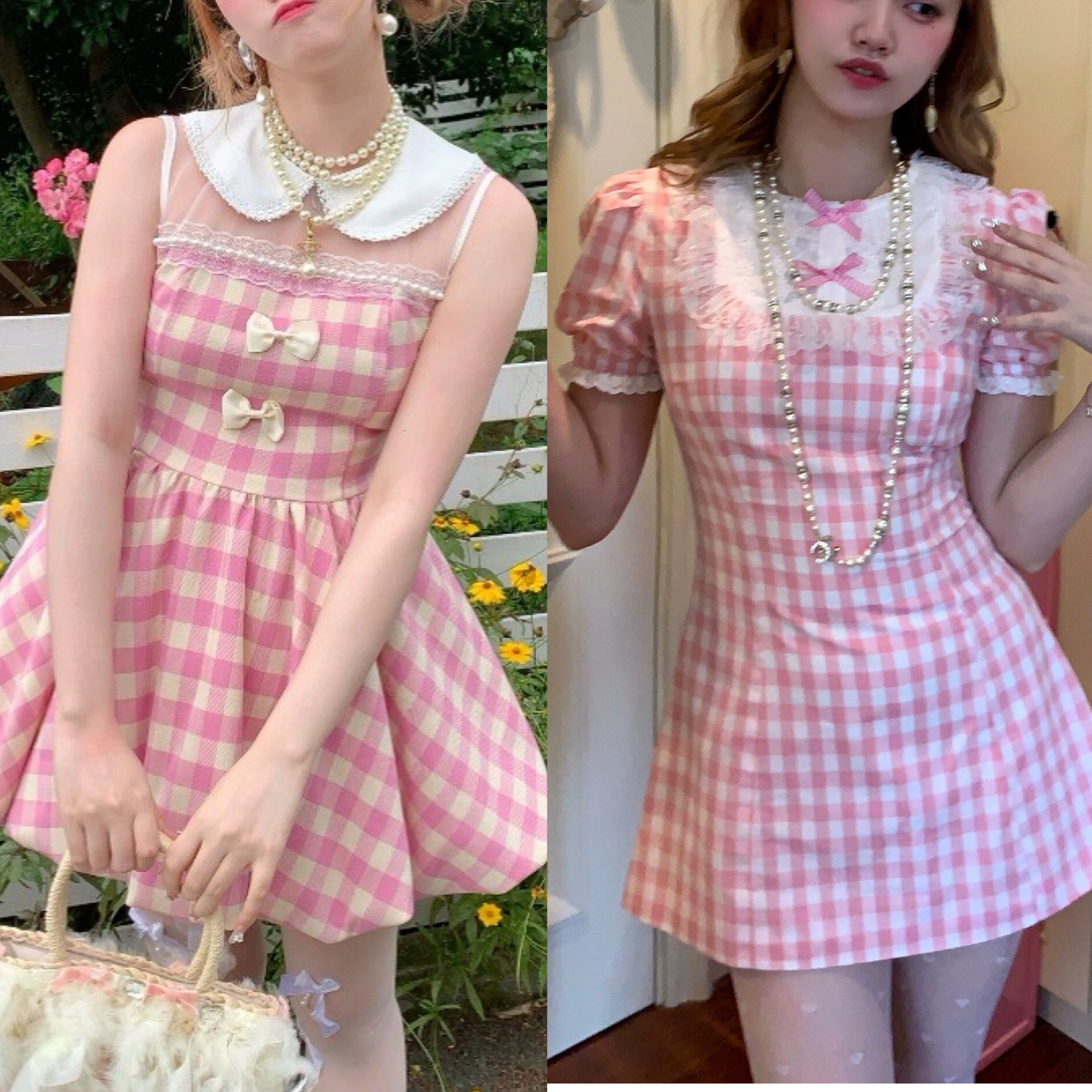ピンク チェック ワンピース リボン ガーリー かわいい 姫
