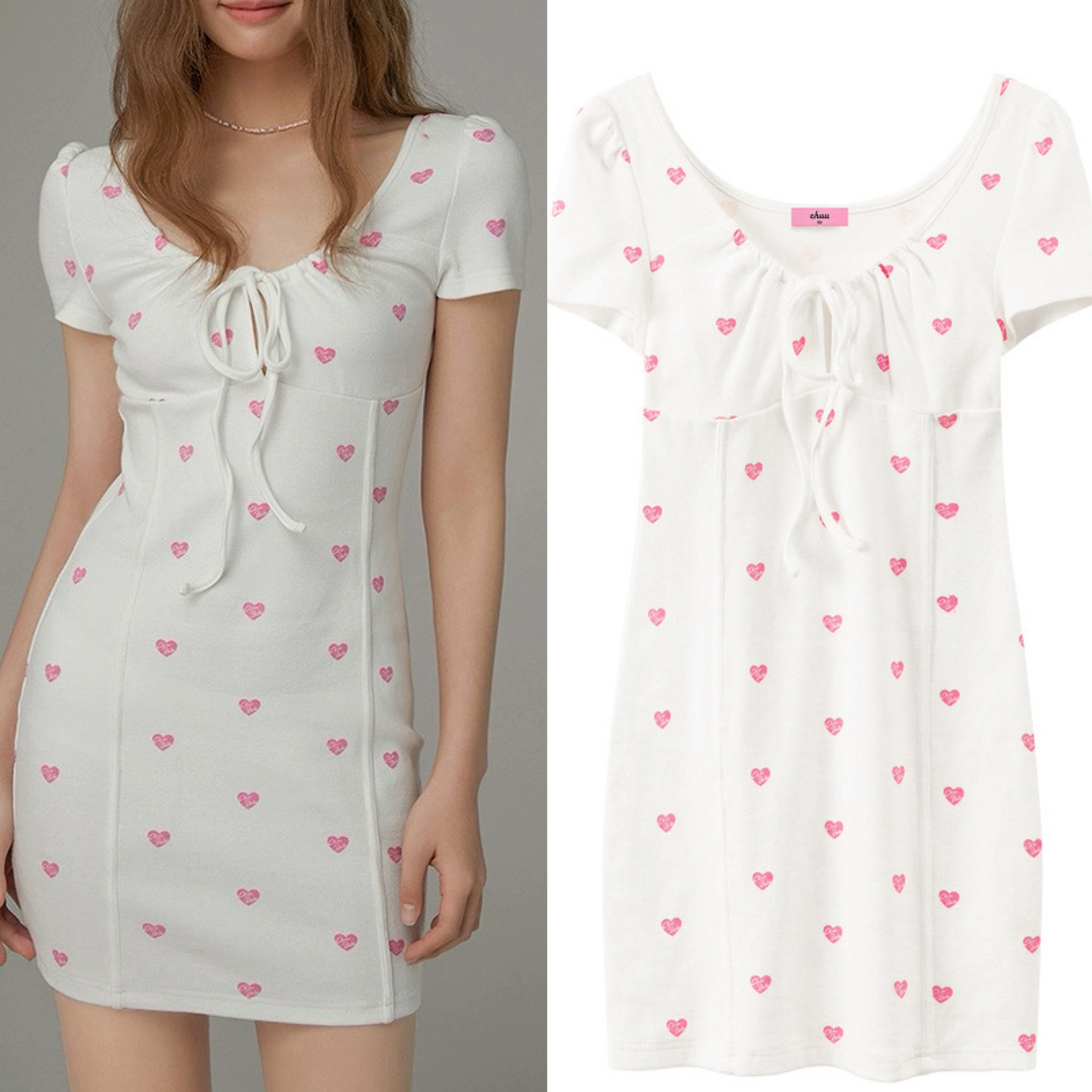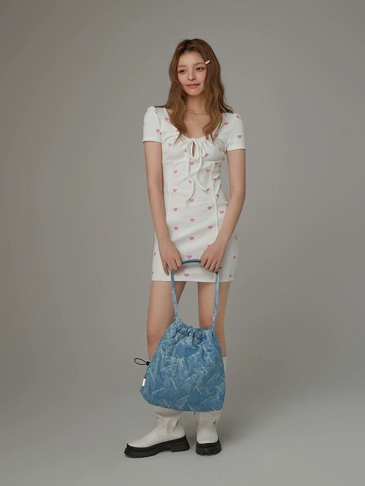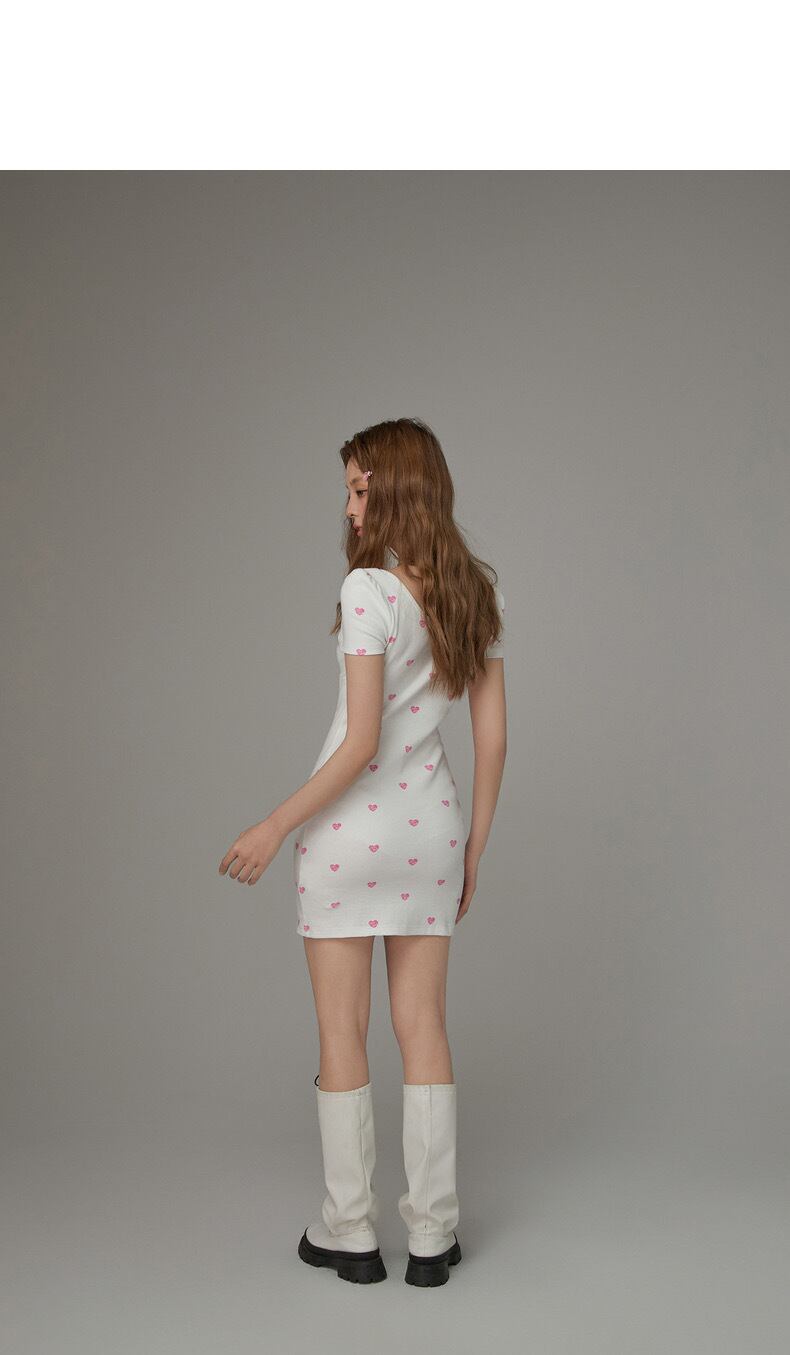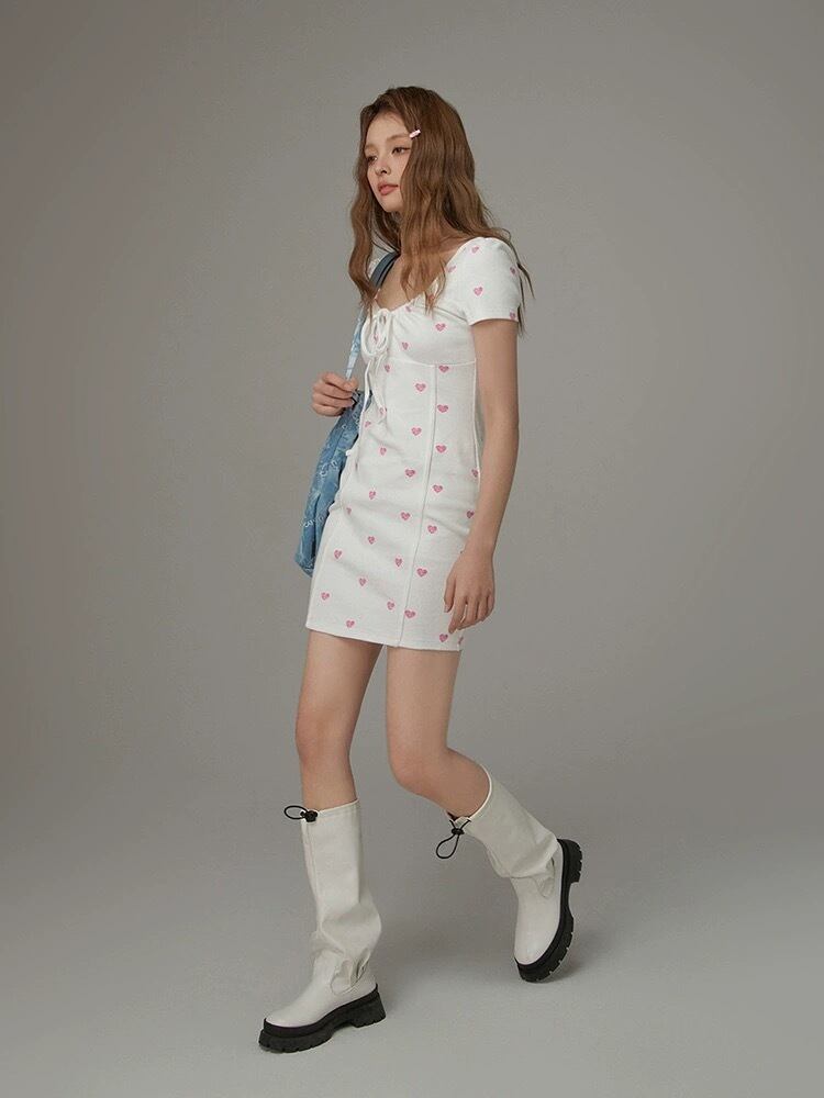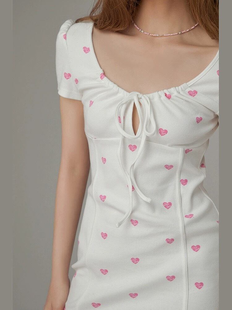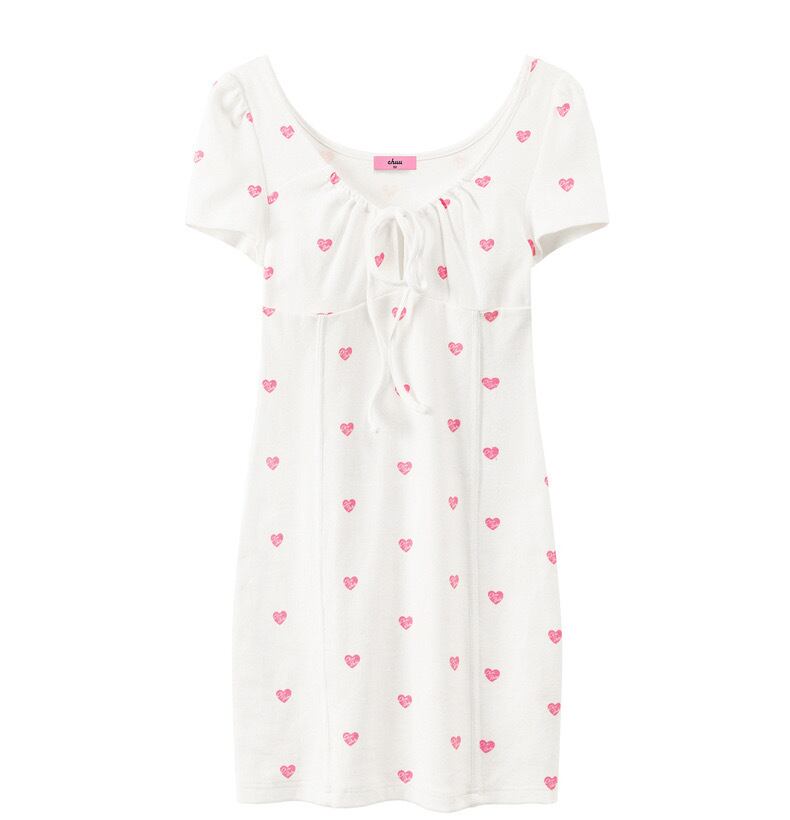 白 ホワイト ハート ピンク ワンピース シンプル カジュアル