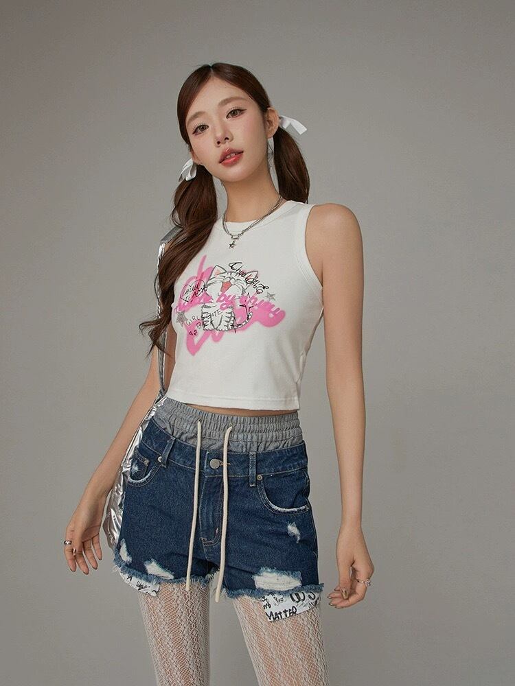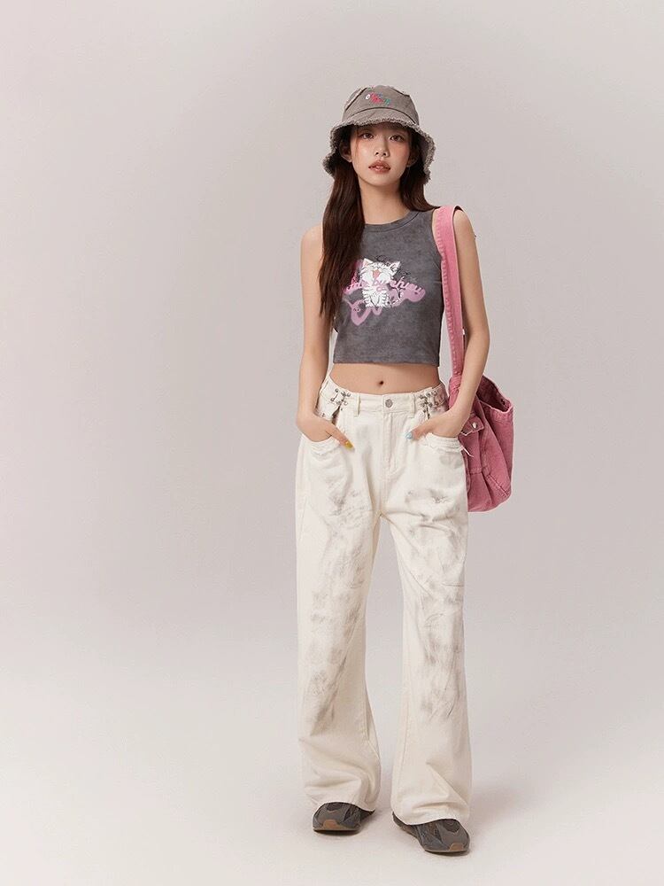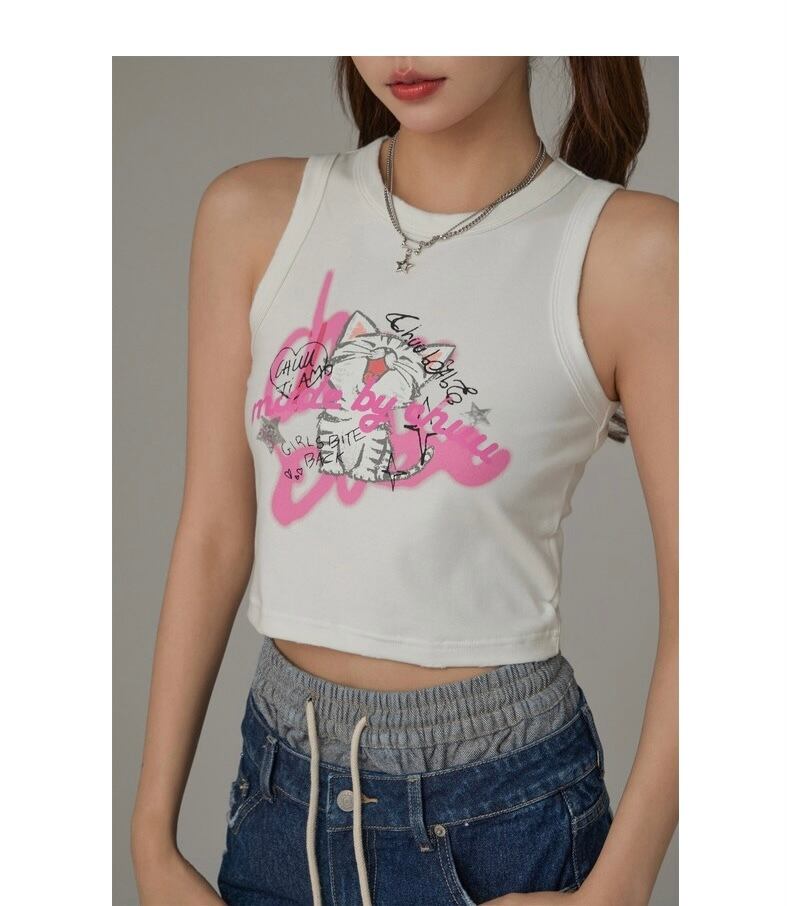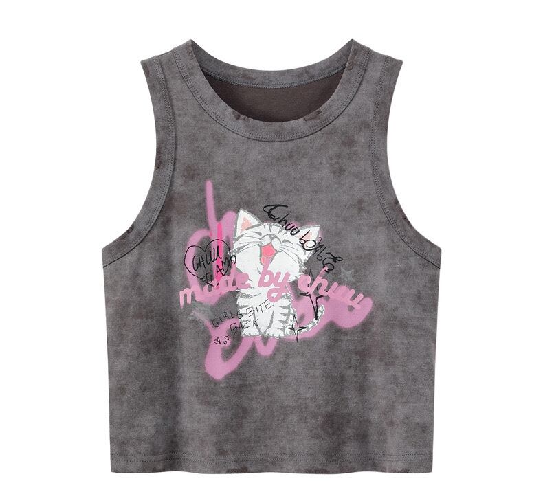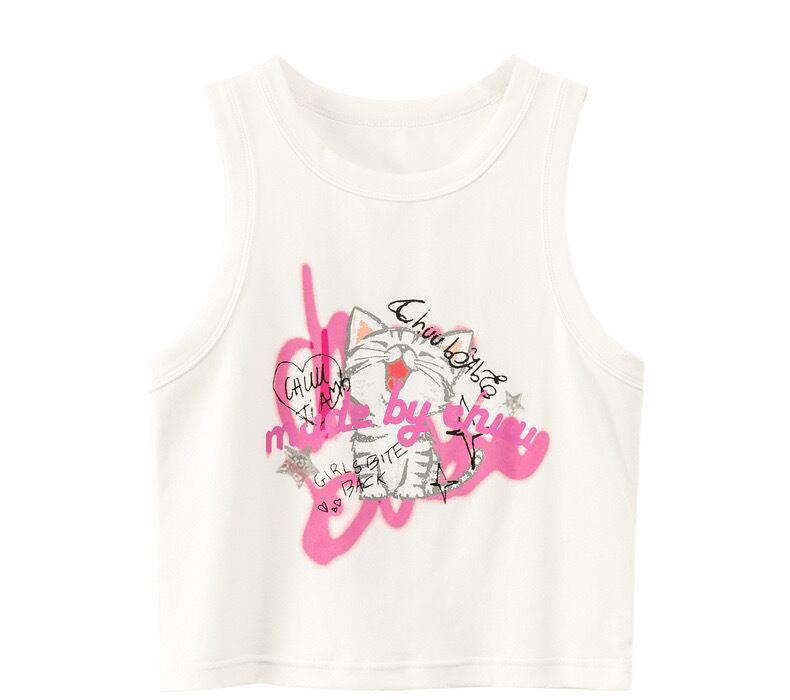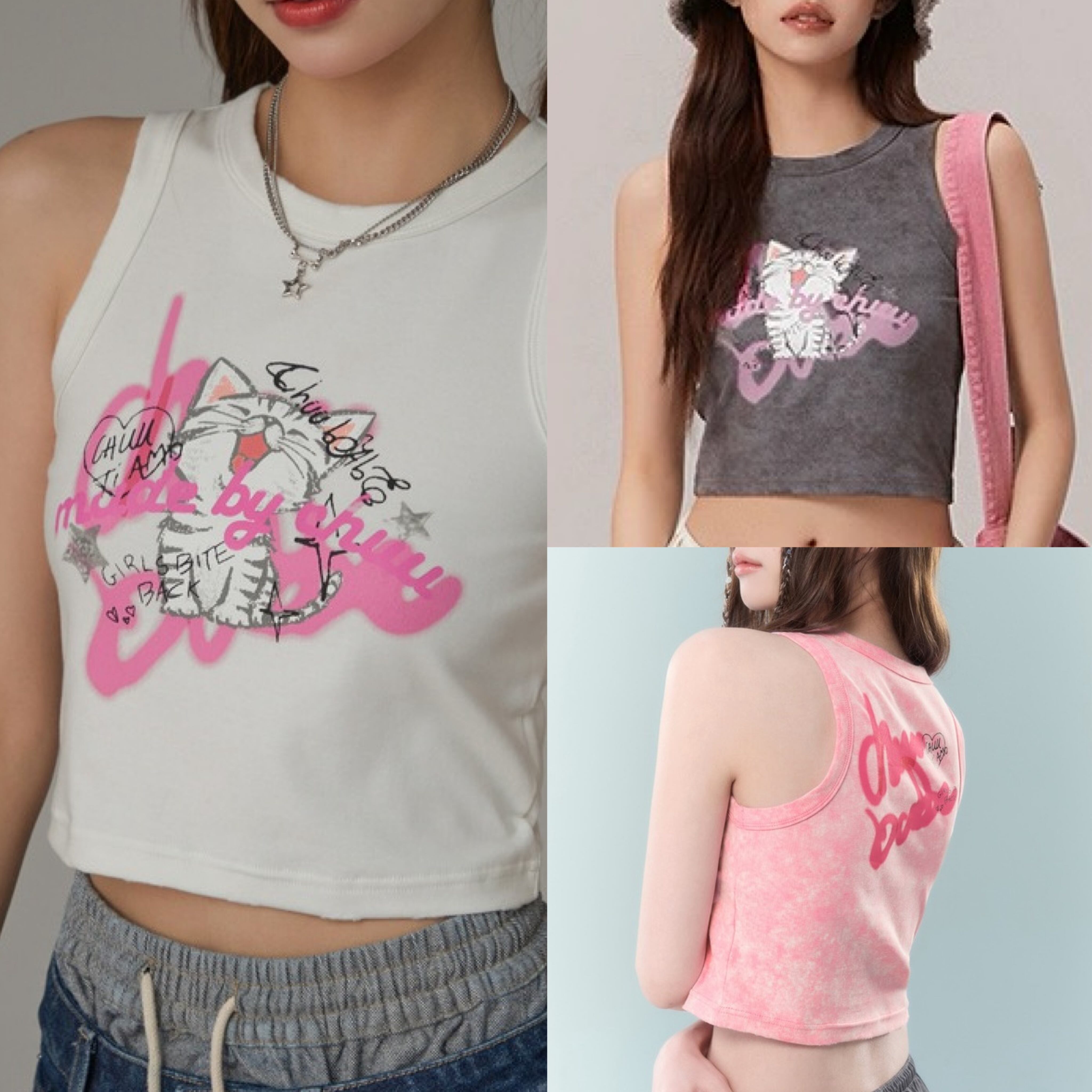 白 グレー ピンク タンクトップ ブラウス トップス ねこ 可愛い