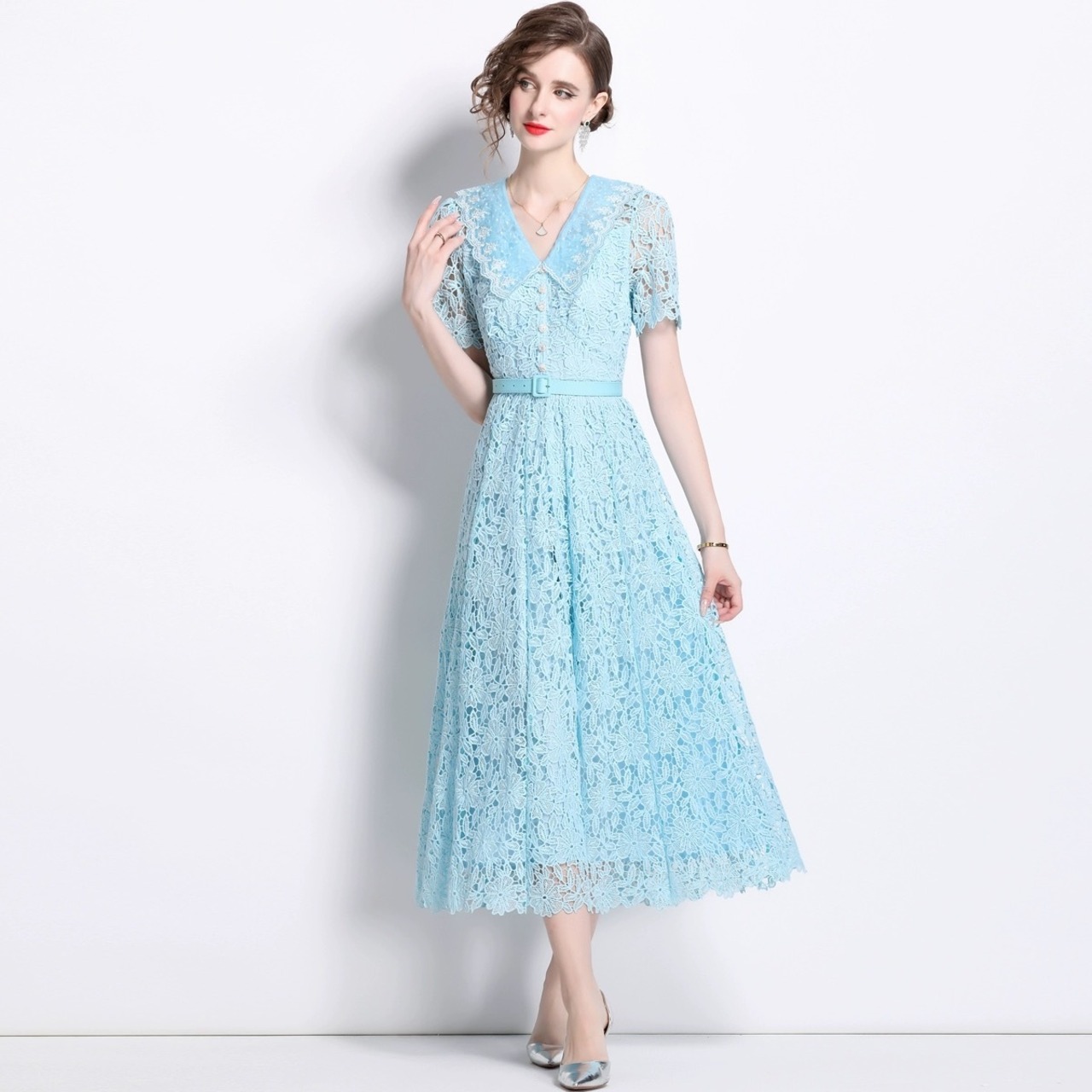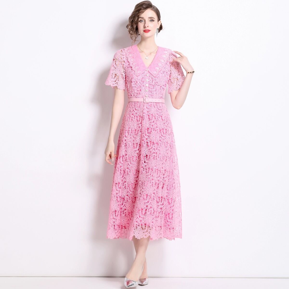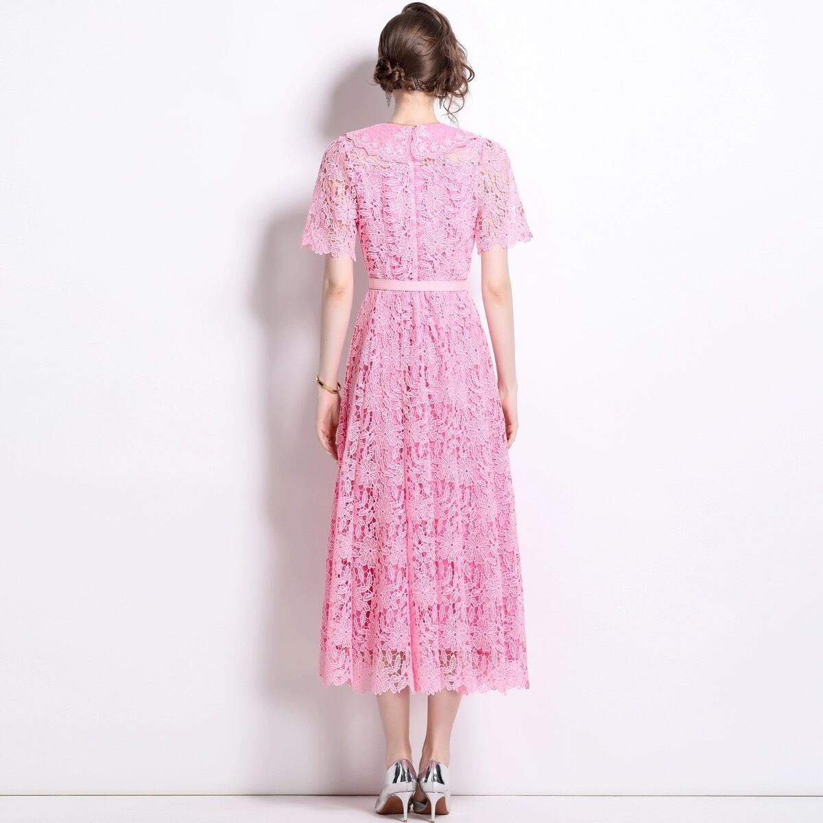水色 ピンク レース 鍵網 花柄 フラワー ワンピース XL XXL