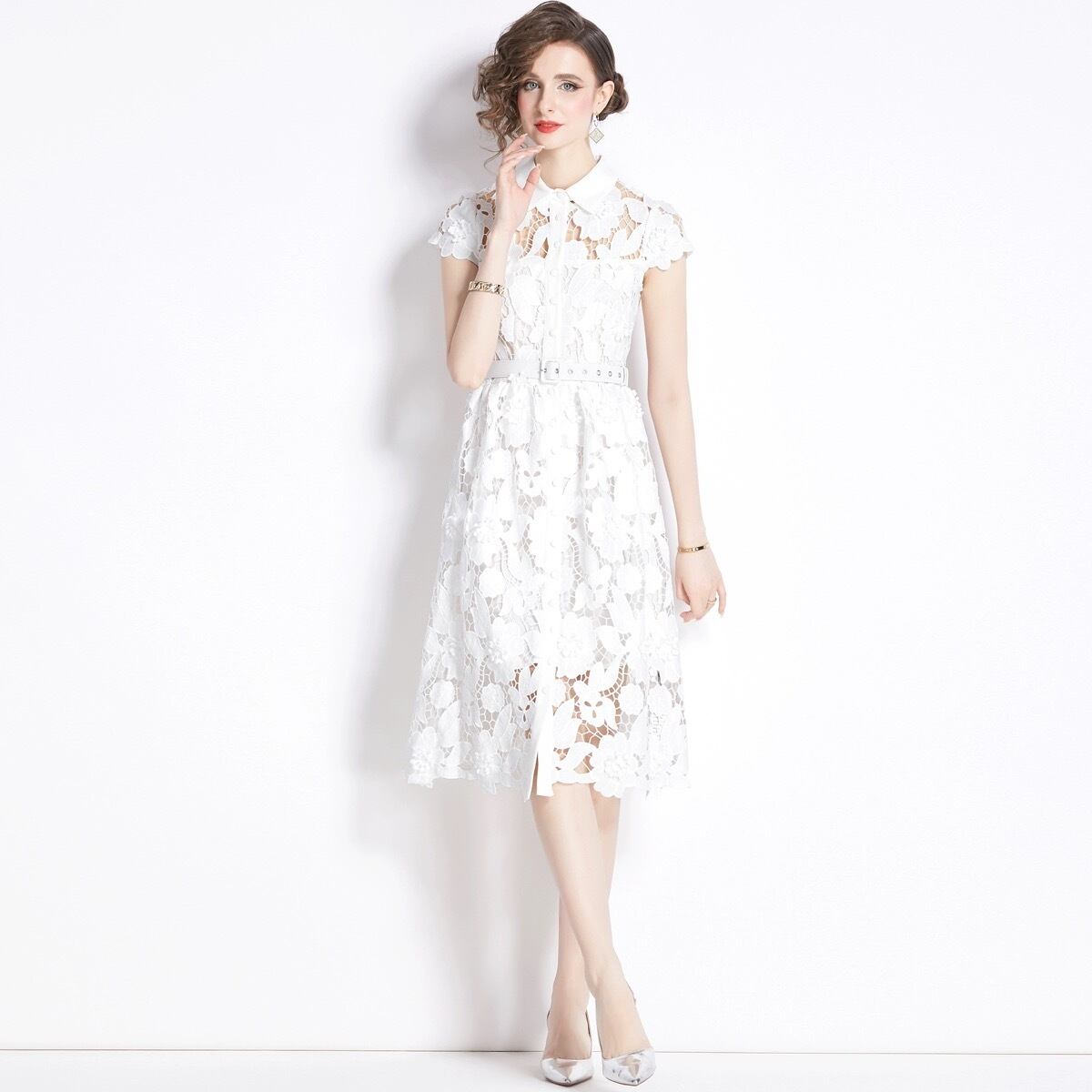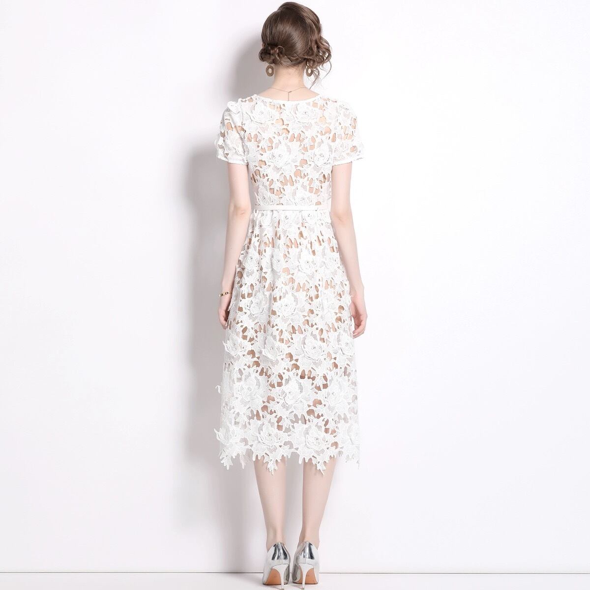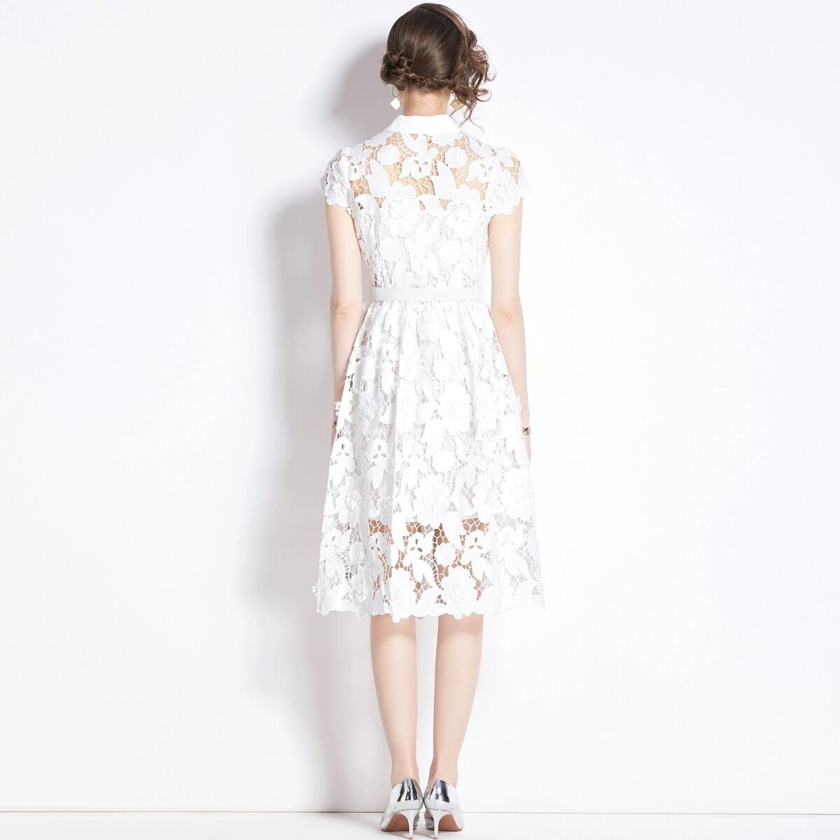 ホワイト 白 さわやか レース 花柄 フラワー ブラウス ワンピース XL XXL