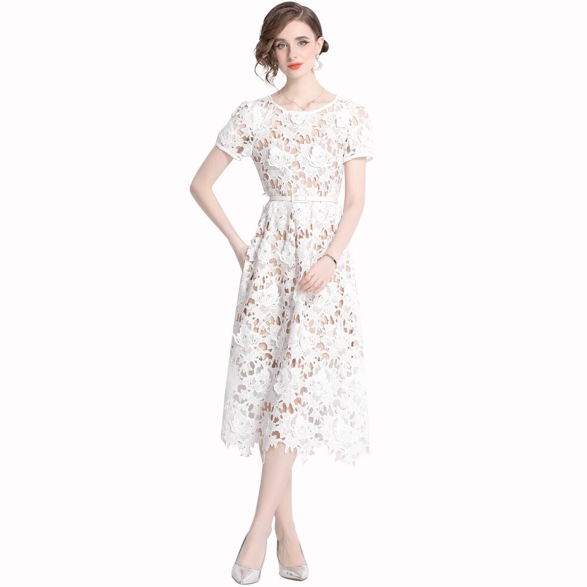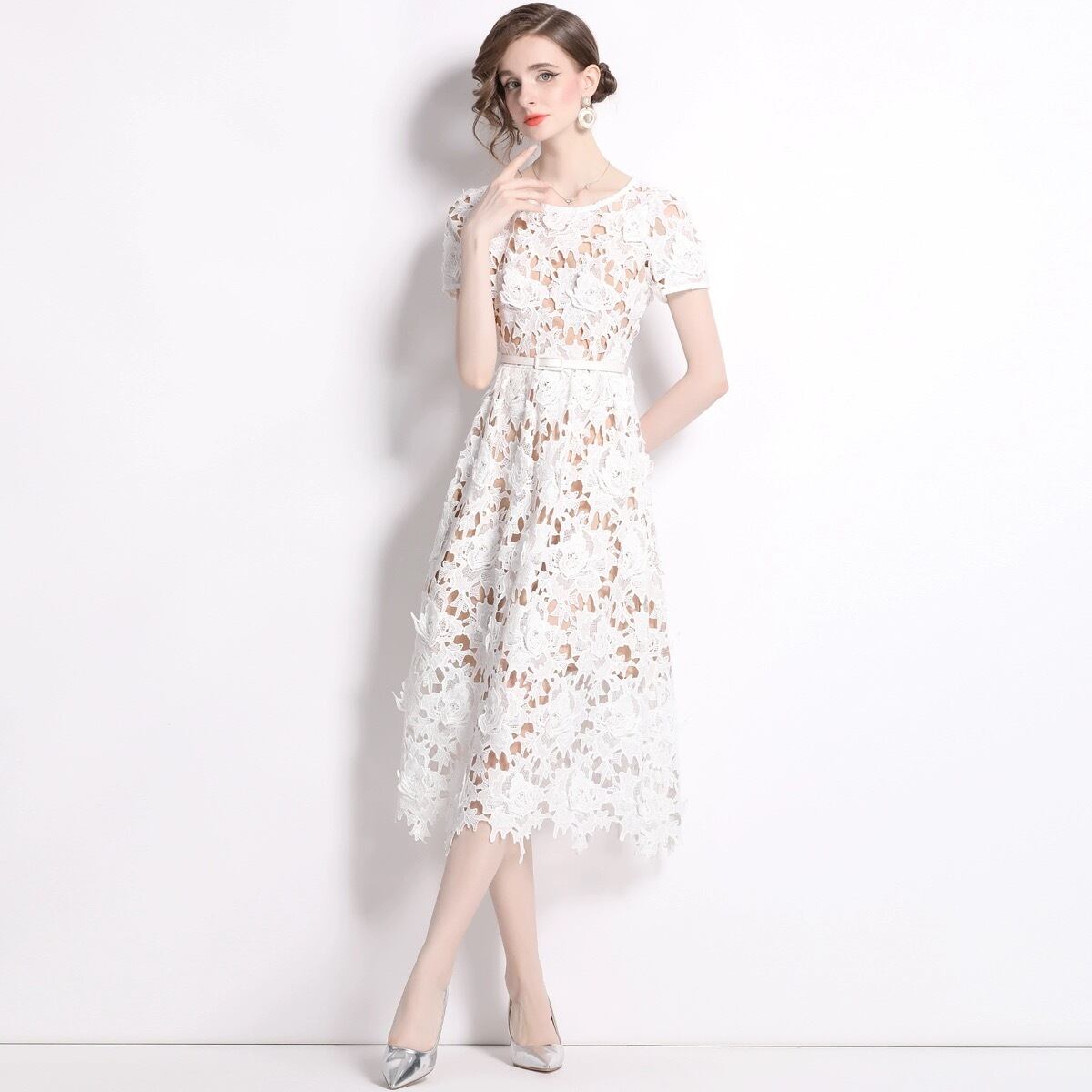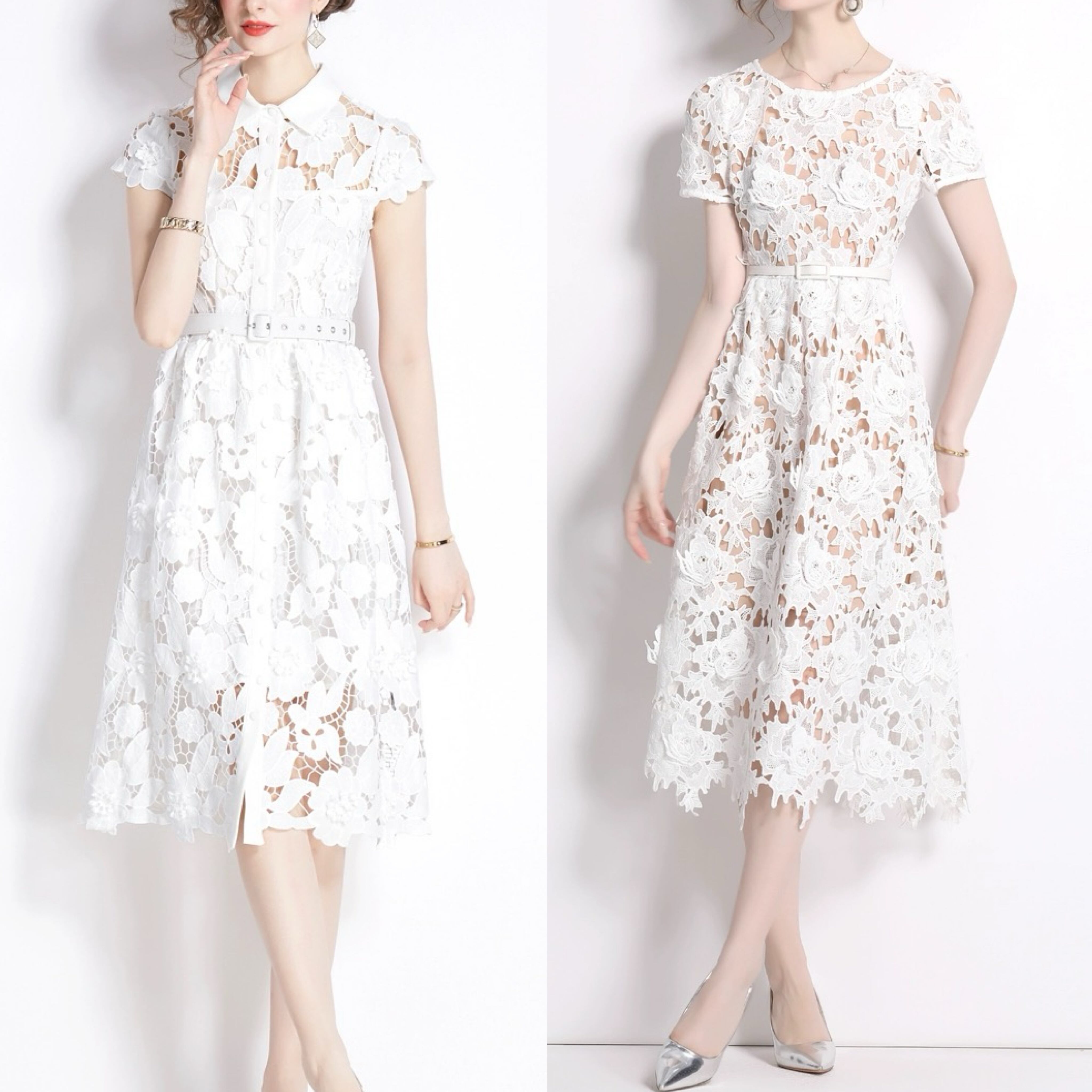 ホワイト 白 さわやか レース 花柄 フラワー ブラウス ワンピース XL XXL
