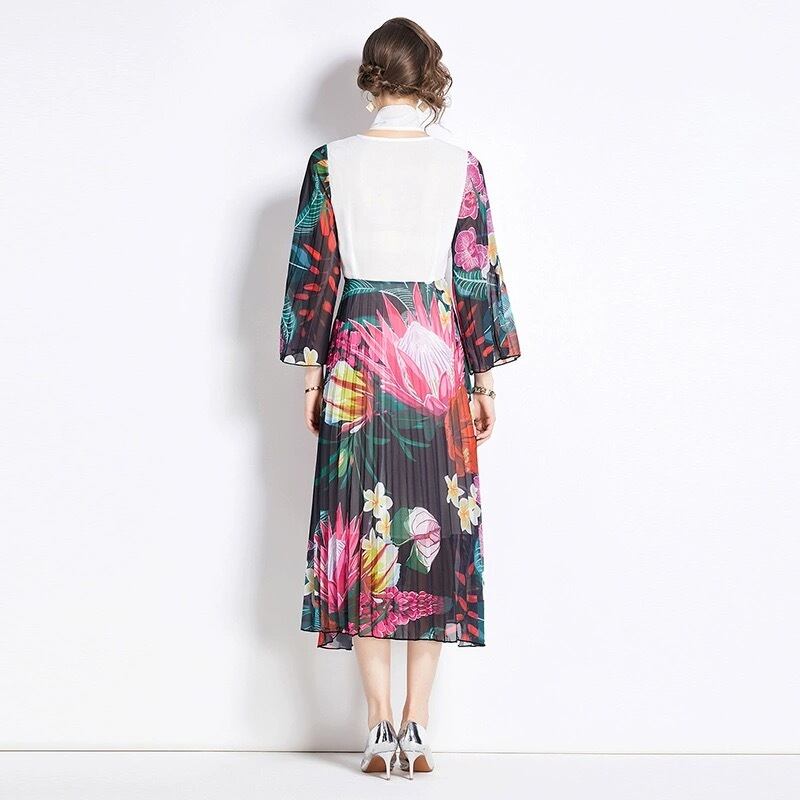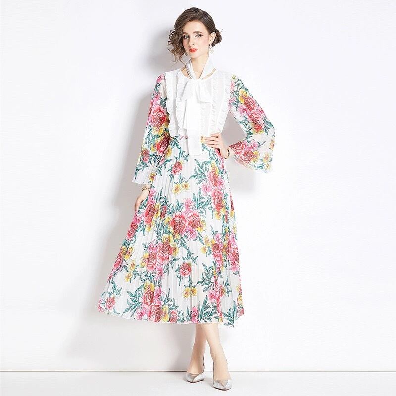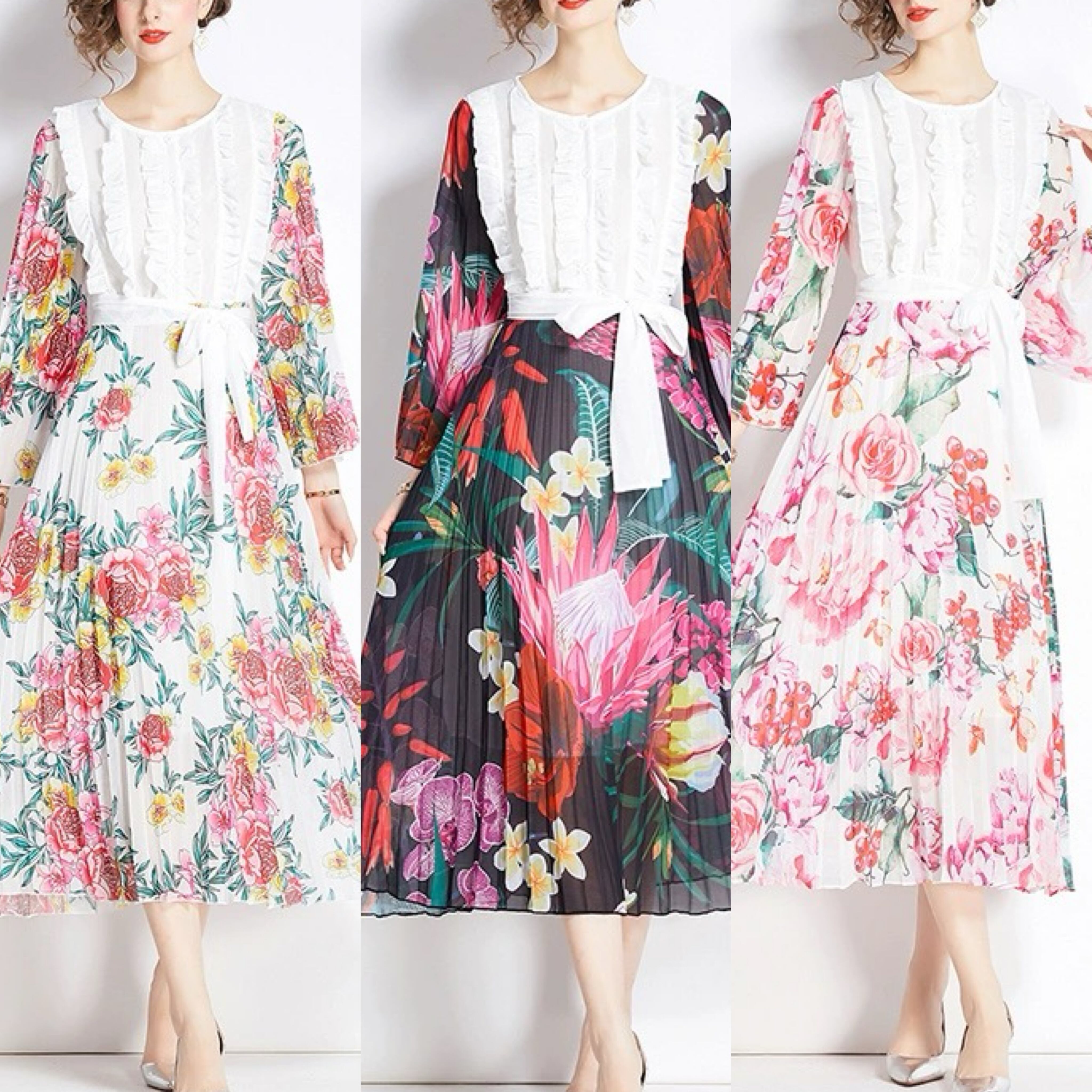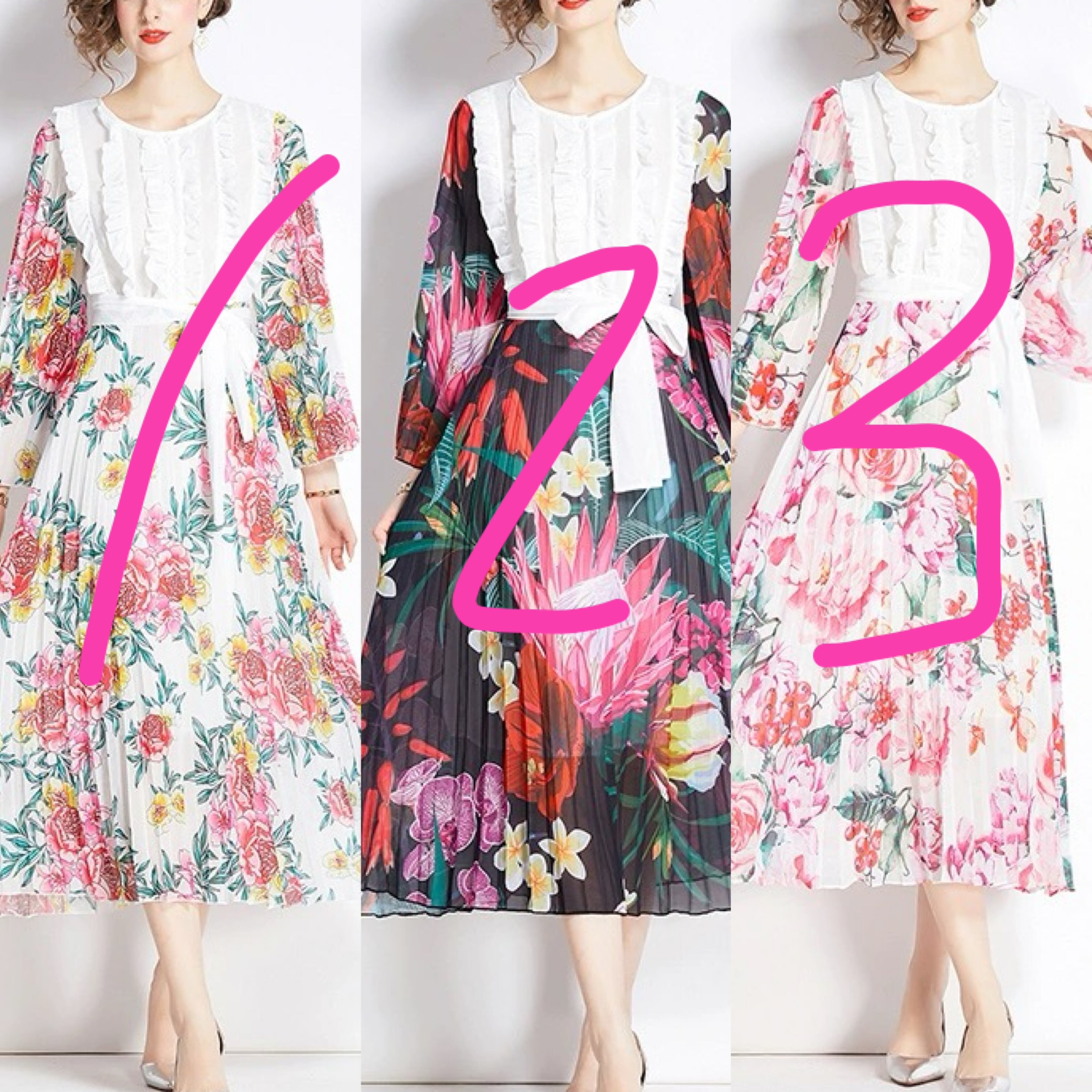 フラワー 花柄 ブラウス ワンピース プリーツ XL XXL