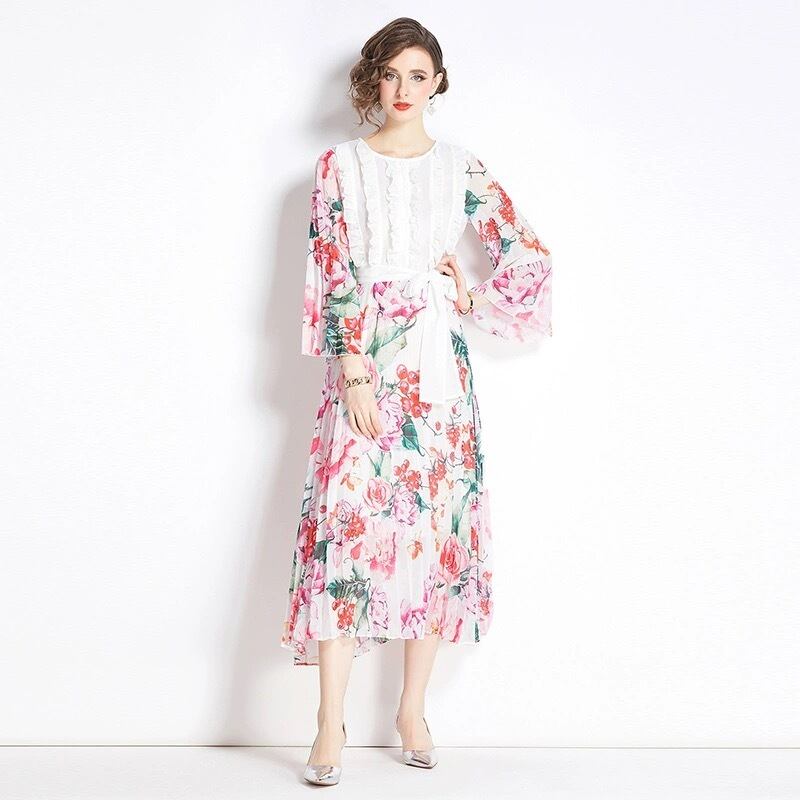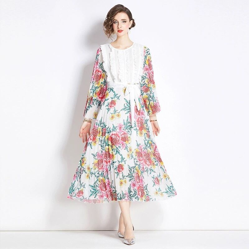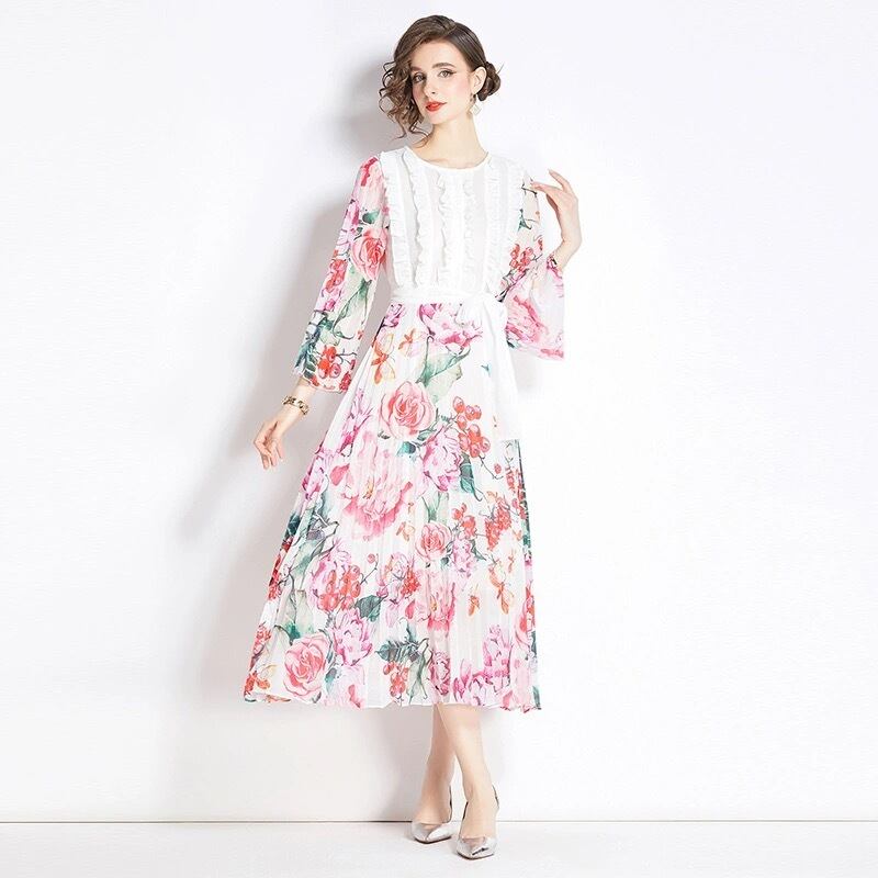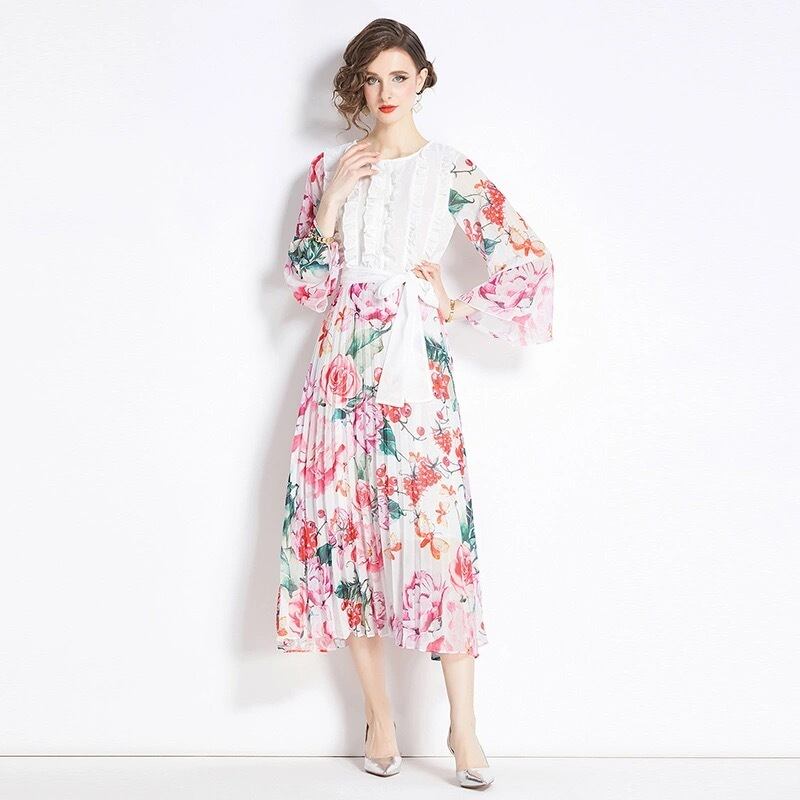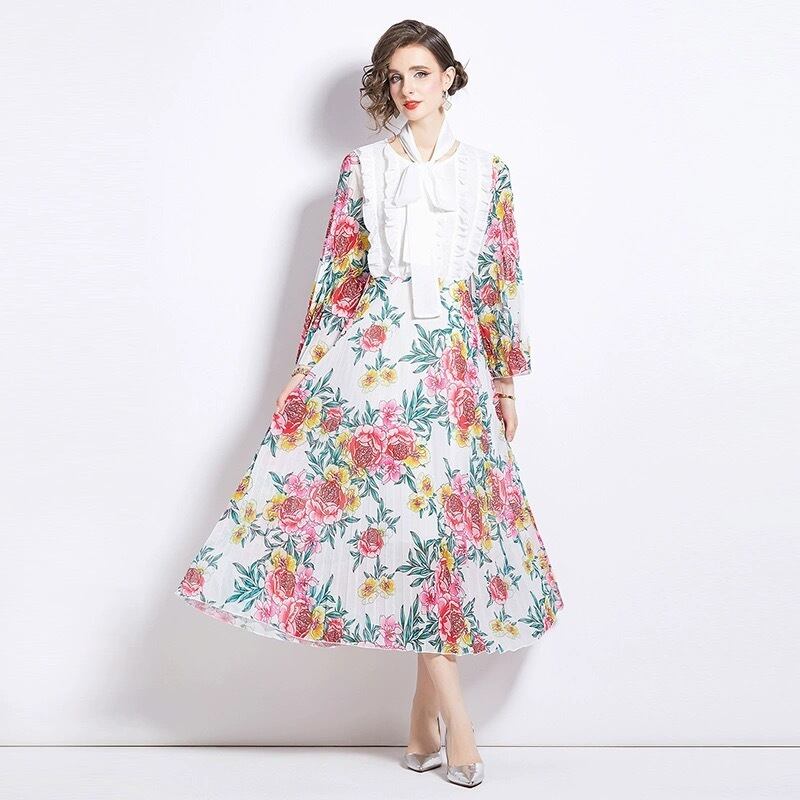 フラワー 花柄 ブラウス ワンピース プリーツ XL XXL