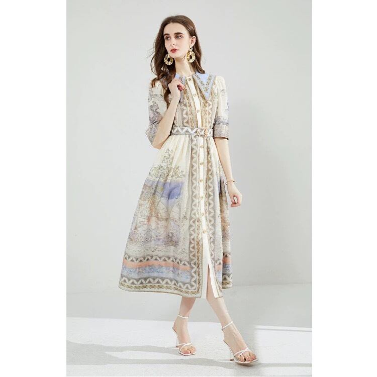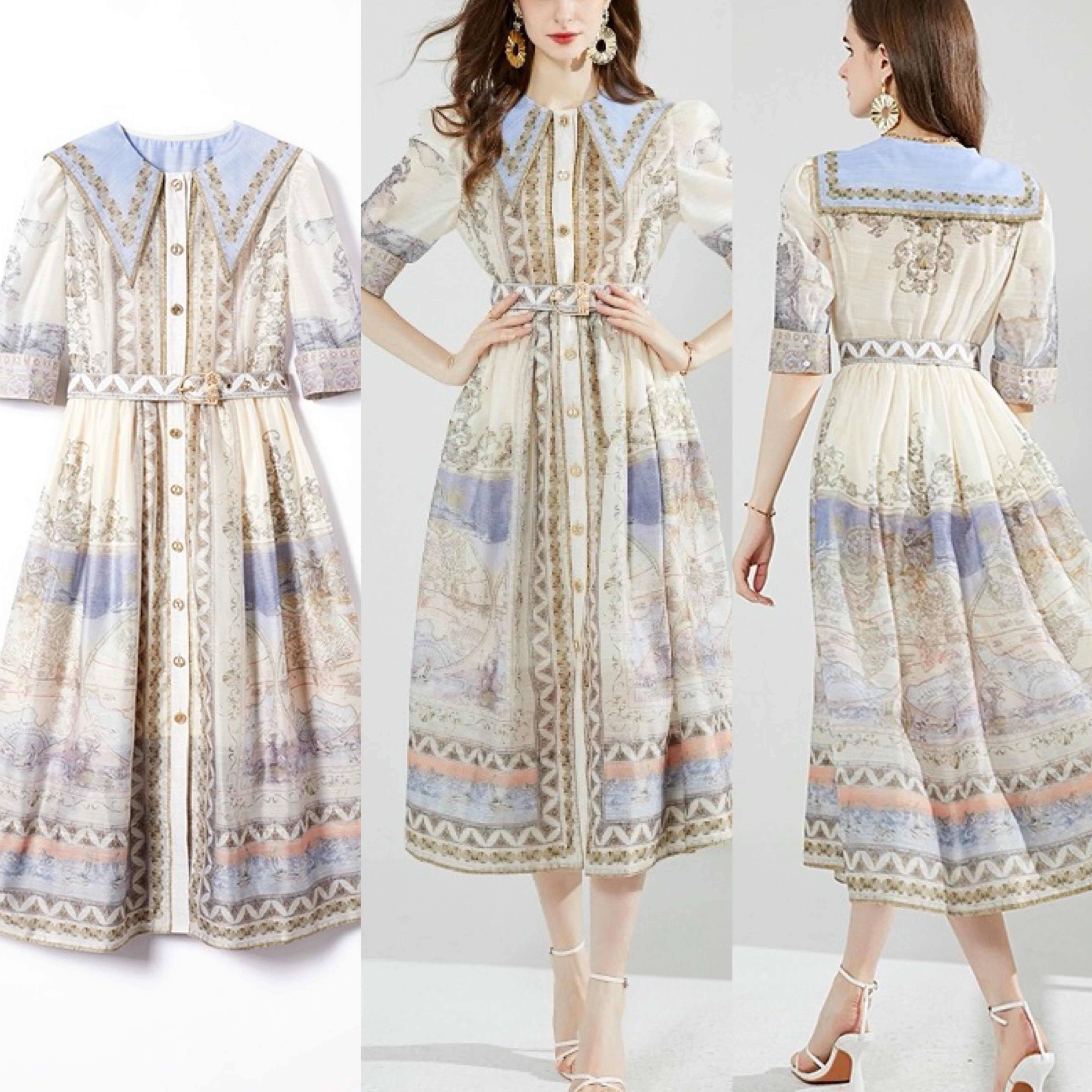 水色 セーラー 花柄 フラワー ワンピース ガーリー XL
