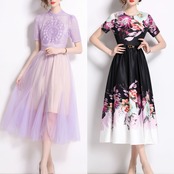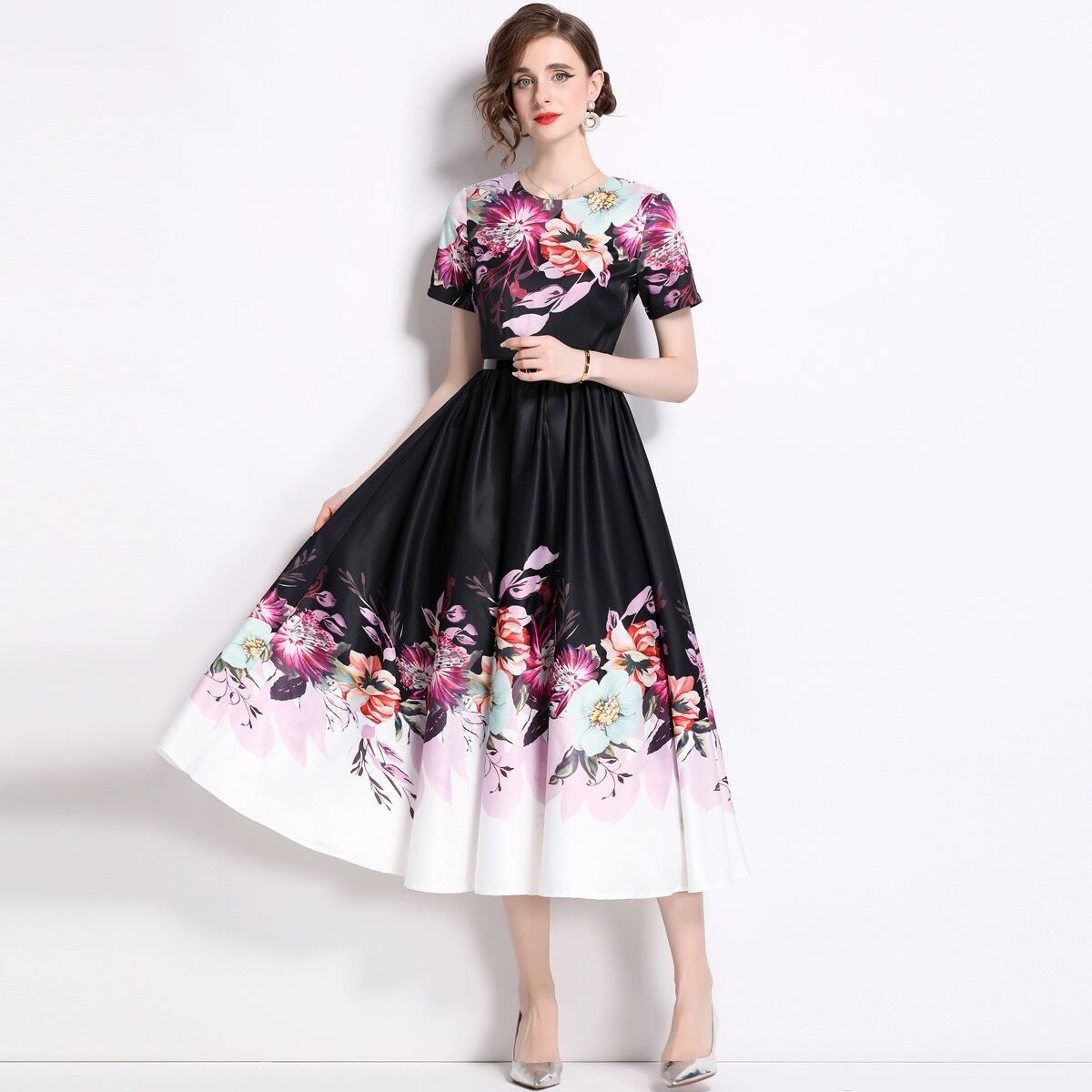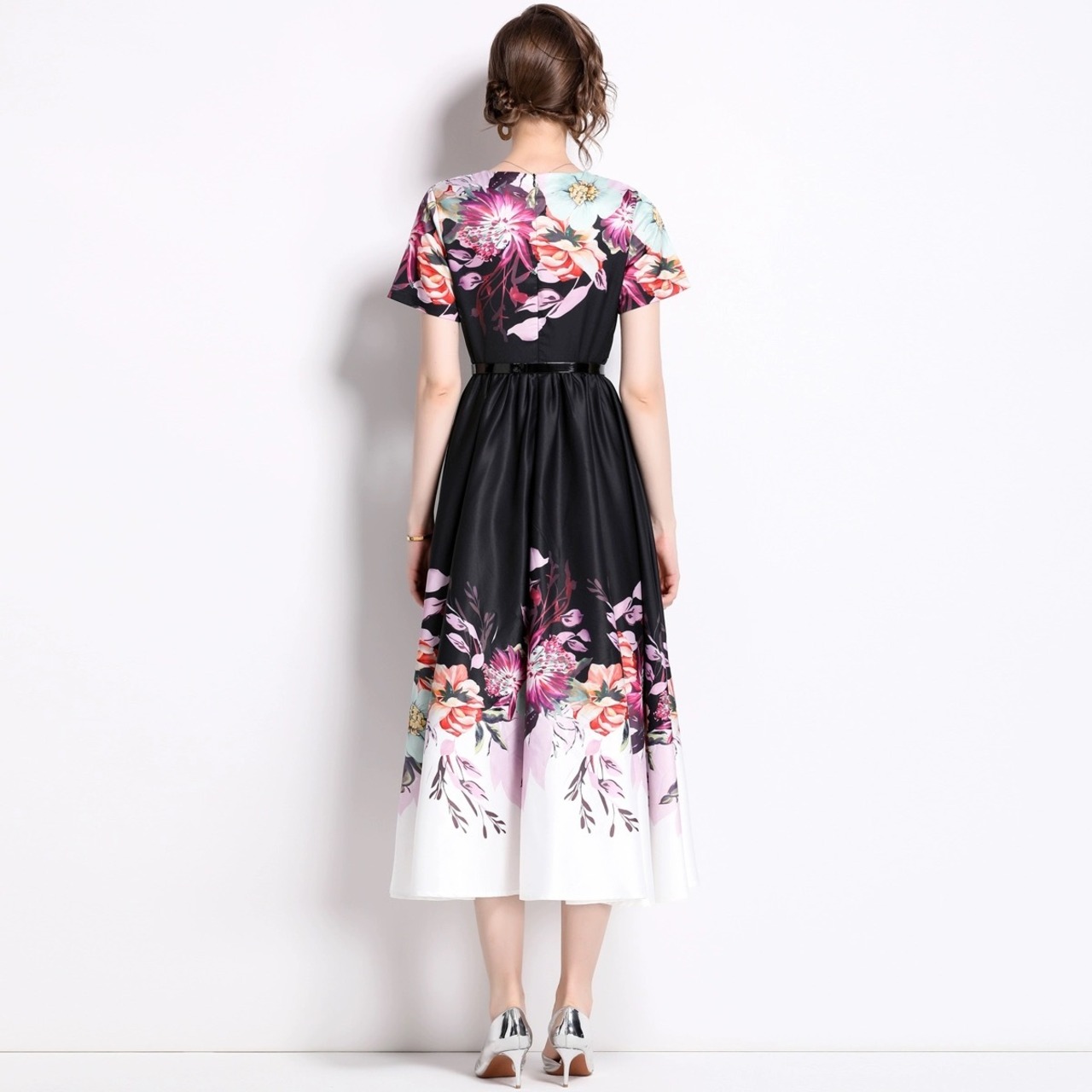 花柄 黒 フラワー 紫 ガーリー エレガント ワンピース XL