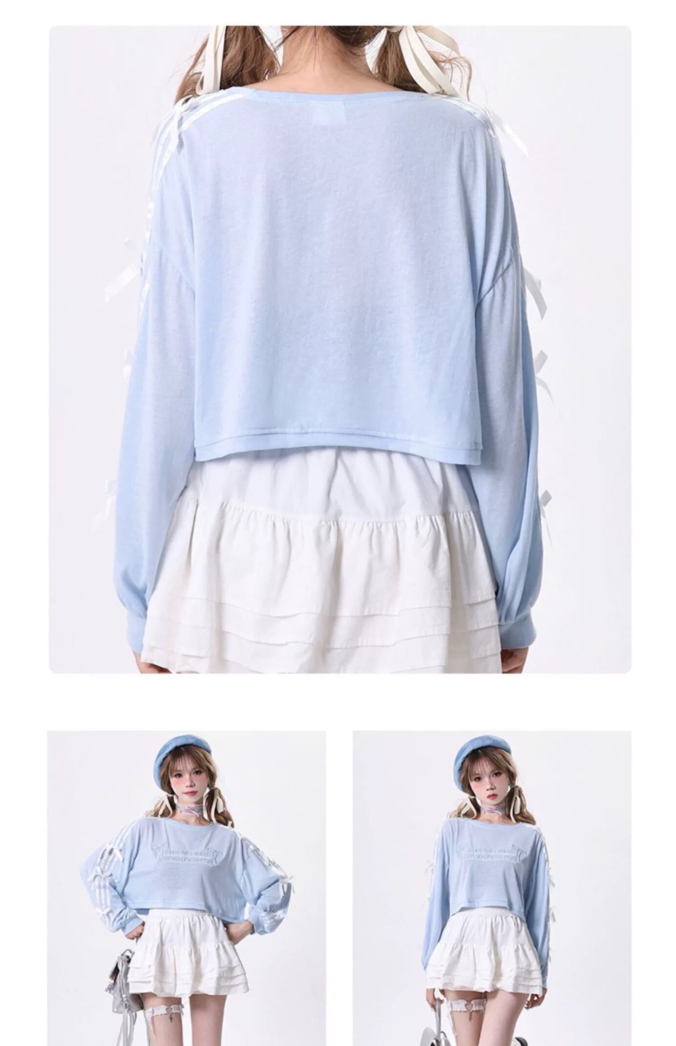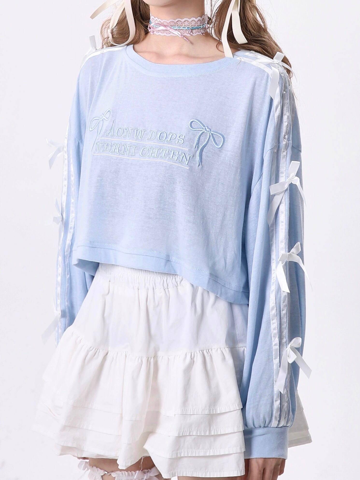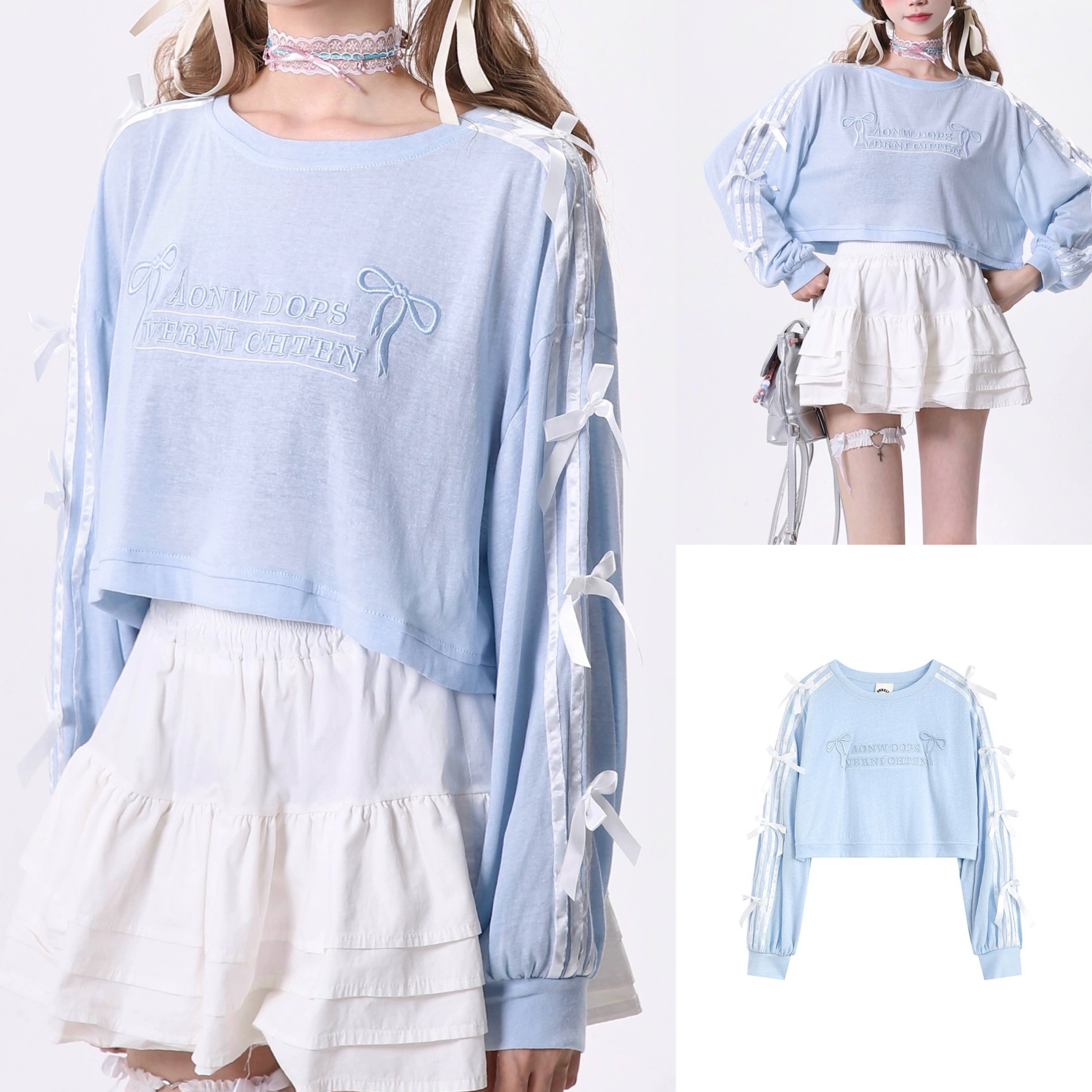 水色 シャツ リボン カジュアル ブラウス Tシャツ