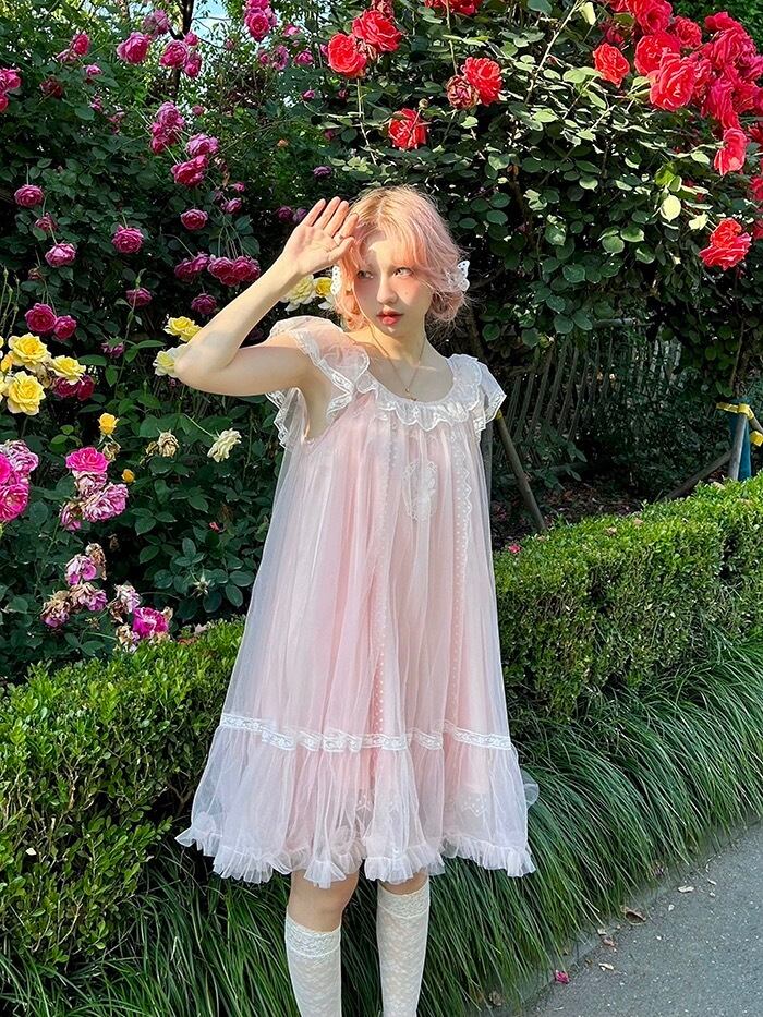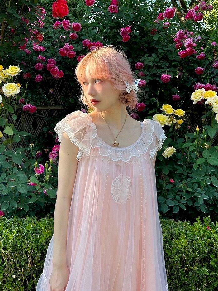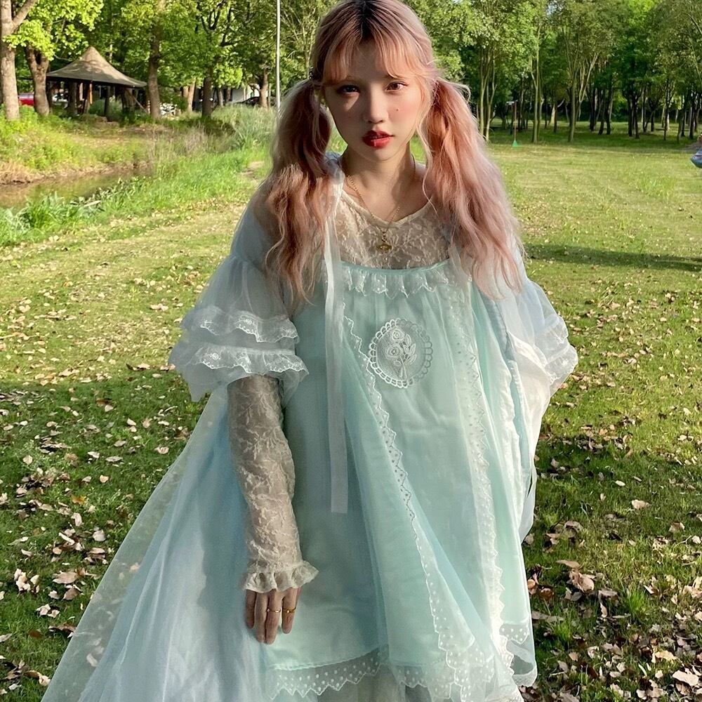 キャミソール インナー ワンピース ピンク 緑 水色 ガーリー 可愛い